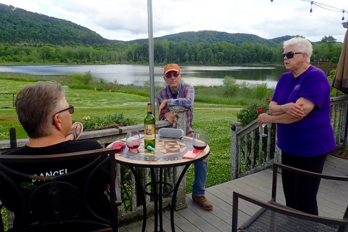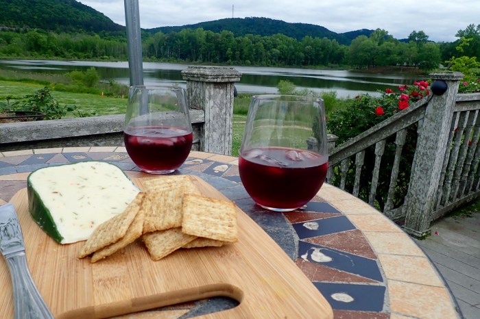 Later in the afternoon, after the tasting room had closed, we enjoyed a cold bottle of their Orange Sangria with cheese and crackers on the back deck of the tasting room. We had the place to ourselves.