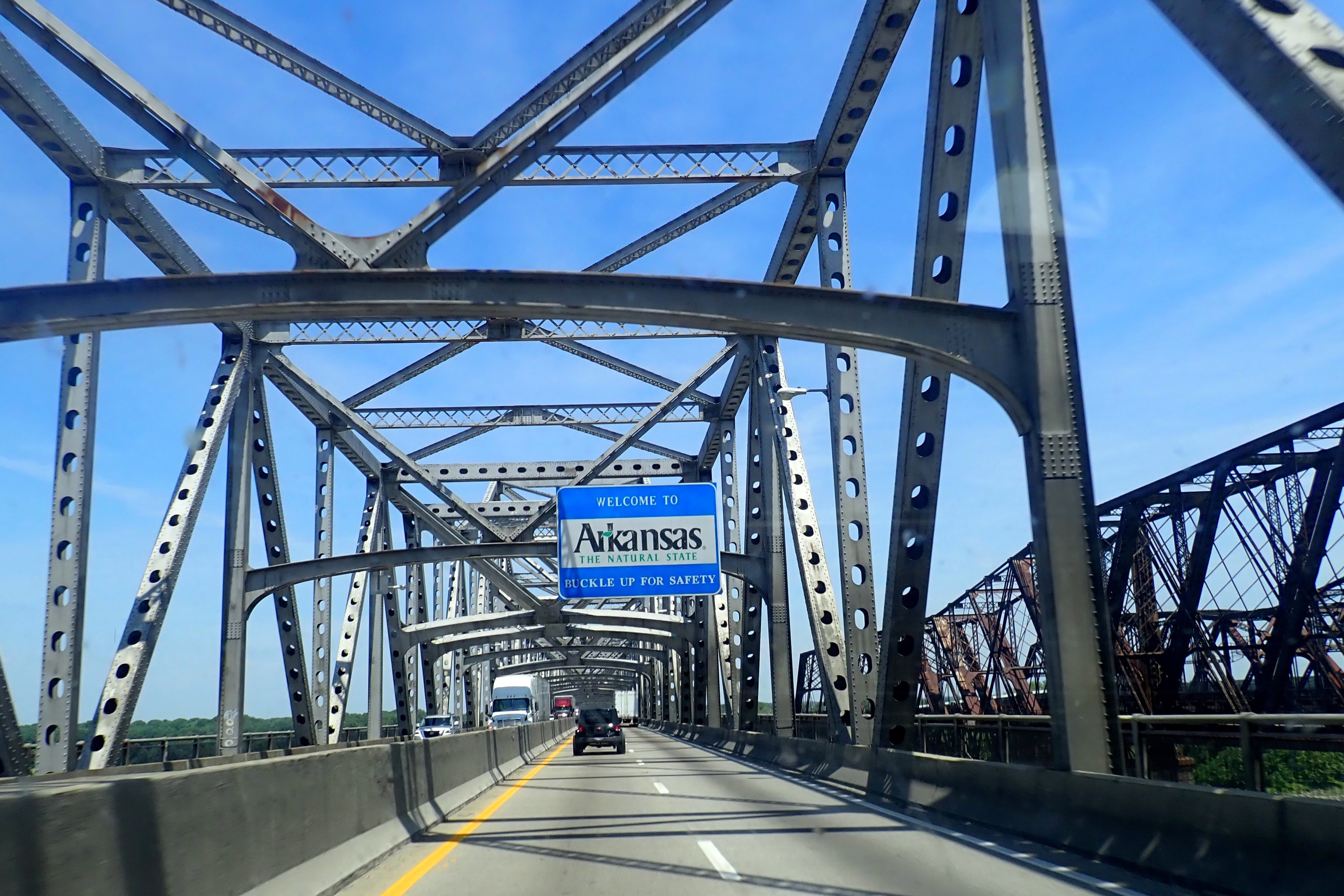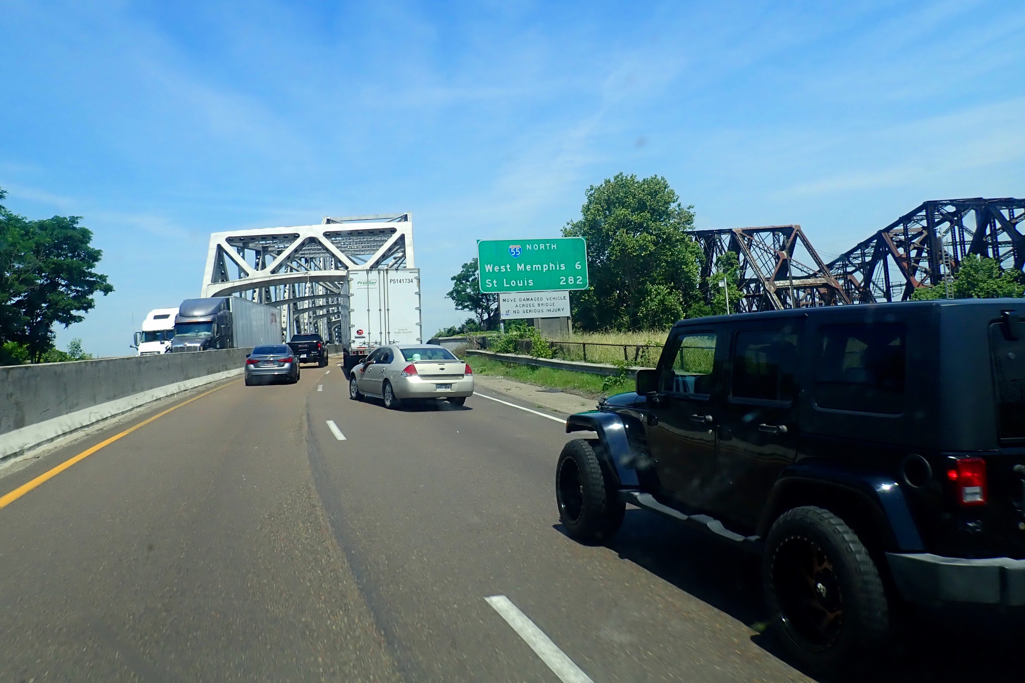 We had a long day on the road followed by a problem. Some of the roads are in horrible condition and you bounce around or hit unexpected hard bumps or dip into potholes. Bad drivers are always annoying. And then there’s crossing the Mississippi River. I-40 will be closed for months to fix cracks in the steel beams which means all the traffic must cross on Hwy 55. It takes hours to make the crossing, but we were moderately lucky on Saturday morning.