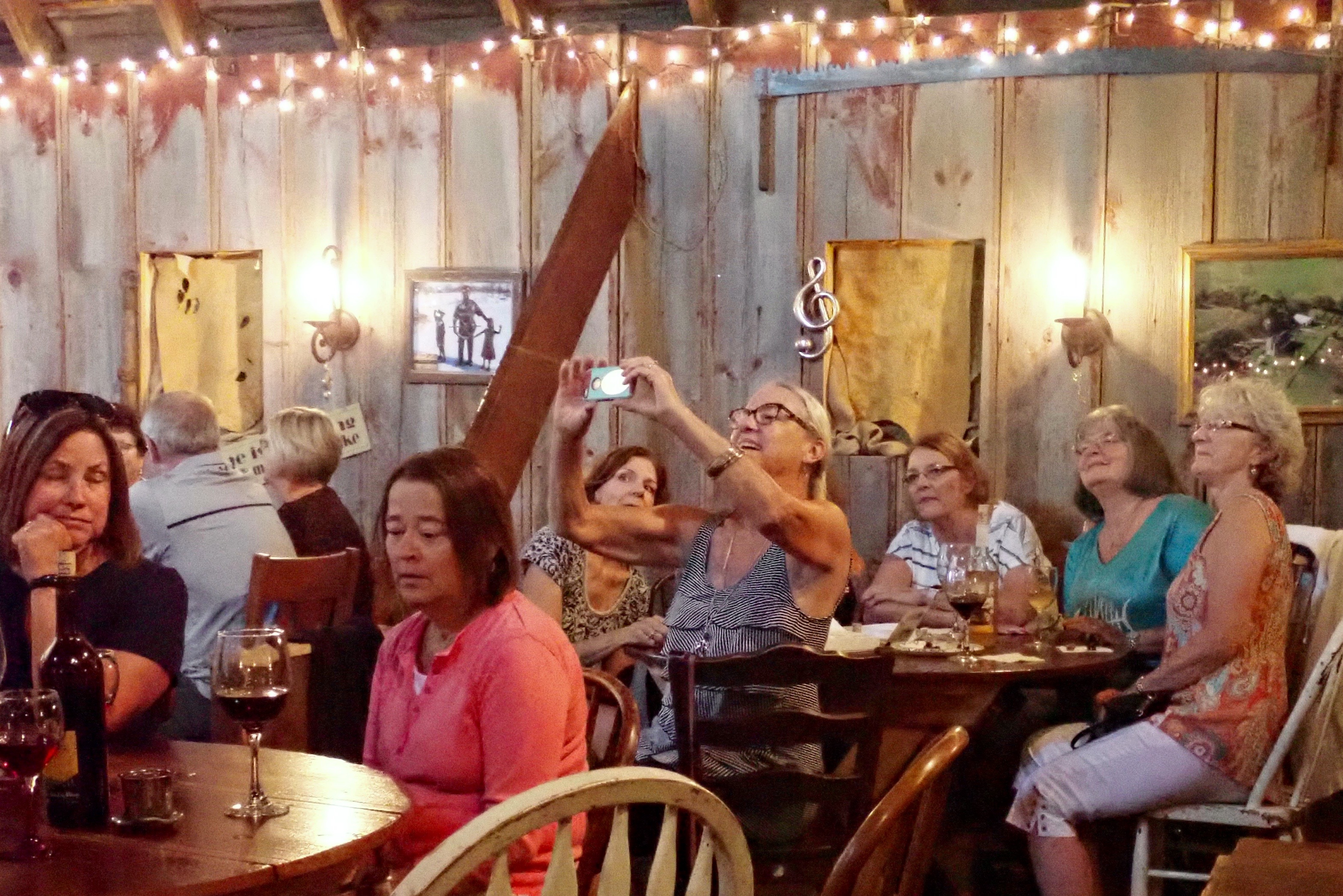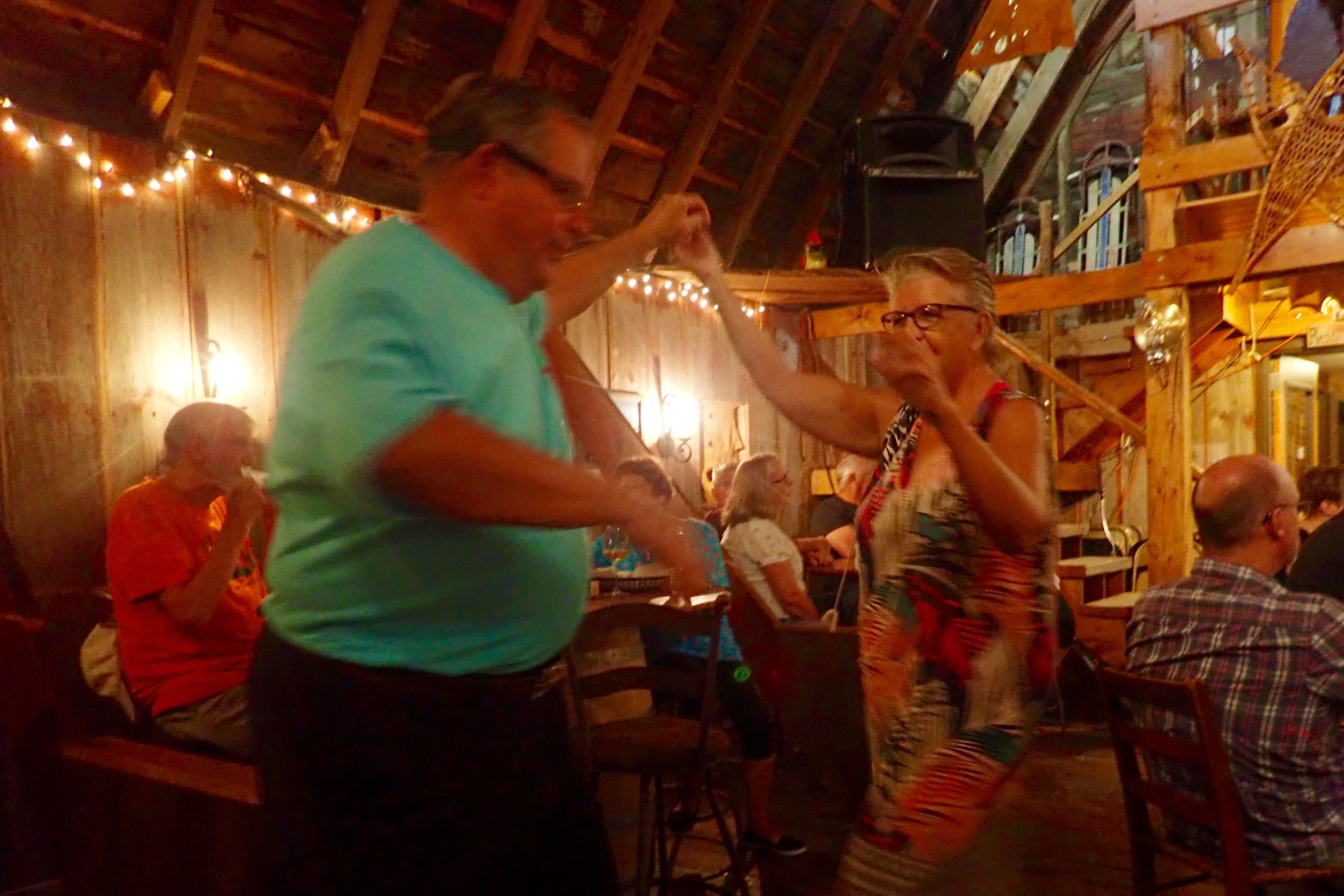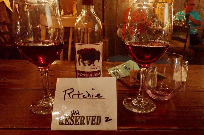 The meal was simple, a bison burger and cole slaw – everything was delicious. The place was packed. The B&B overnighters had their own staircase to come down into the venue and their own special table.