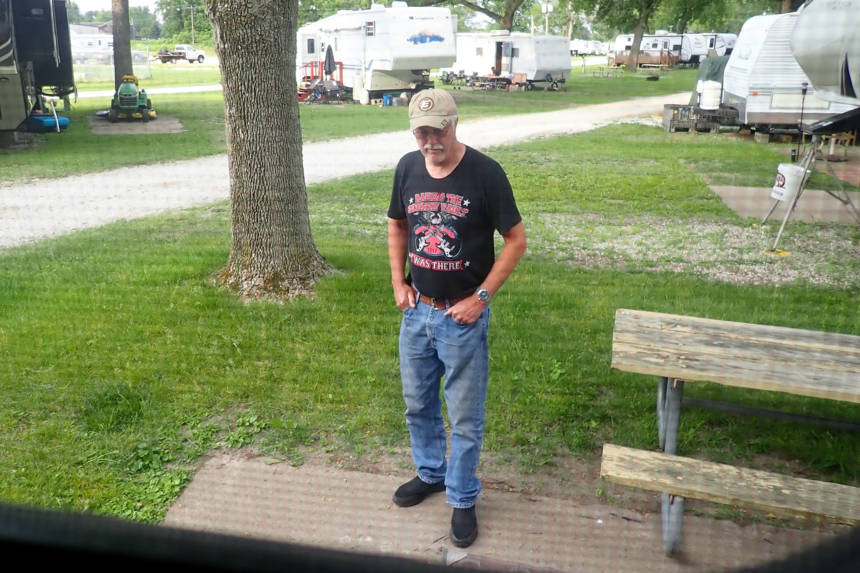 When we arrived on Friday, we had the choice of sewer hookup or shade. We’ve spent too many recent weeks in unshaded hot/humid campgrounds so we chose shade. No sewer hookup … this will requite some adaptation. There is a shower house/bathroom which we need to use as much as possible.
