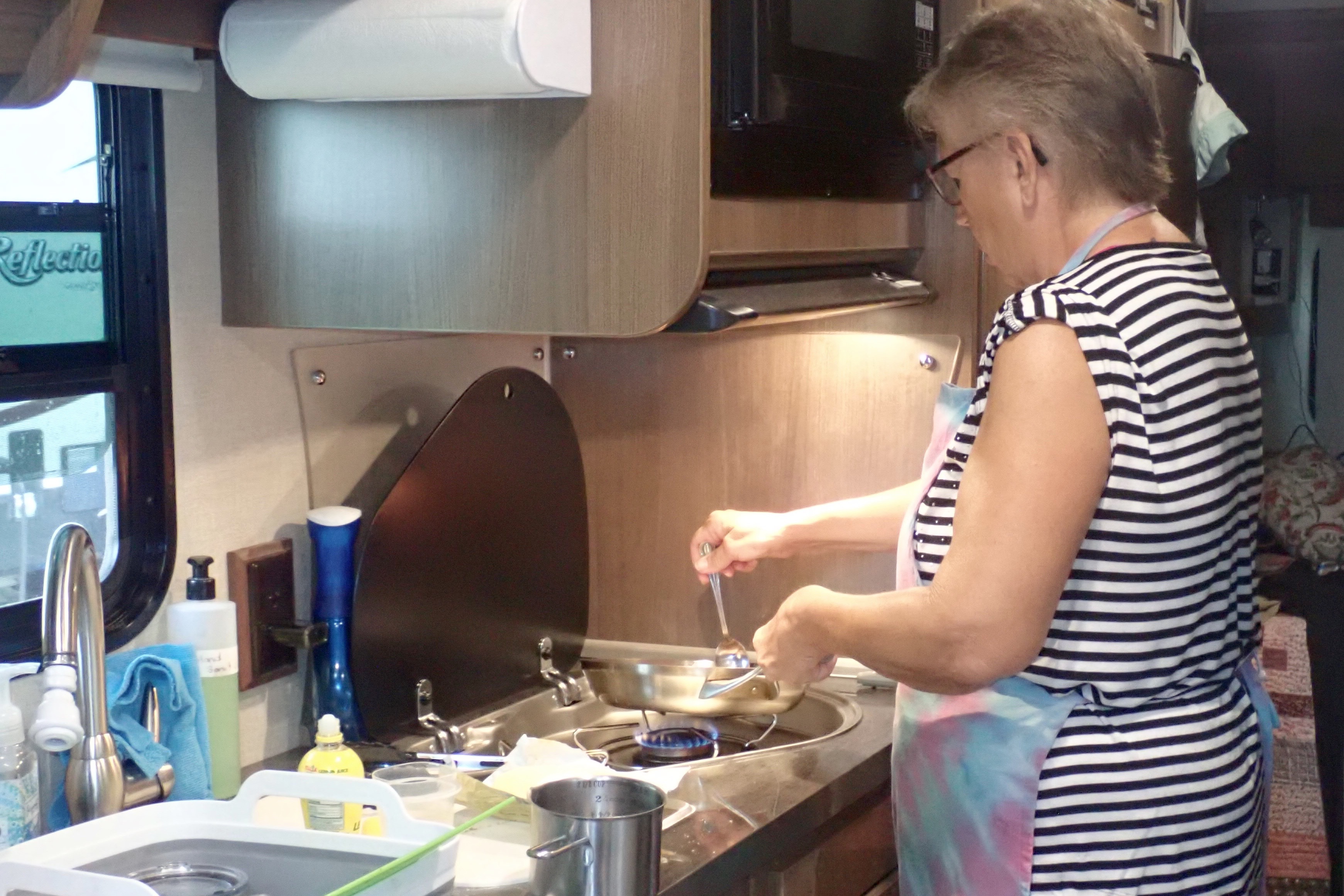 Both Billie and I think we’re pretty good cooks. But, honestly, Billie outdoes herself considering her kitchen is in an RV.