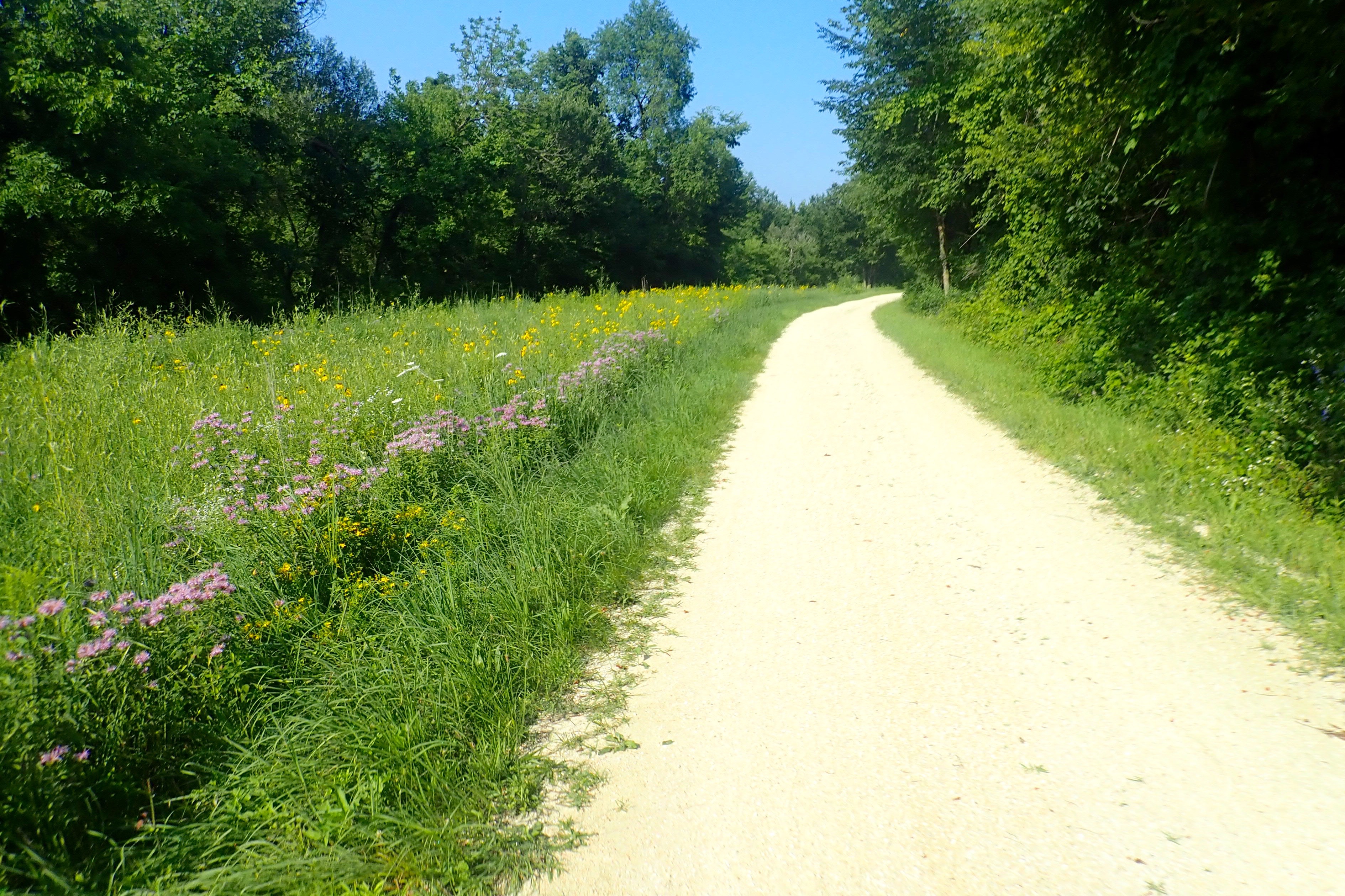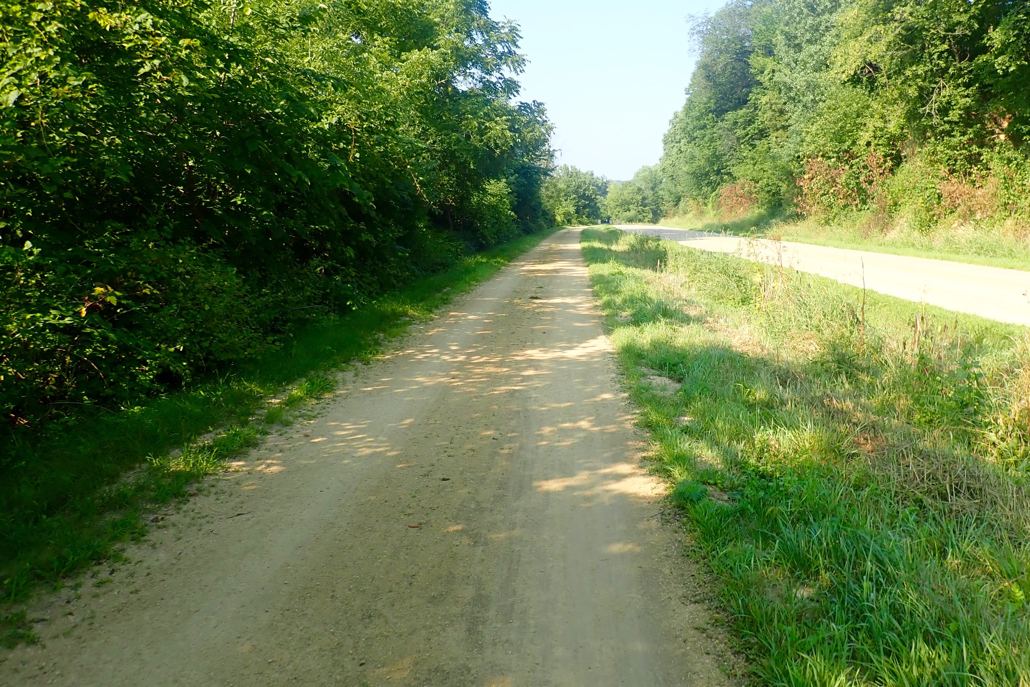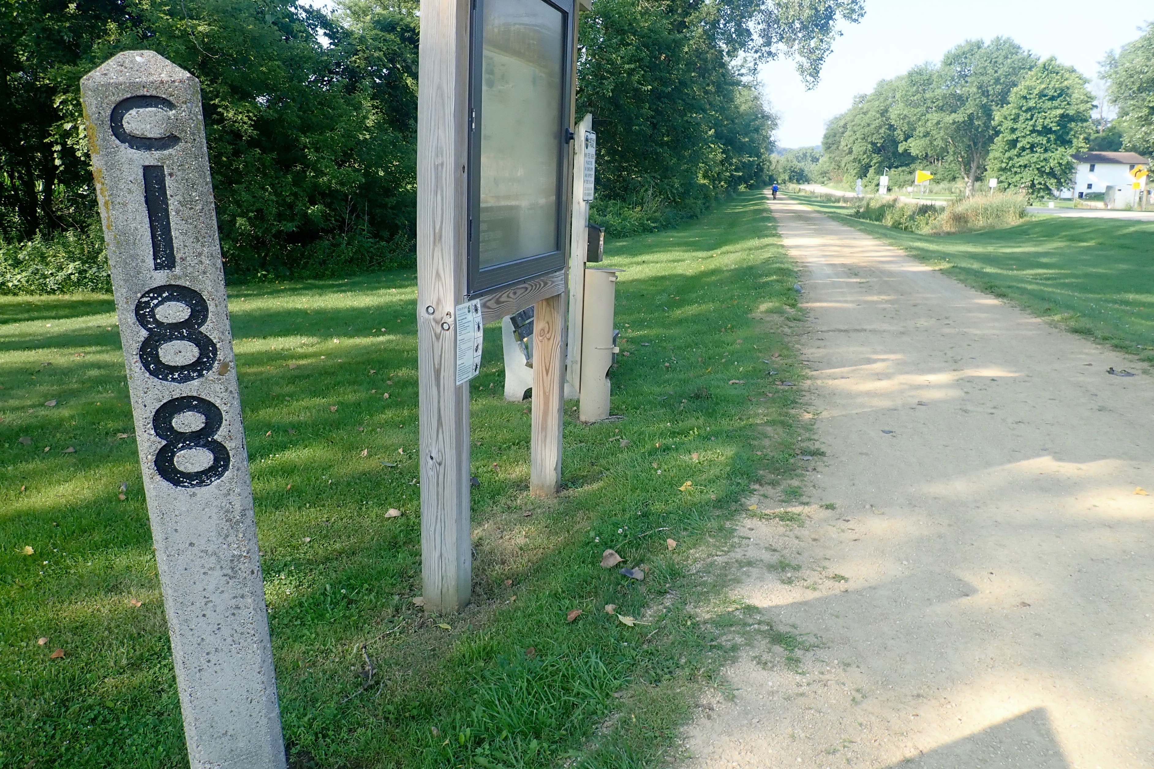 The trail ended in Dyersville. Time to turn around. But there was another option, an attraction about 5 miles away, riding country roads with no shoulder and essentially no traffic. I wanted to do it, Billie agreed and we took off. About a mile later, we stopped and Billie said, “Arlete, I am NOT riding these rolling hills, but you can go on.” Ok … and we discussed our plan to meet up later. Billie turned around and rode (downhill) back to Dyersville, then a left onto the Heritage Trail. We would meet up later near Farley. Today’s ride for me was 32 miles. The detour I took will be the next blog post.