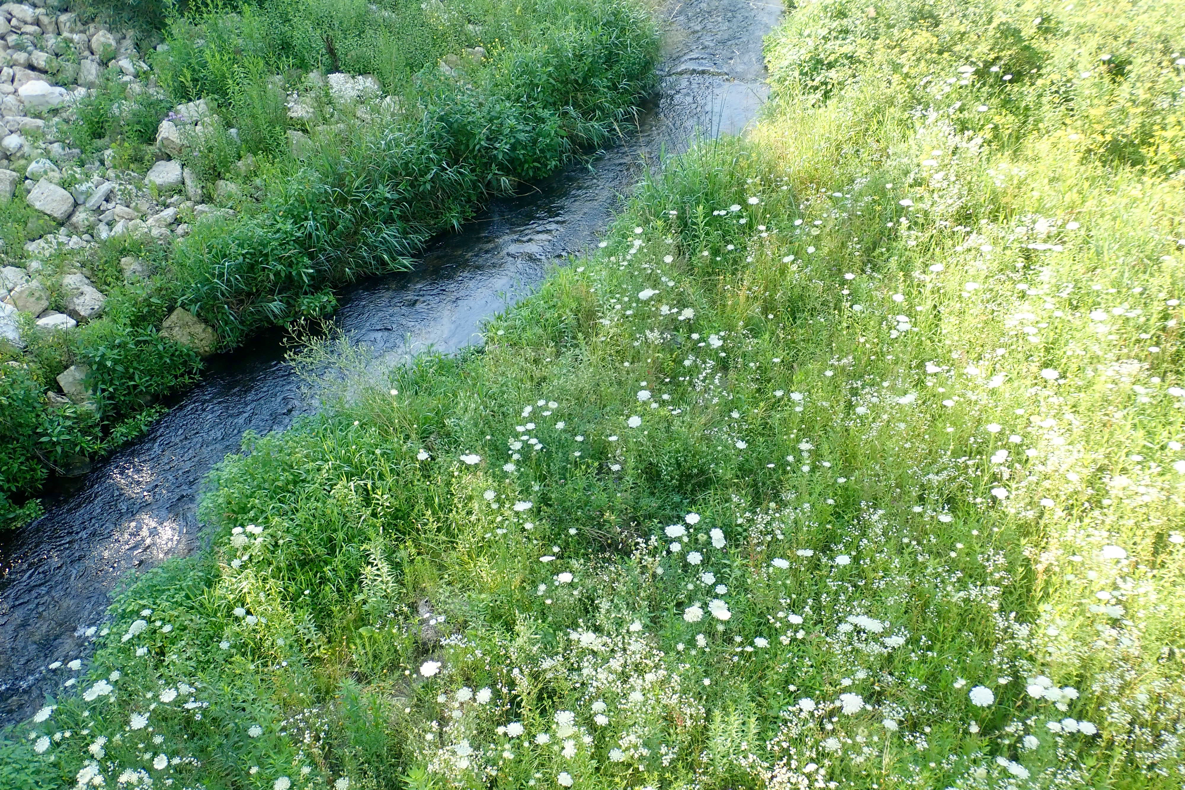 Looking over the side of a bridge: