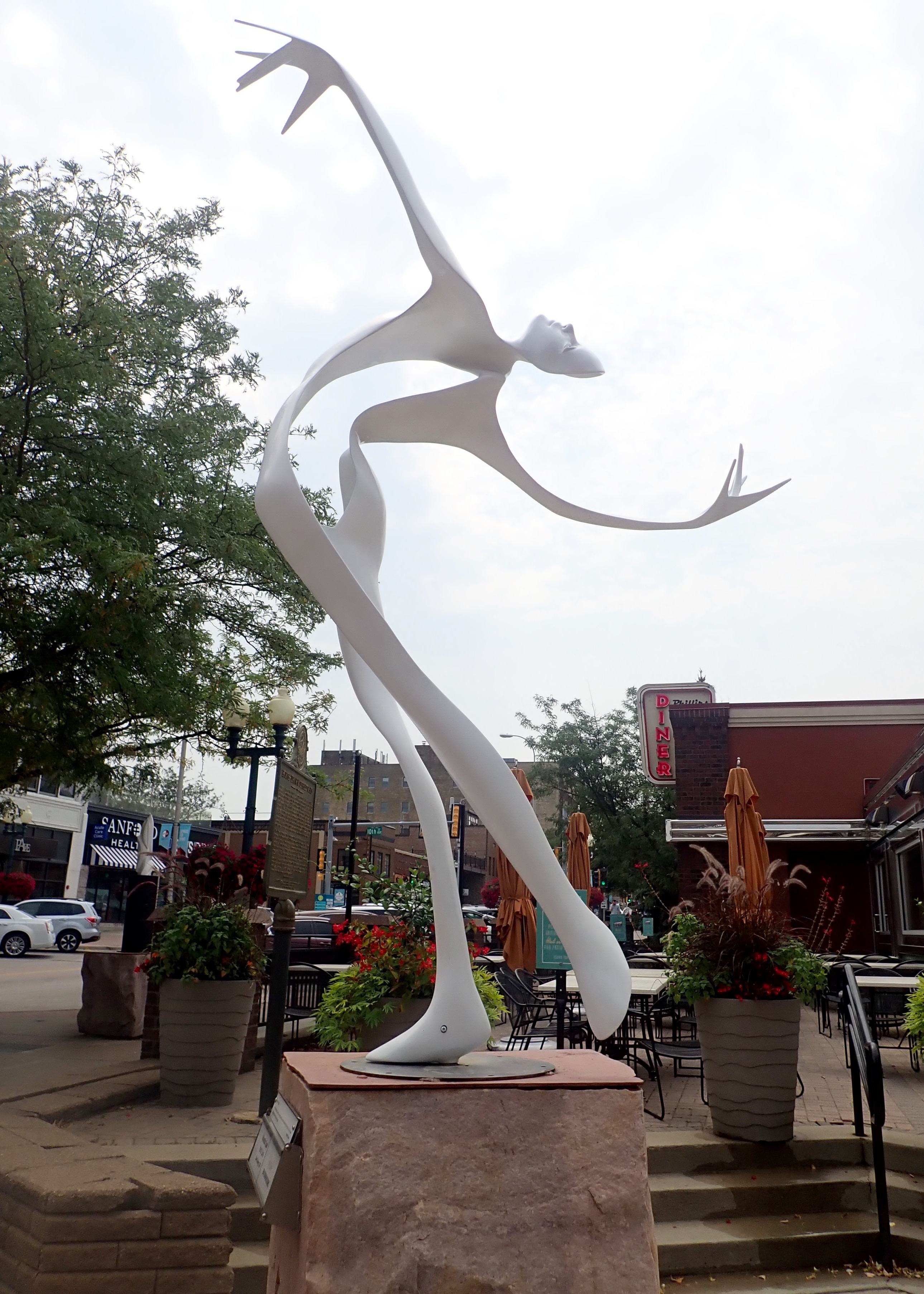 Sioux Falls is the site of the largest annual exhibit of public sculptures in the world. Each spring new works are installed on loan from their creators. The public is invited to vote on their favorite. There are more than 60 sculptures to visit. The biggest cluster is on Phillips Ave between 9th and 12th Streets. You can see all of them at this website: sculpturewalksiouxfalls.com