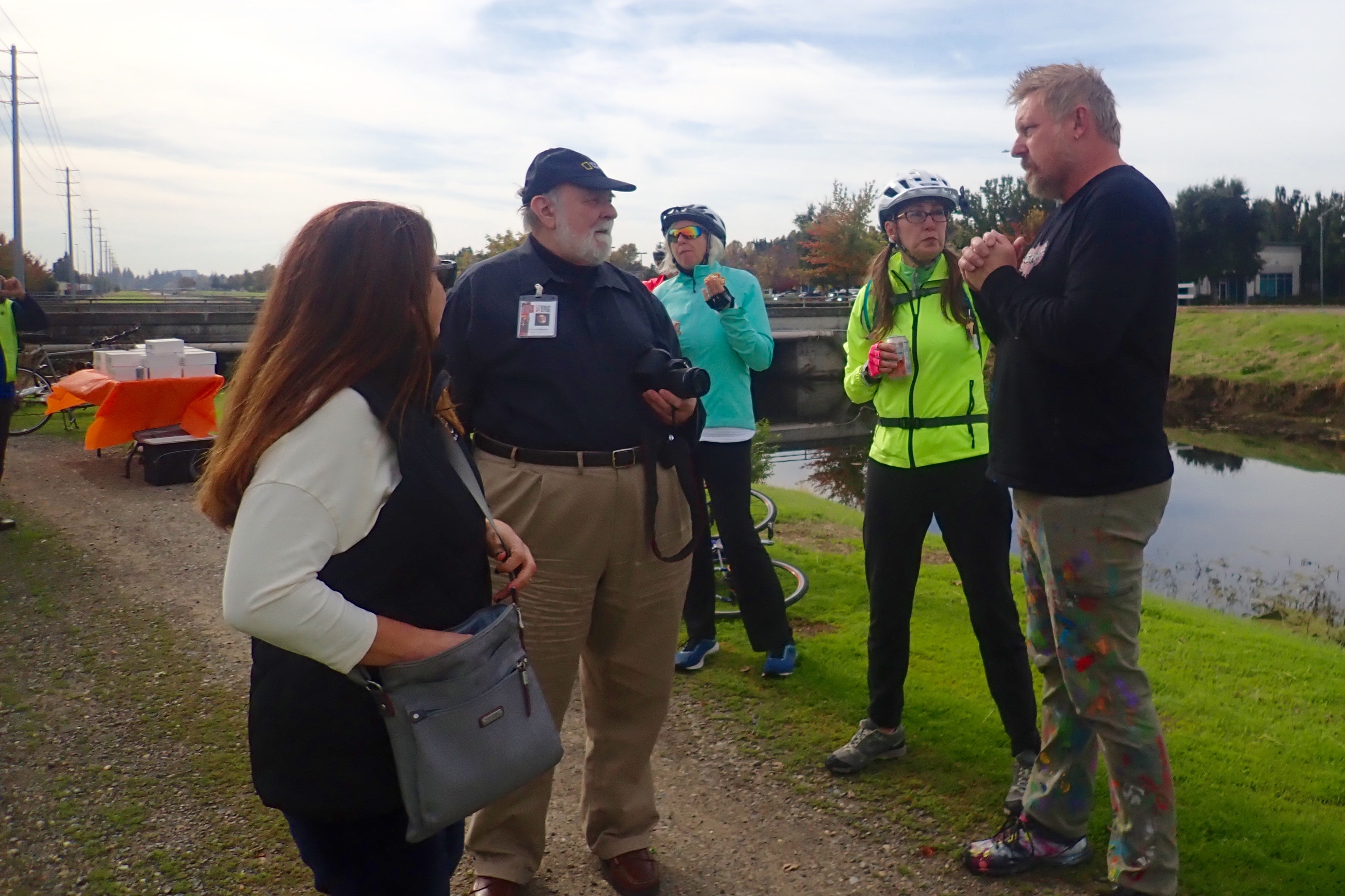 We met Gina (neon yellow jacket) on the trail and invited her to join us. I just worked with Gina last week for Project Ride Smart. She’s teaching a class in N Natomas on Saturday and was doing her pre-ride.