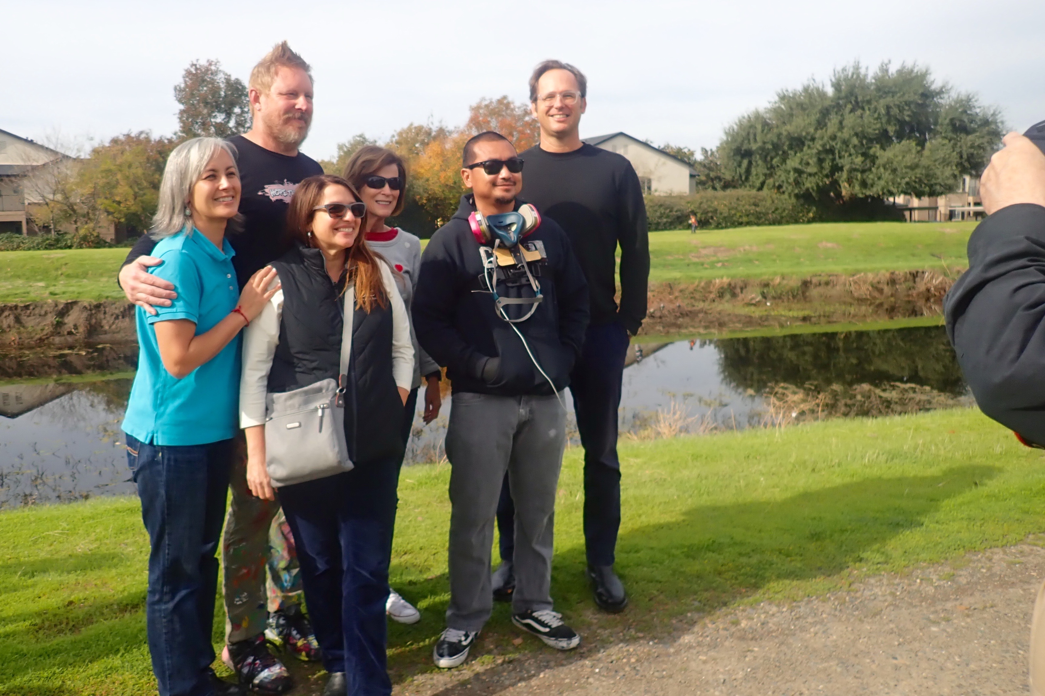 Marc from N magazine was there. Below, Jibe staff with the artists. Mellissa/Jibe, Shane Grammer/lead artist, Michelle/Jibe, Becky/Jibe, Kone/assistant artist, Donald Gensler/City of Sacramento-Art in Public Places-Project Manager.