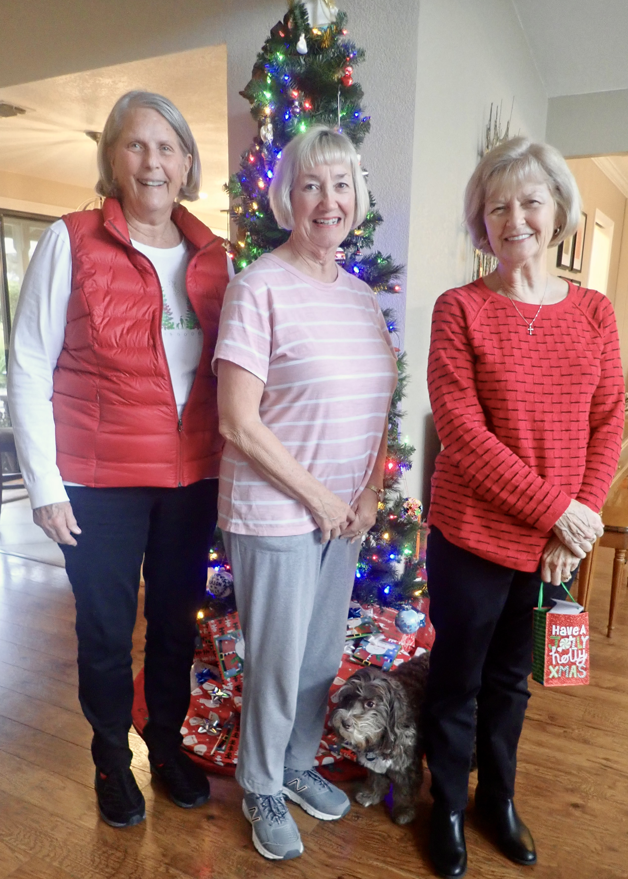 Ade, Linda and I all see the same hair care person, Whitney, who is currently on the brink of delivering baby #4. Linda and Ron really enjoy dog-sitting for Whitney, you can see Freddie at Linda’s feet. Freddie is a cocker-doodle mix (cockadoodle?), adorable and quite at home, preferably between Linda’s feet.