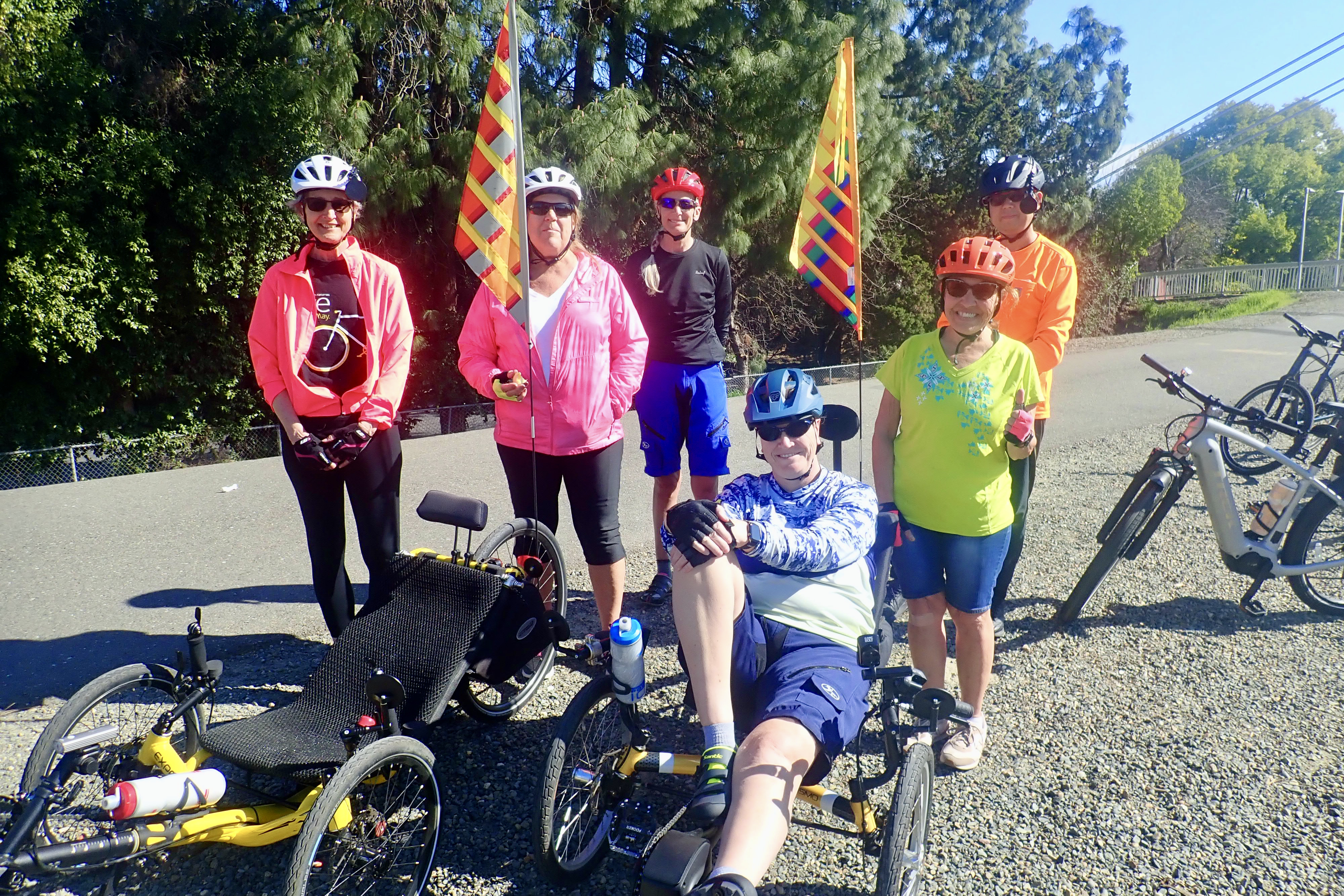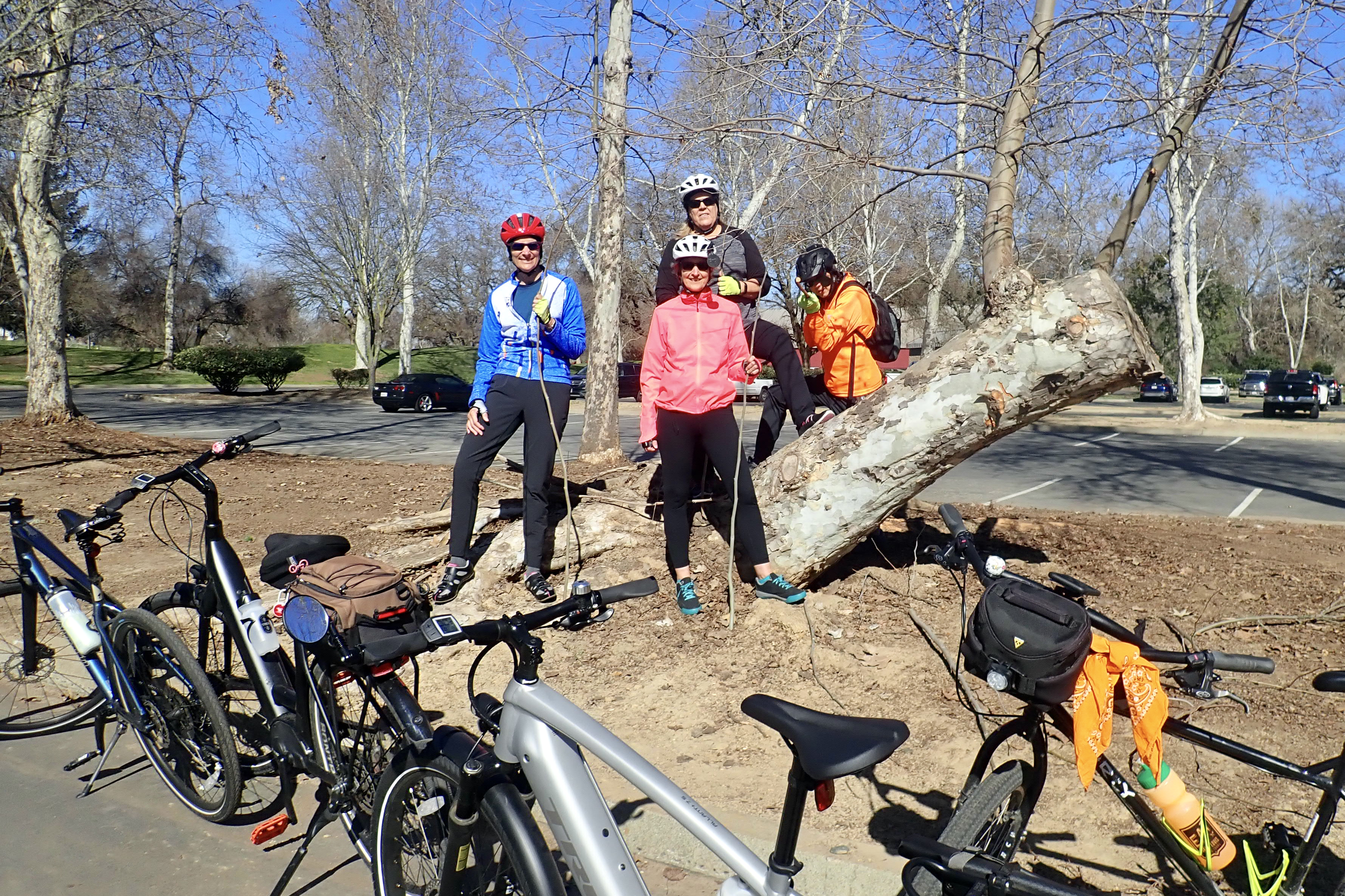 Saturday February 12. One of our favorite rides – to Sac State via downtown and American River Parkway. Cheryl, Jane, Kathy, Dani, Barbara, Leo, and me.