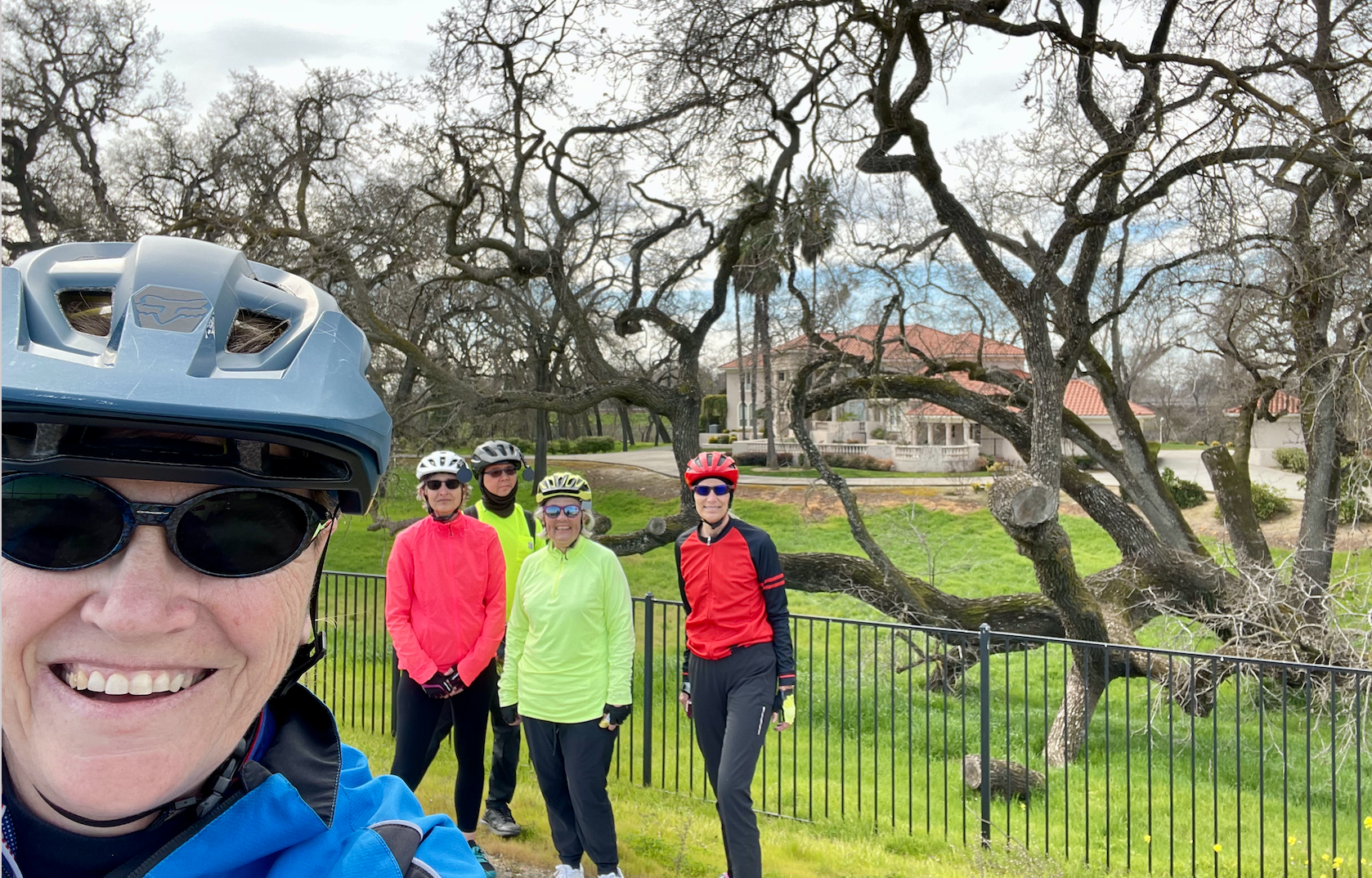 Saturday February 12. One of our favorite rides – to Sac State via downtown and American River Parkway. Cheryl, Jane, Kathy, Dani, Barbara, Leo, and me.