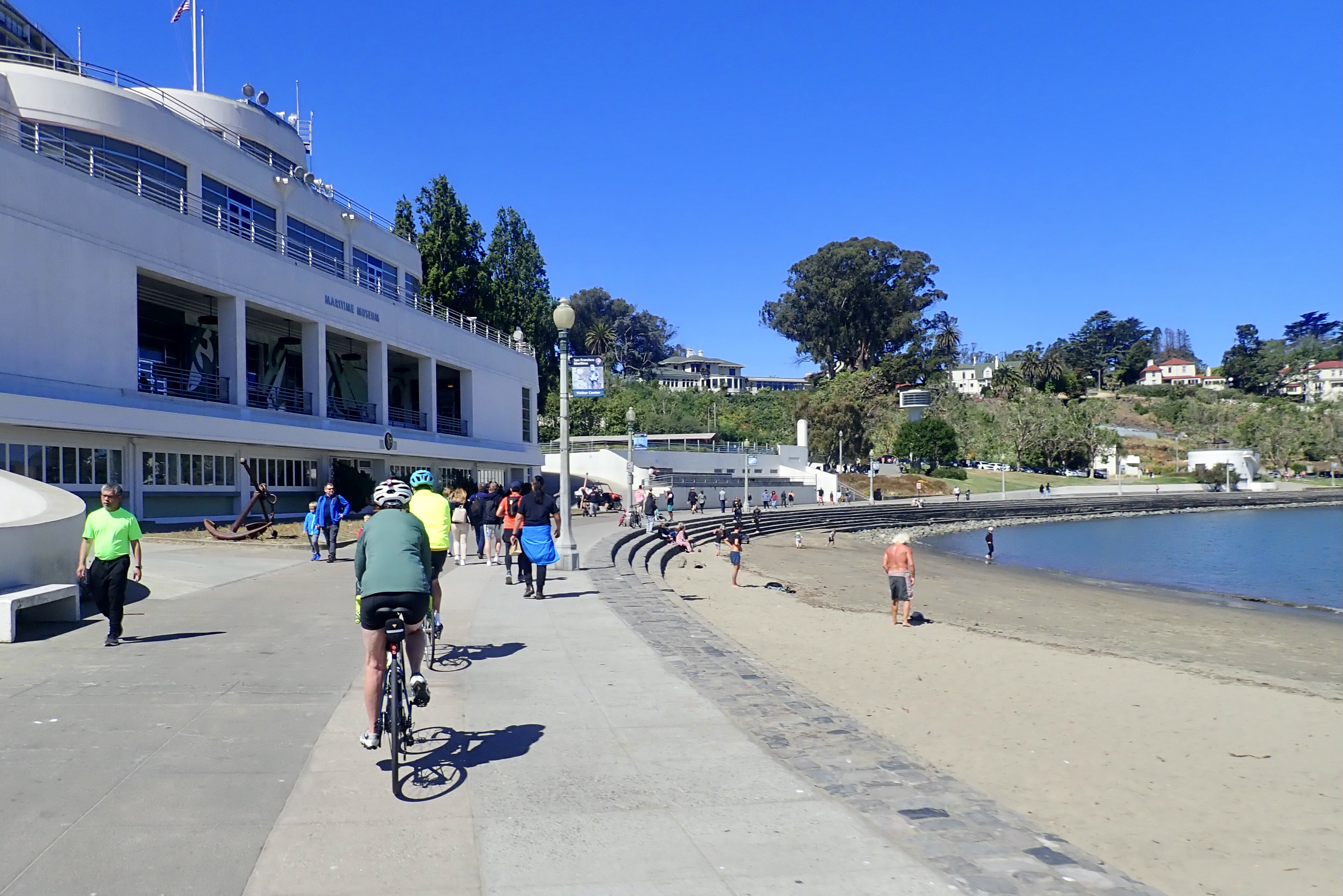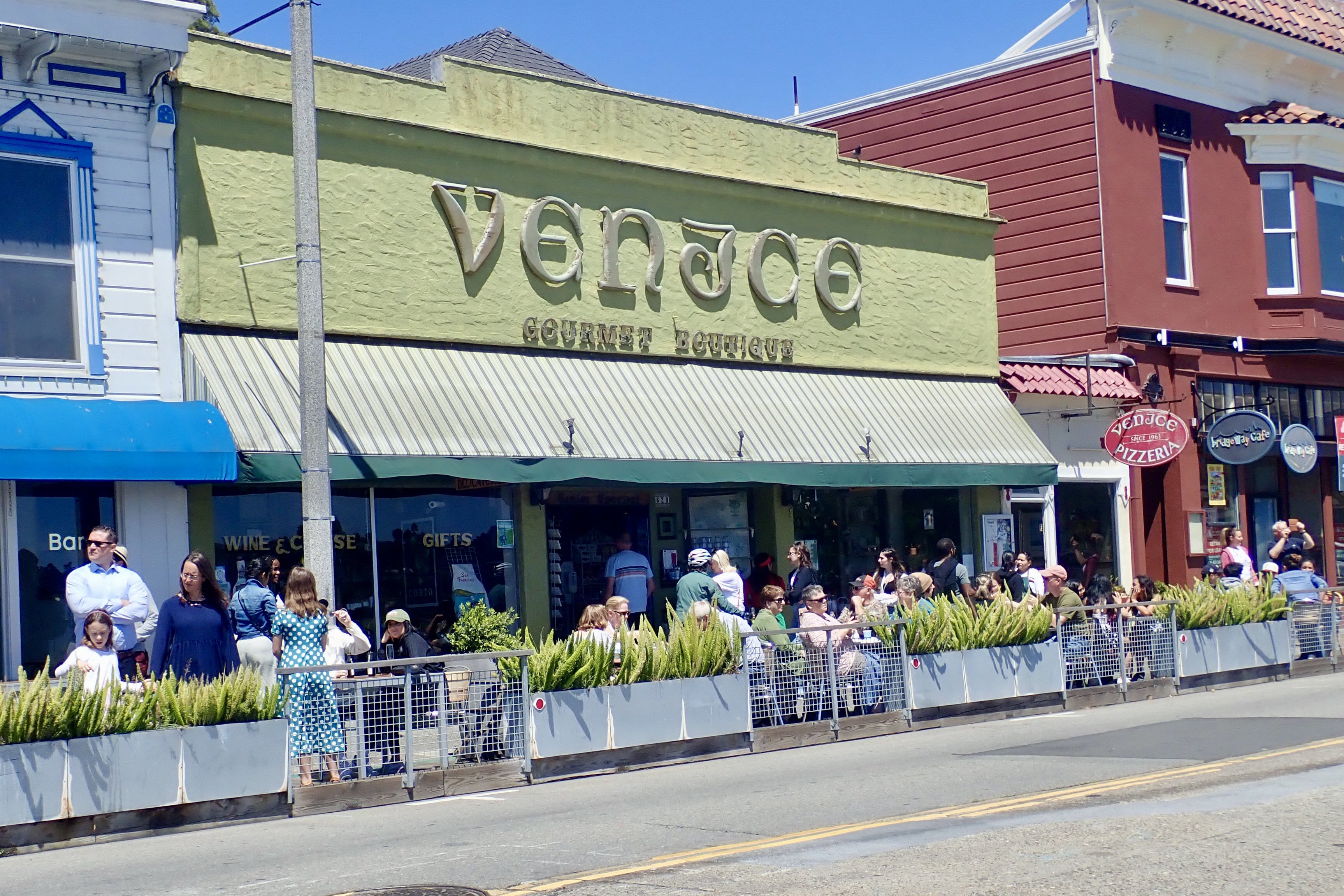 A descent into Sausalito for lunch at an Italian deli, Venice, where they let all 9 of us walk our bikes through their store to park in a small enclosed area. Excellent sandwiches, great service!
