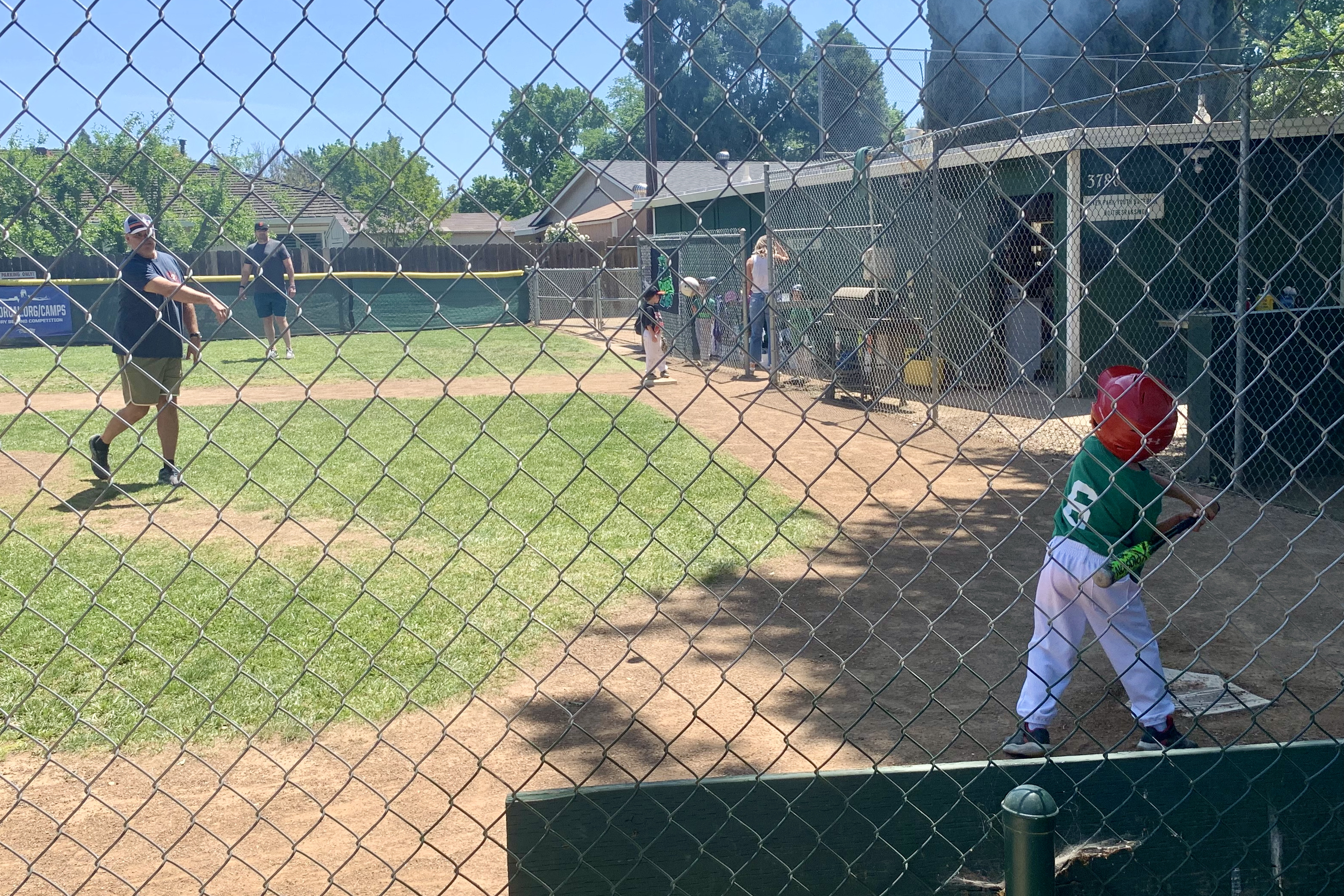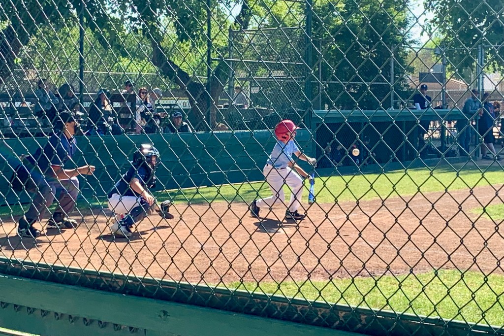 Saturday afternoon. Carson hit a pitched ball into the outfield: