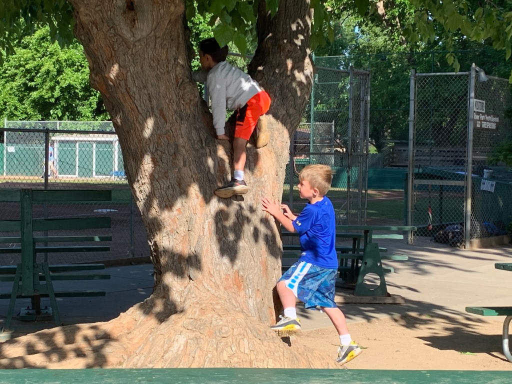 Saturday morning. Carson tried to teach his friend how to climb this tree: