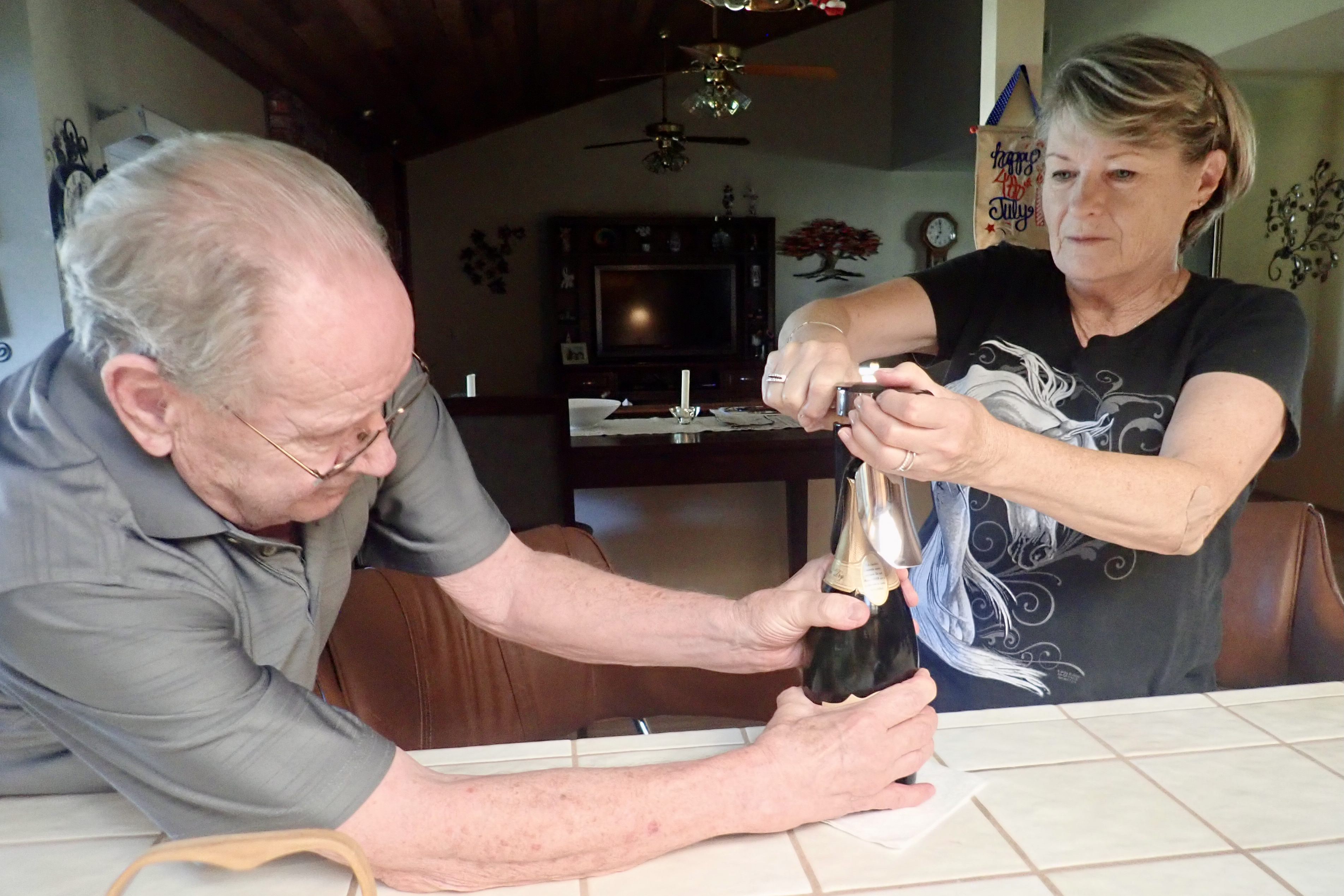 July 1, 2022 by arletelouise Friday @ Jim and Lucy’s Jerry (Lupita is in Mexico), Jim and Lucy: Neither the champagne cork nor the fancy opener cooperated, it was a two-person job for Archie and Sandy: Share this: Click to share on X (Opens in new window) X Click to share on Facebook (Opens in new window) Facebook Like Loading... Related