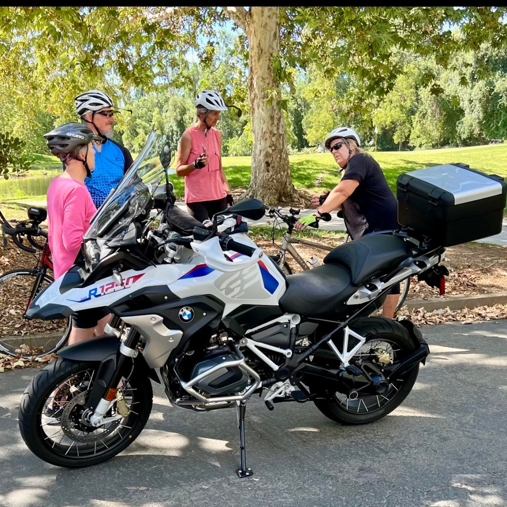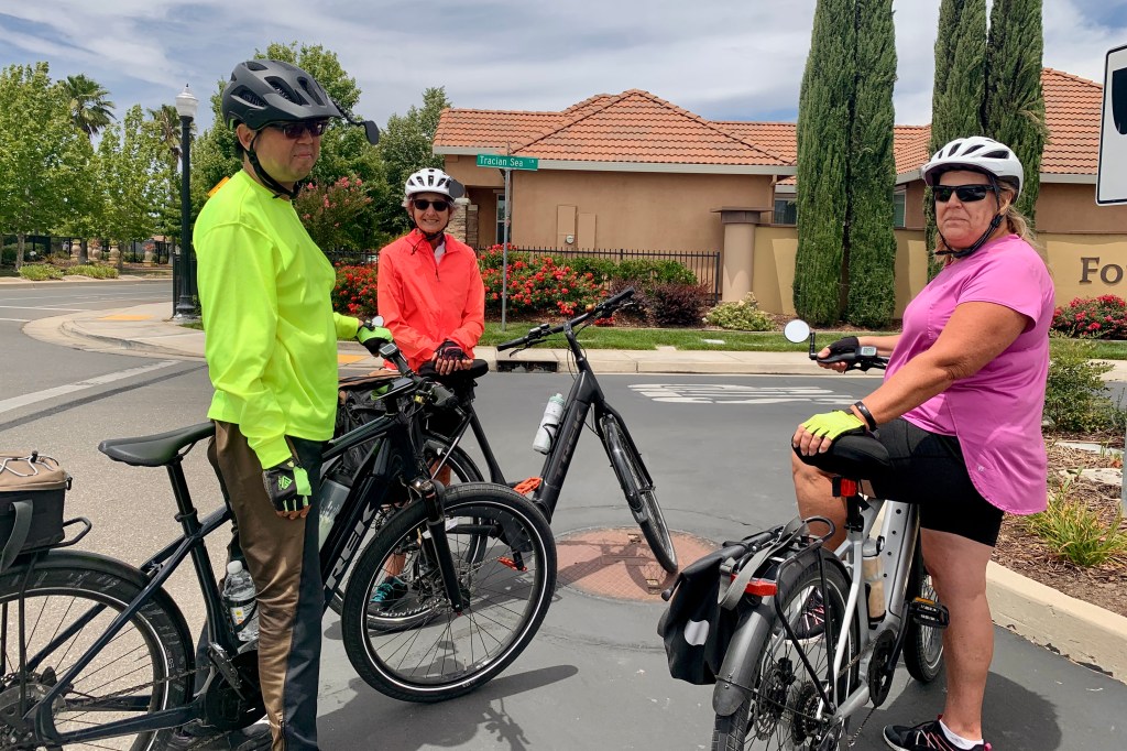 Monday July 4. Dani, who rode a non-pedaling bike, met the group at their Teal Bend rest stop and took this picture of Terri, Rich, Cheryl, and Jane:
