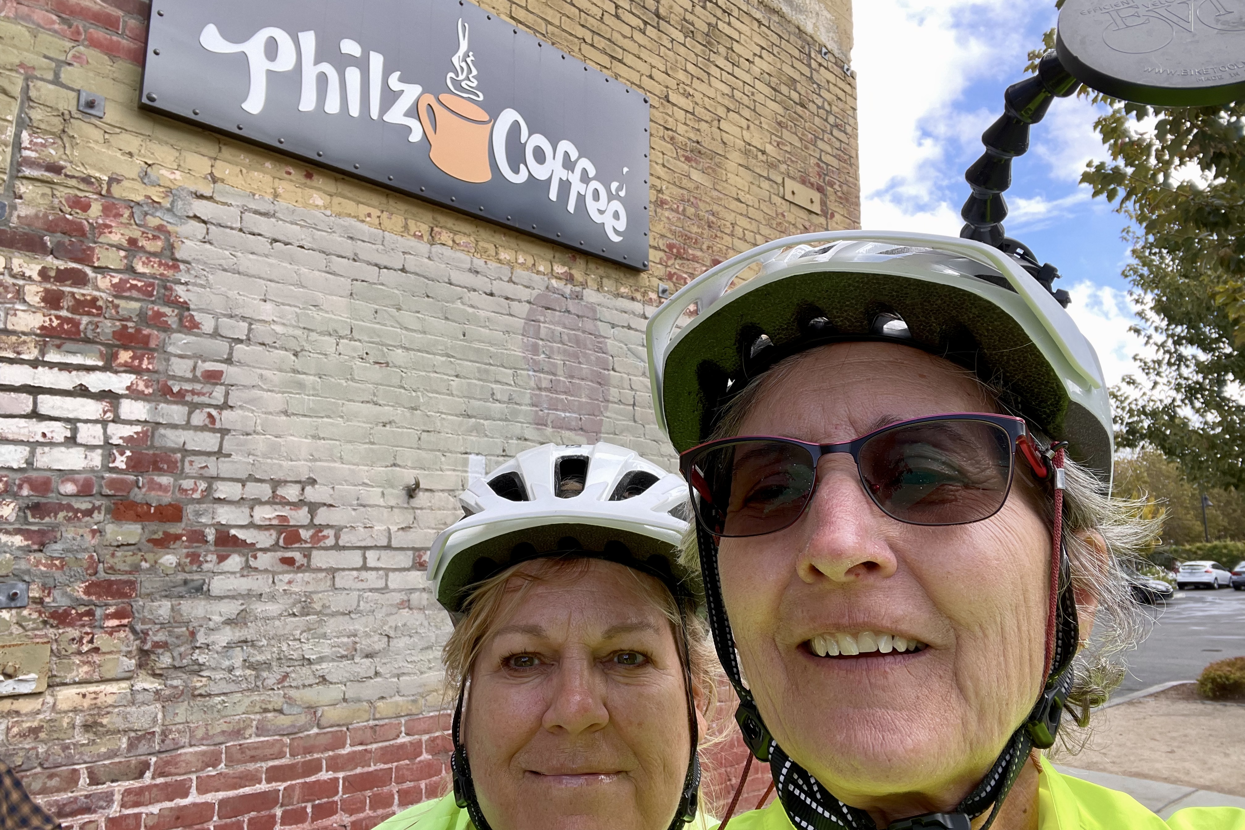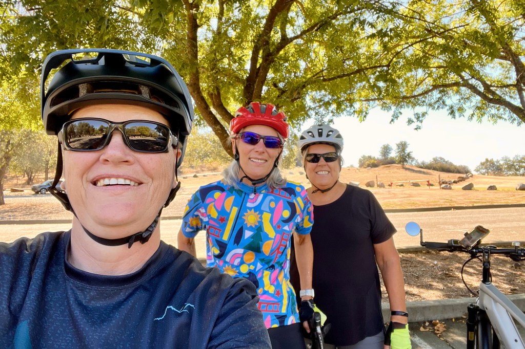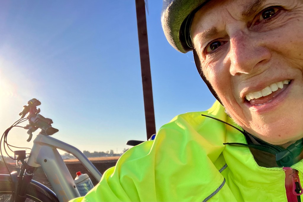 We avoided the kiosks selling merchandise, the hay rides, train ride, corn mazes (3), the petting zoo, and headed straight for Mrs B’s Bakery. Apple cake, pumpkin chocolate cake, caramel apples, and so much more – all in various sizes from individual to family size. This is one of the best reasons to ride a bike – you work hard pedaling the bike 20 miles, you get a delicious reward, then you ride 13 more back and work it off. A logical conclusion, right? This was my first time riding my e-bike a long way post-broken-wrist and I was a bit nervous. I was so glad Barbara came with me.