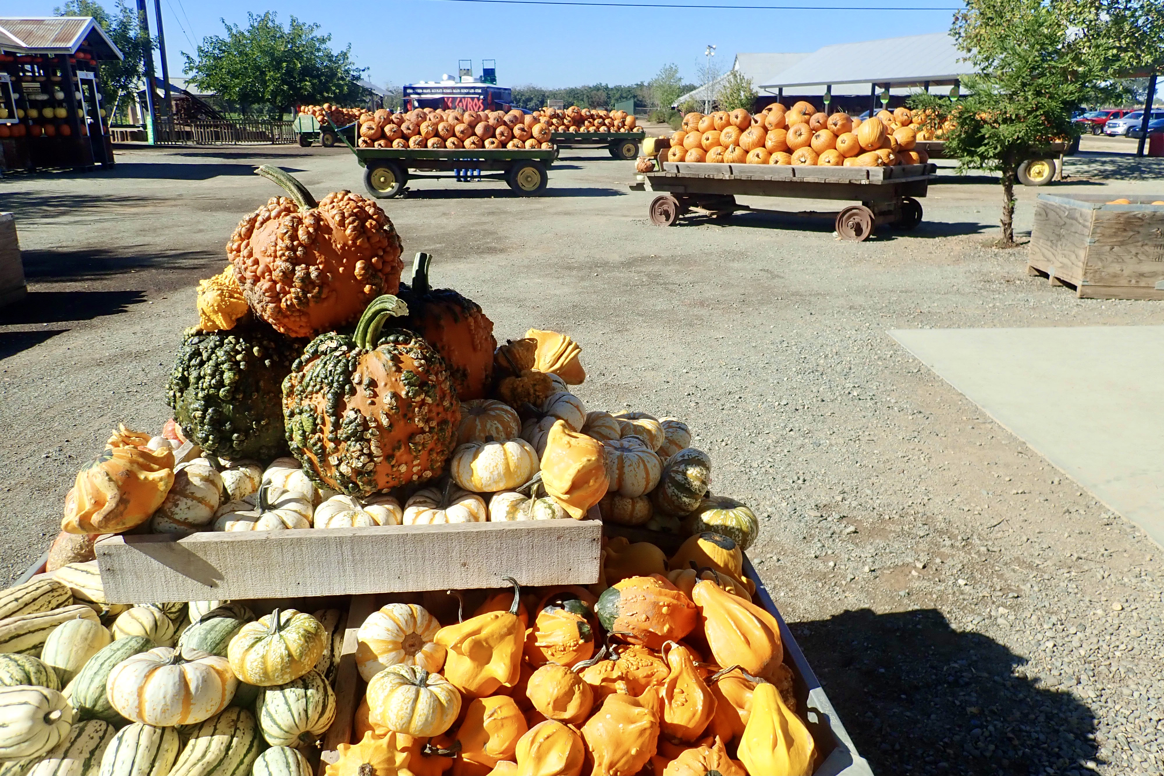 In Wheatland. My first time and I was amazed. Barbara and I drove to E Nicolaus and parked at Sammie’s – a fast-food place. We rode through Nicolaus and Rio Oso, taking country roads through orchards and rice fields. We arrived at Bishop’s at about 10:30 to find the place already busy with cars, people, and school buses of children on field trips. The crowds on the weekend must be huge, the actual parking area was only 1/4 filled.