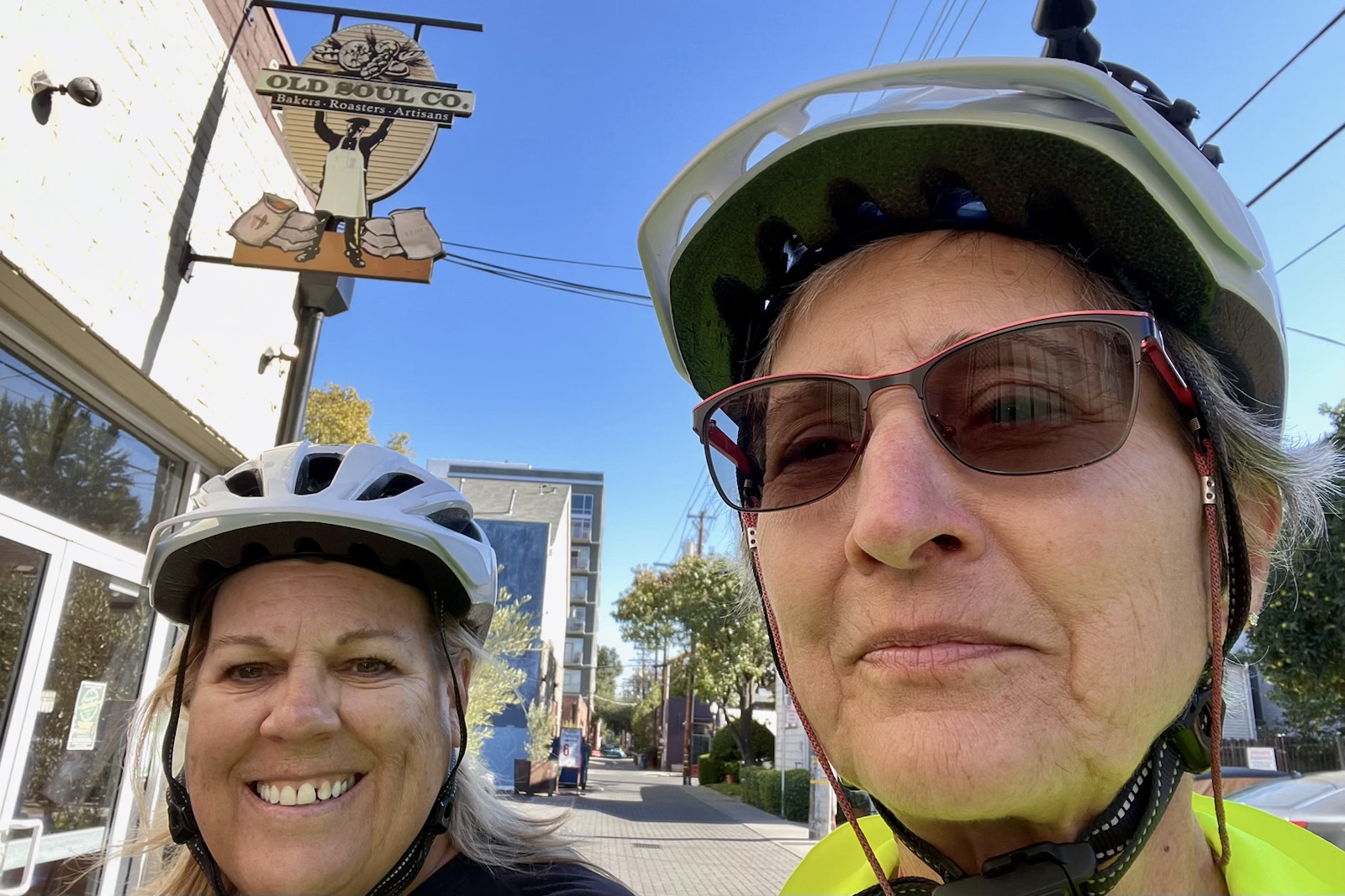 Saturday October 22. Deb Banks/SABA, Brenda, Anne Geraghty/WaCo, Tracy at an e-bike event in W Sacramento: