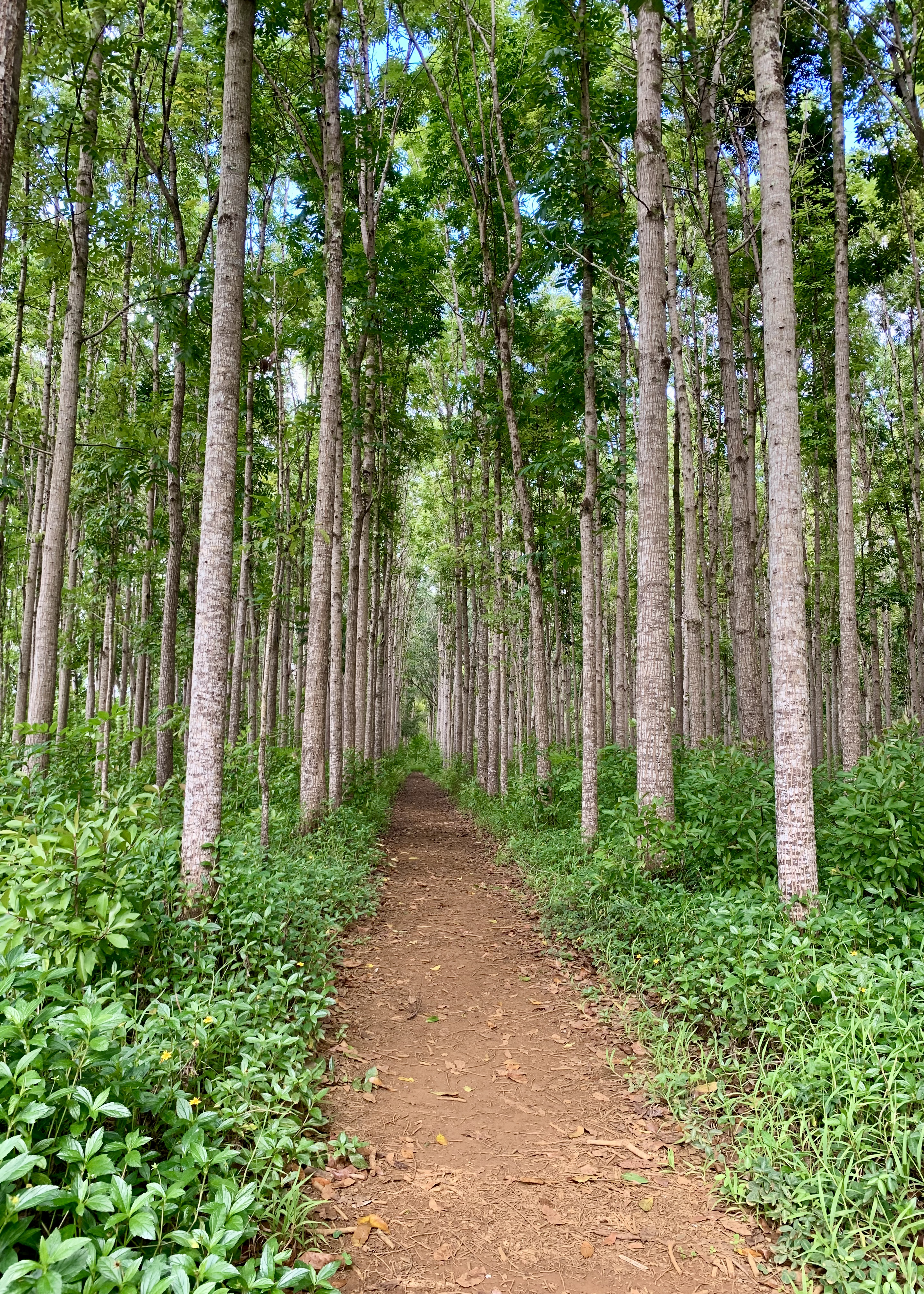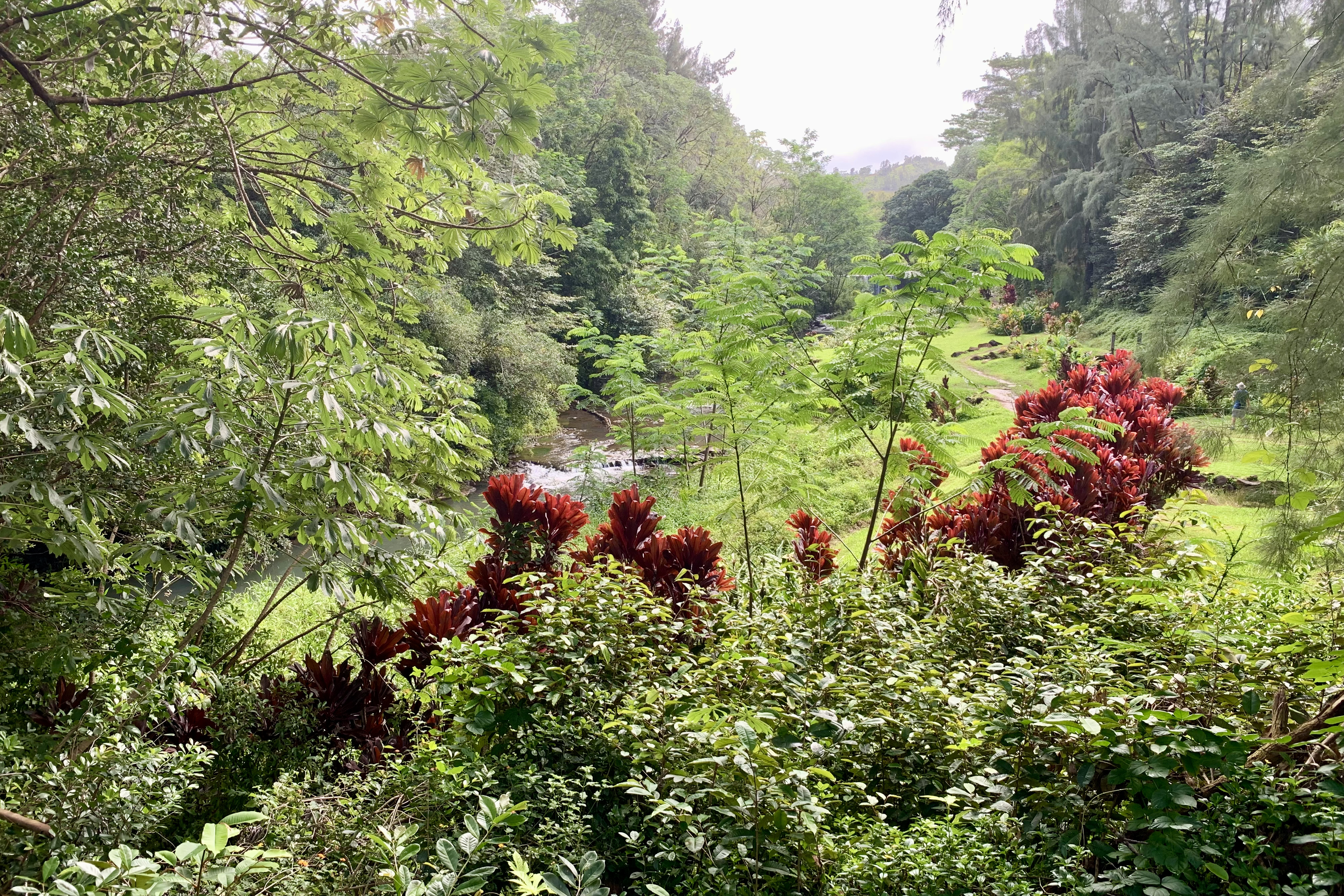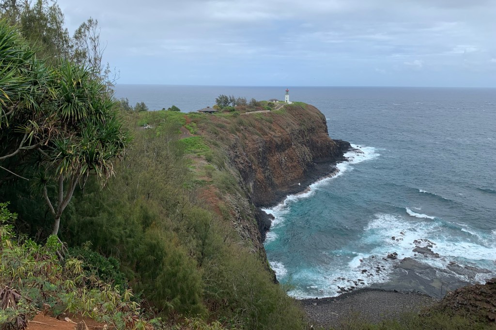 With no specific plan for the day, we decided to go back to a couple of our favorites on the north shore. Hanalei Gourmet was closed – a staff holiday until next Sunday – so we drove to Kilauea and had a very good fish sandwich at Kilauea Market and Cafe. Here are a few views of the area around the timeshare we’ve been in. On one side was a parking area with 2 food trucks – one Mexican, the other Asian fusion – both with good food and more convenient and cheaper than going to a restaurant. On the other side, the pool.