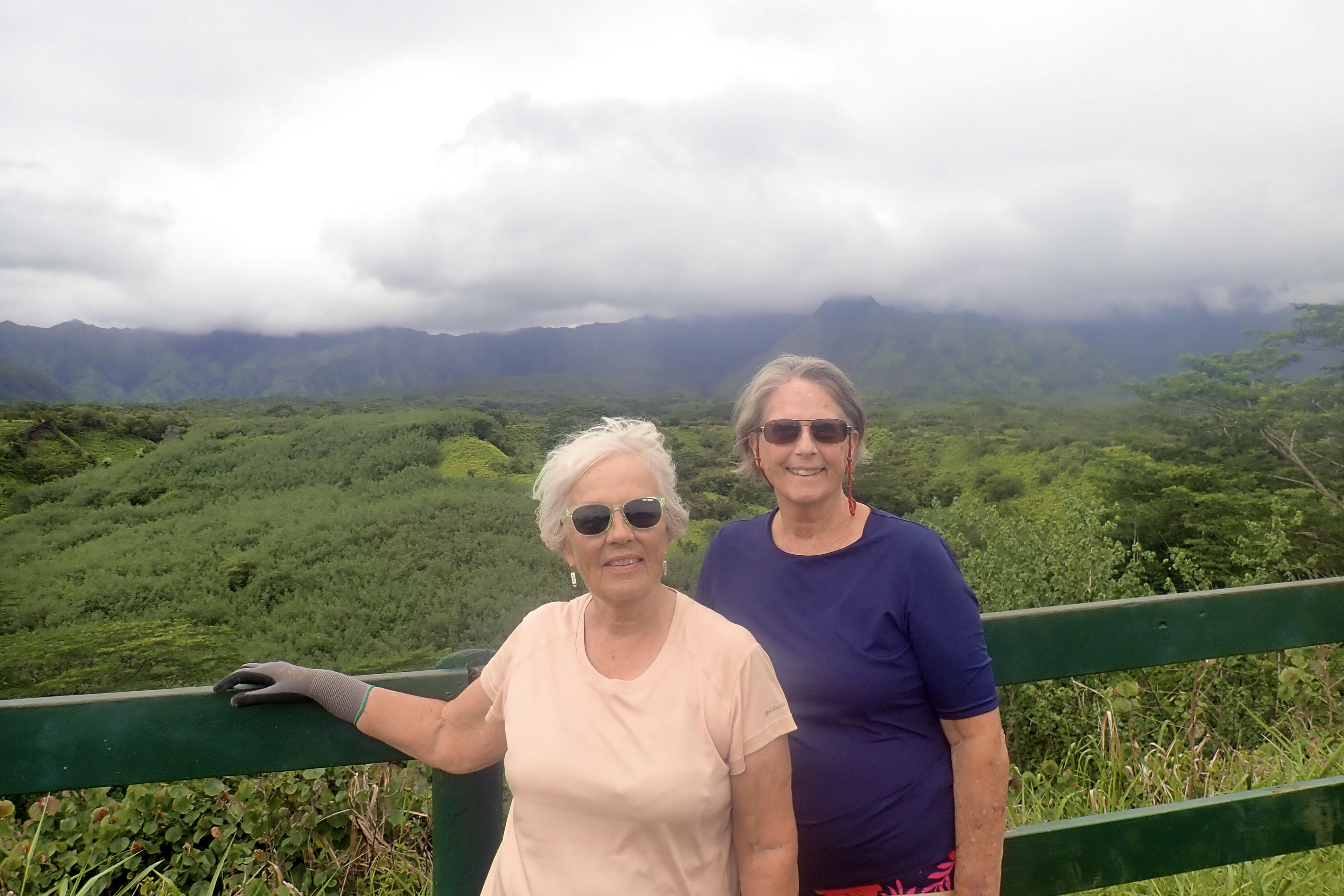 is located. We signed a lengthy waiver and were fitted with helmets and gloves. 14 of us plus our guide Sofia got into the back of an open-air truck and were transported to the starting point. Once we left the paved road, we continued over a bumpy dirt track. The first stop was a scenic overlook of Mount Waialeale, a shield volcano shrouded in clouds, the wettest spot on Earth at 450 inches/year.