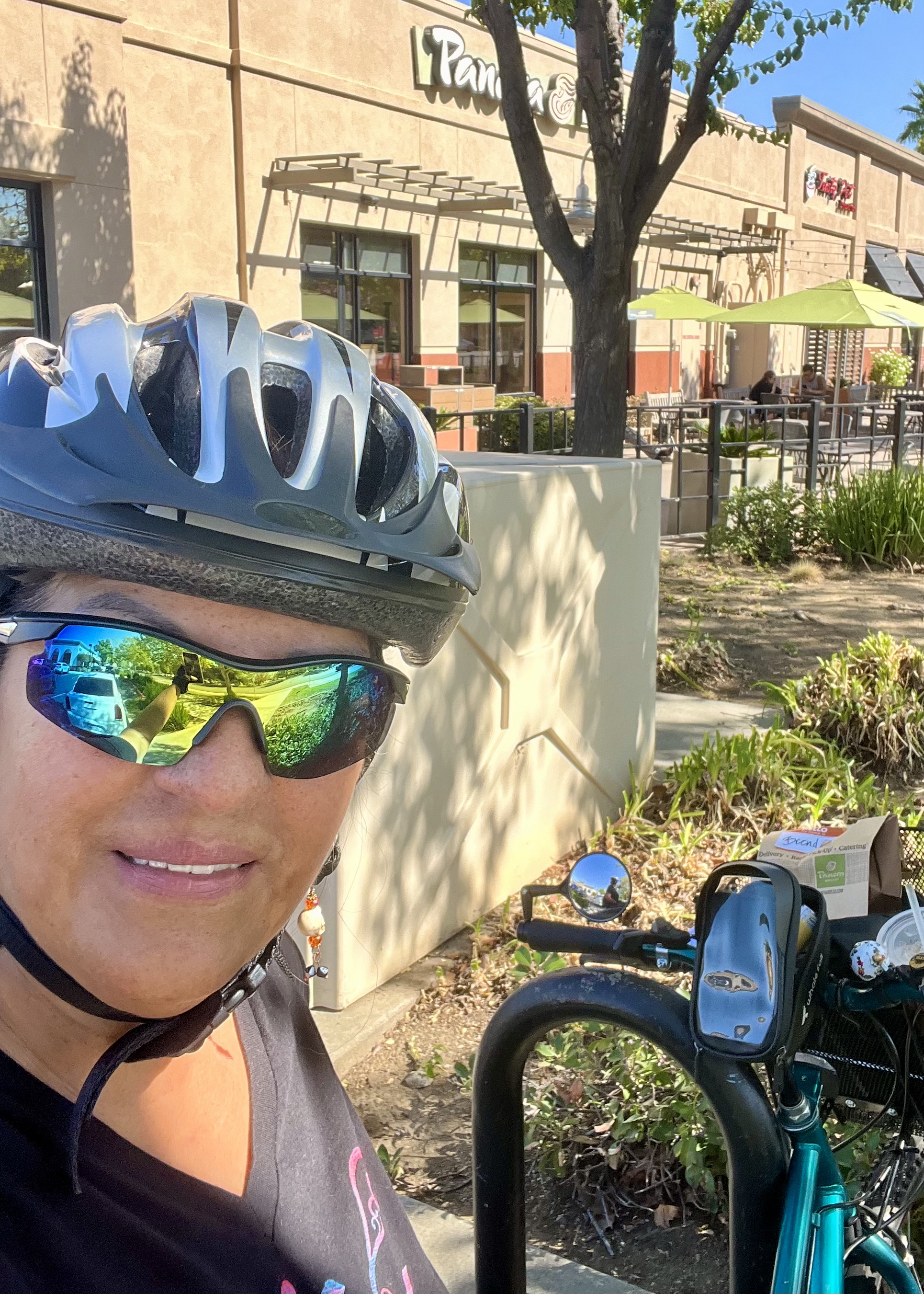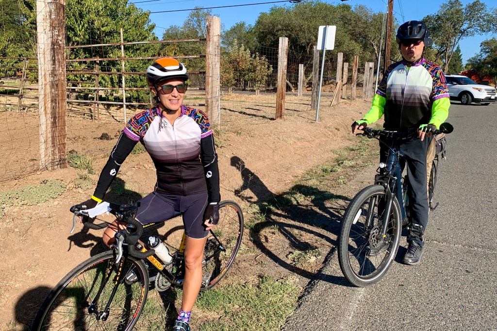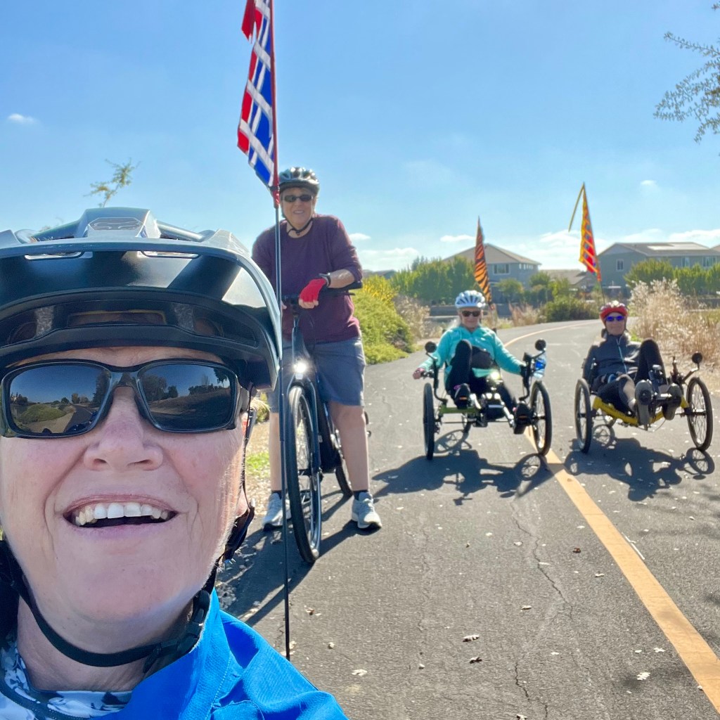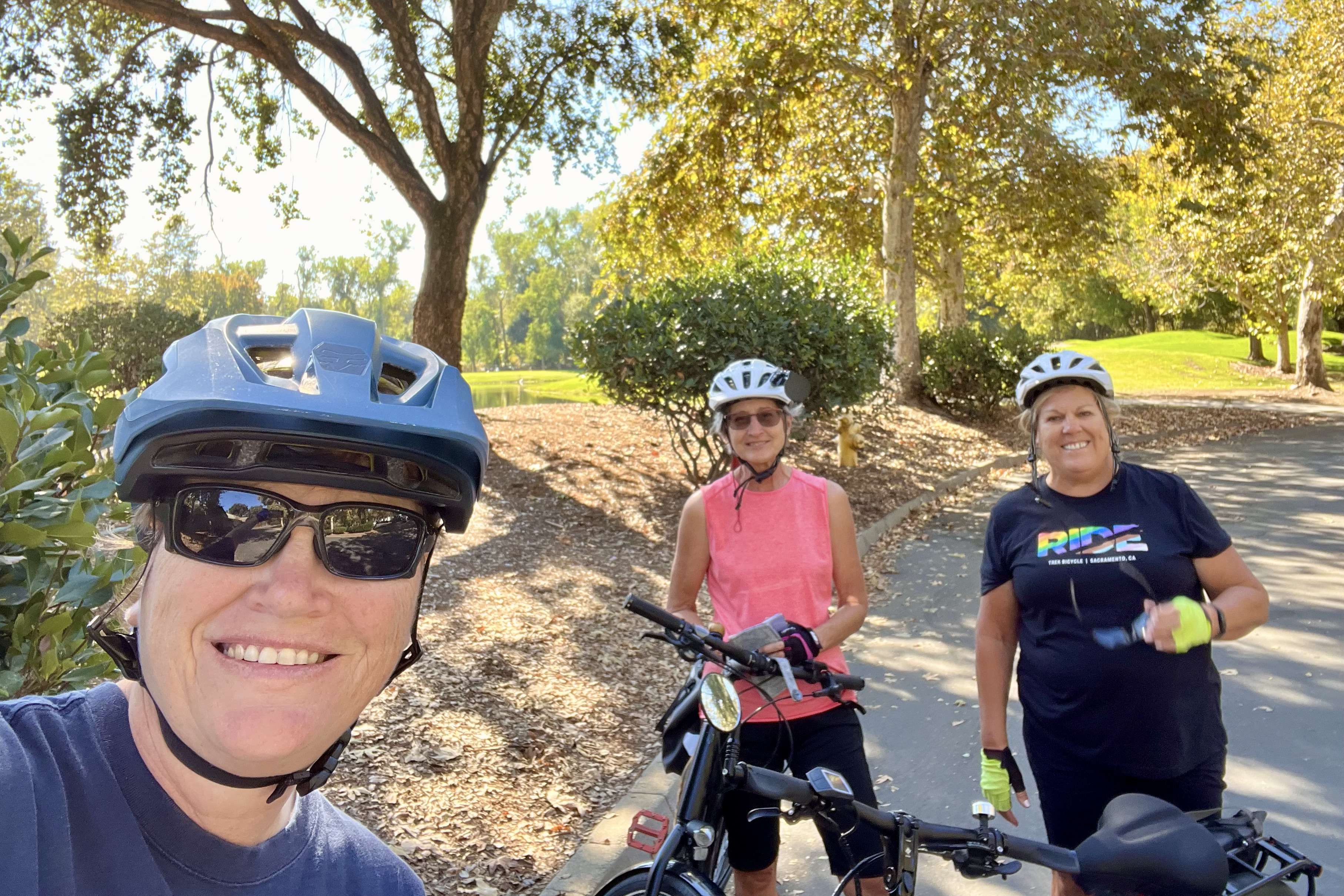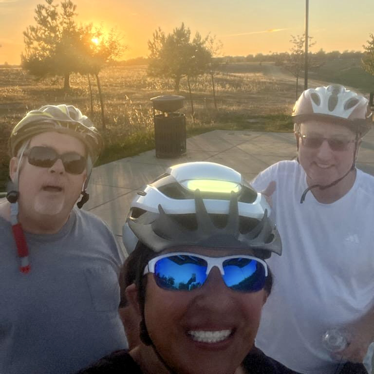 Short story: late Tuesday morning, Agueda had her locked bike stolen in front of Ross at Natomas Marketplace. Later that afternoon, Brenda spotted her bike next to a sleeping homeless man near Inderkum High School, called Agueda who drove over and verified the bike was indeed hers. They quietly picked up the bike and walked away. Agueda got her bike back minus a few accessories about 4 hours after it was stolen. In the early evening, Brenda went for a bike ride with Jim and Paul who titled the incident “Crime fighter by day, bike rider at night.”