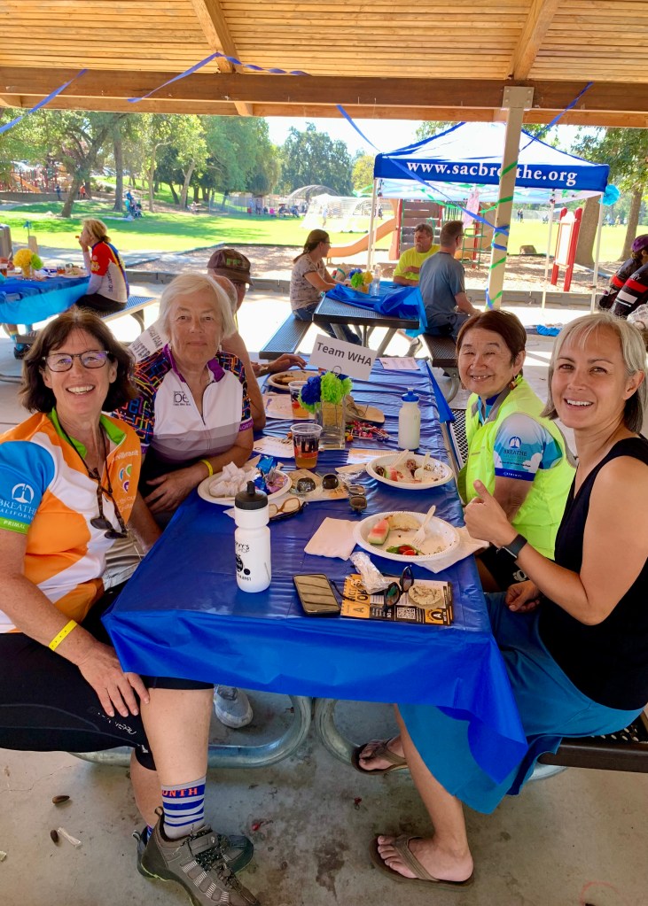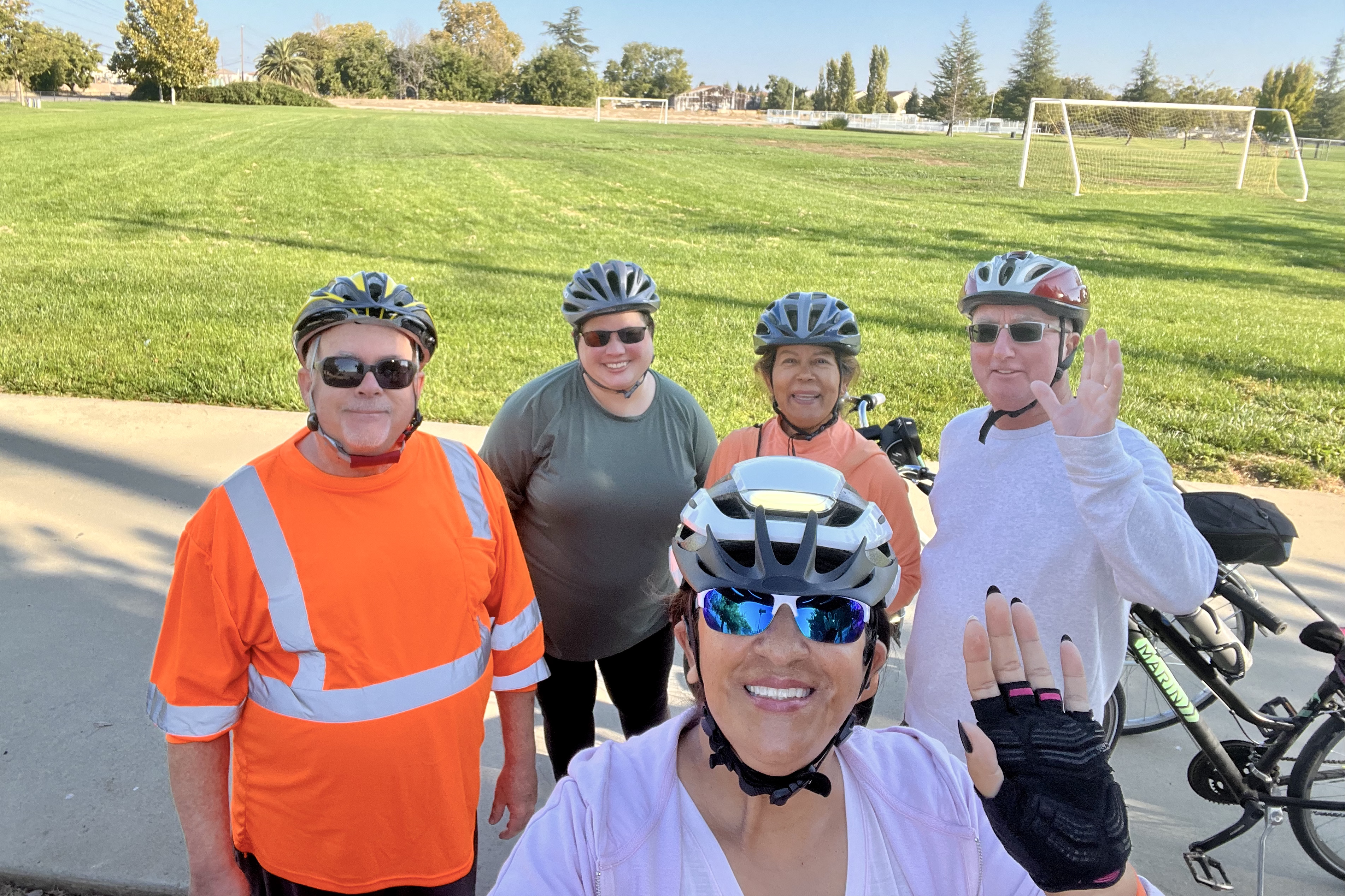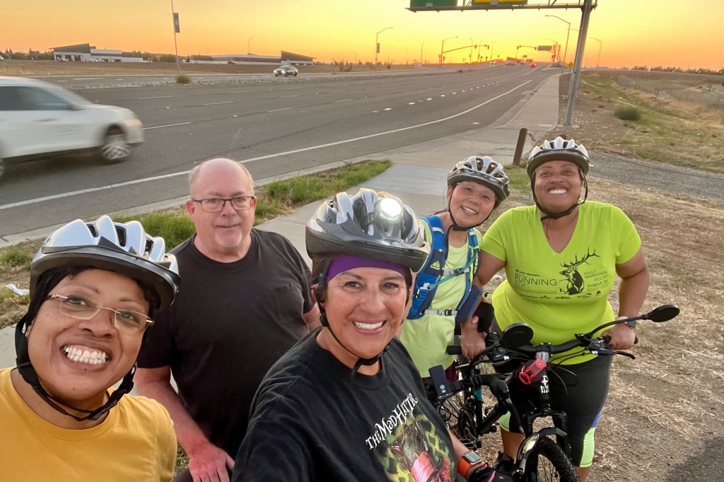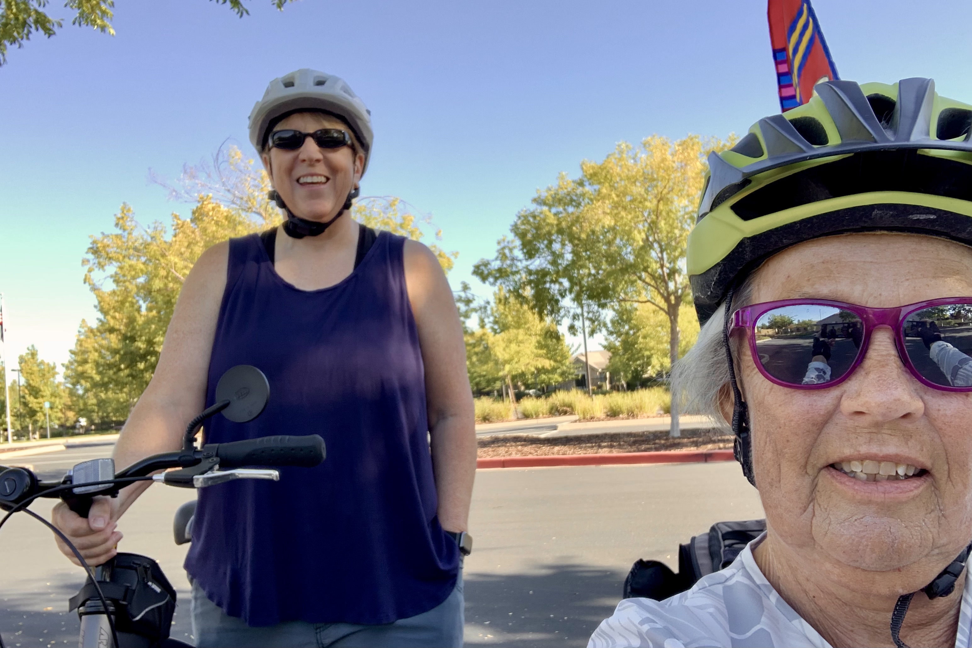 Short story: late Tuesday morning, Agueda had her locked bike stolen in front of Ross at Natomas Marketplace. Later that afternoon, Brenda spotted her bike next to a sleeping homeless man near Inderkum High School, called Agueda who drove over and verified the bike was indeed hers. They quietly picked up the bike and walked away. Agueda got her bike back minus a few accessories about 4 hours after it was stolen. In the early evening, Brenda went for a bike ride with Jim and Paul who titled the incident “Crime fighter by day, bike rider at night.”