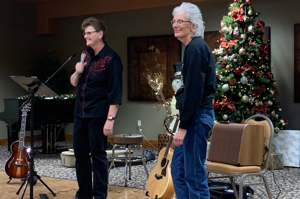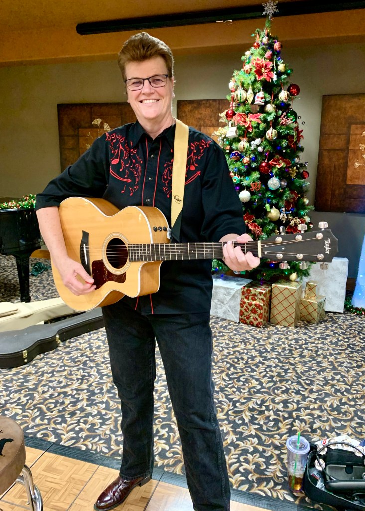 Kathy played a mean tambourine. Kathy used to be a drummer … and a bike racer. Talent all around.