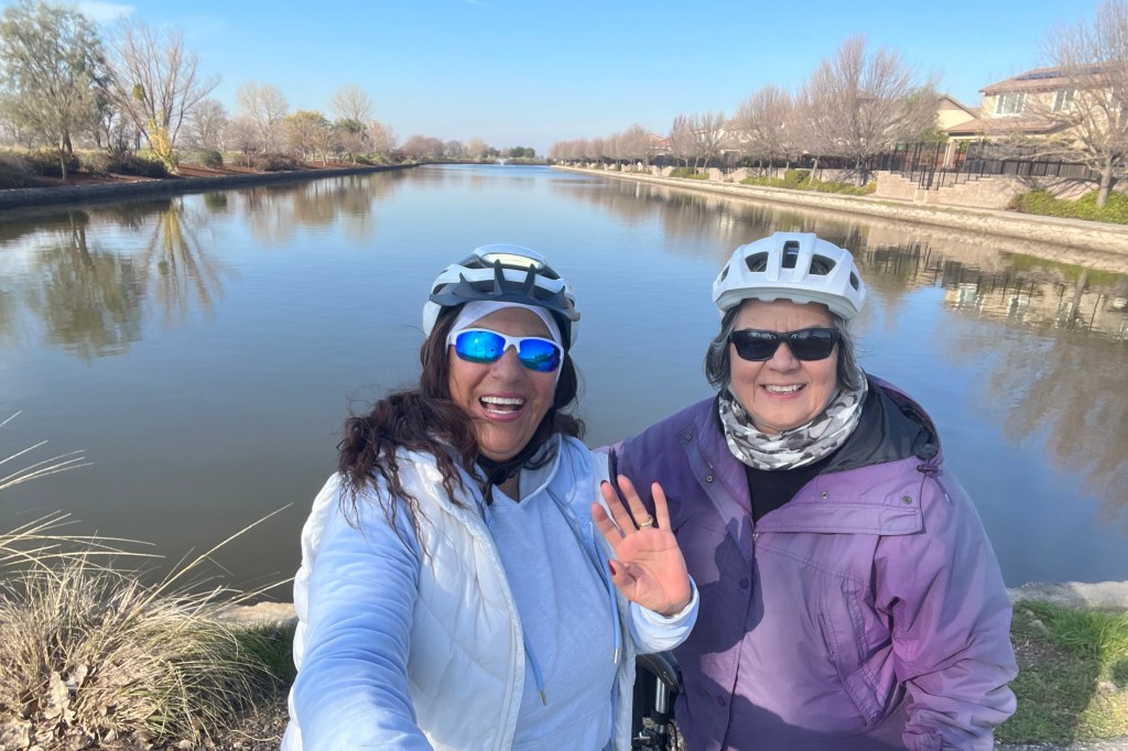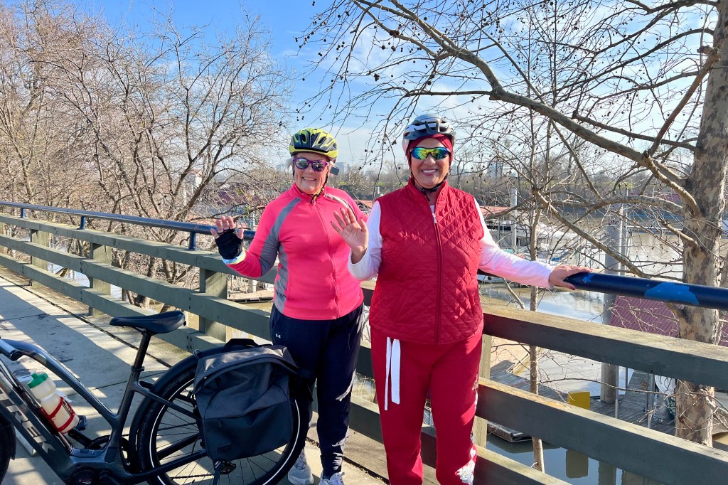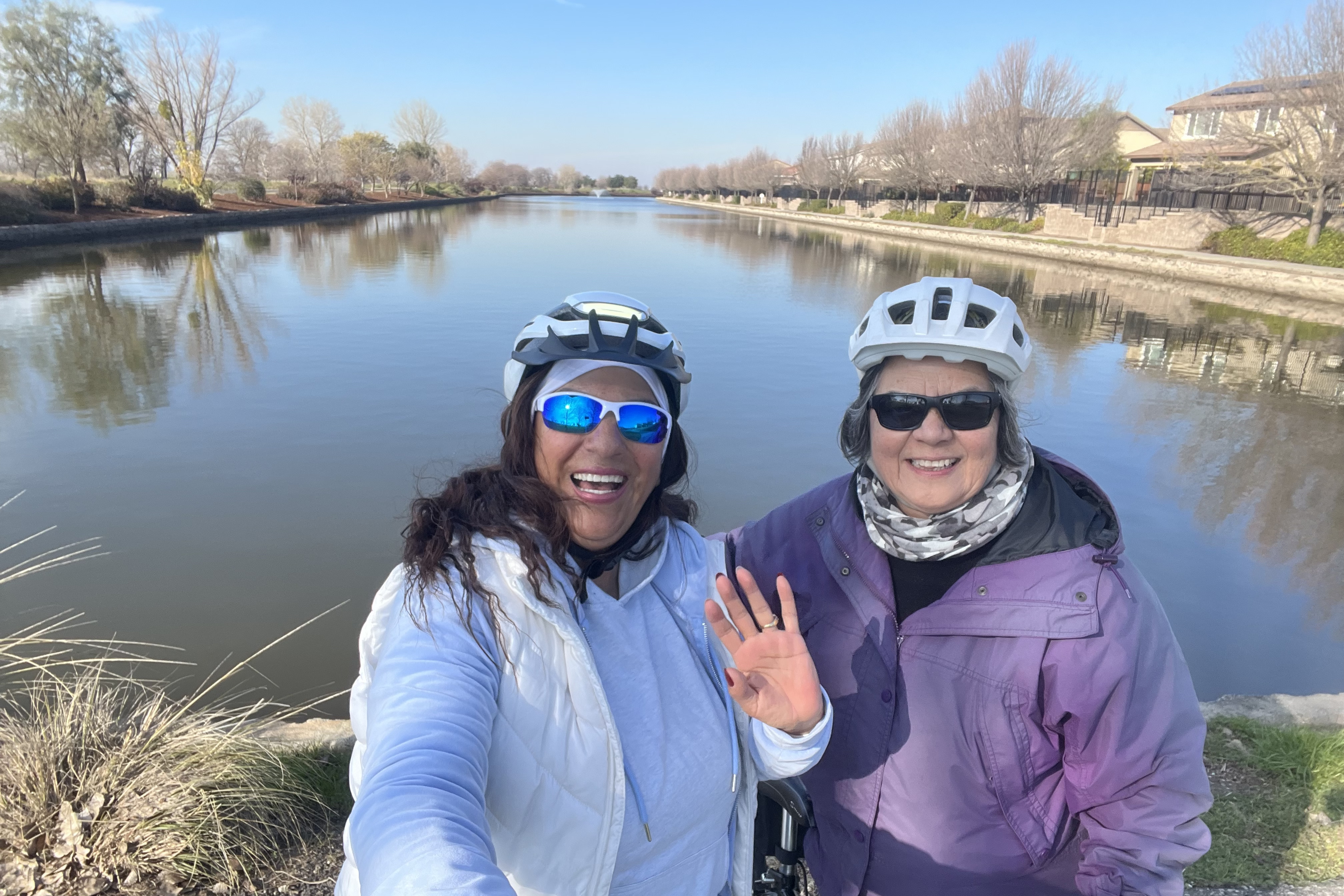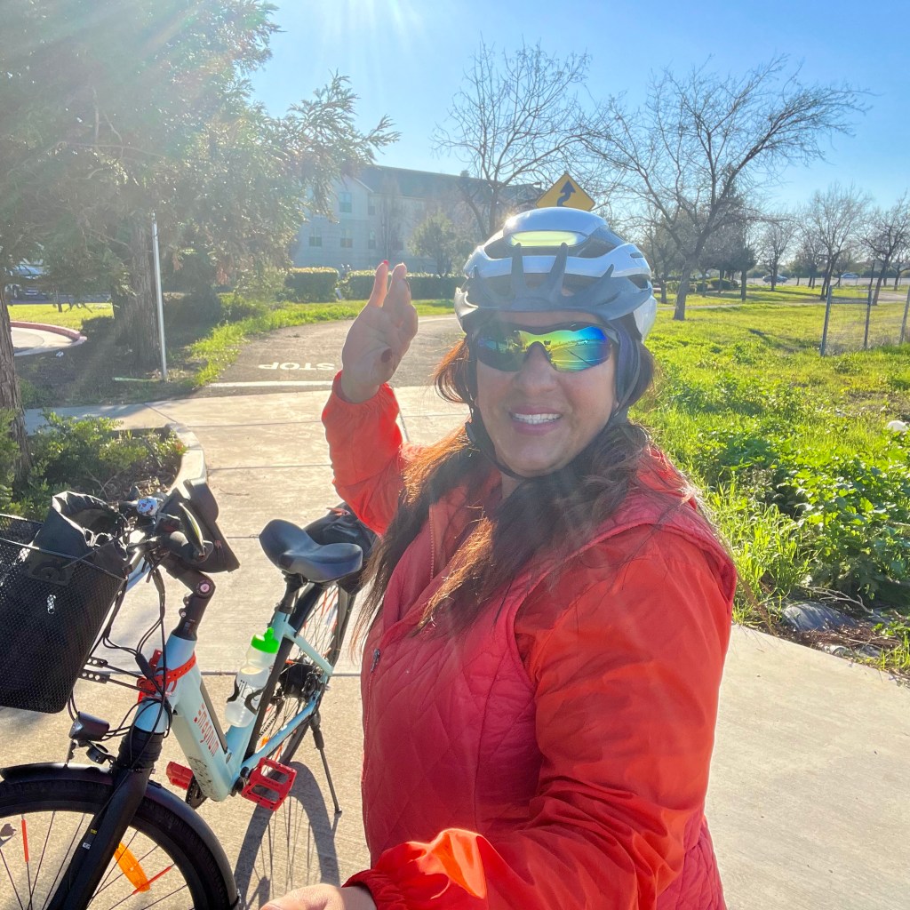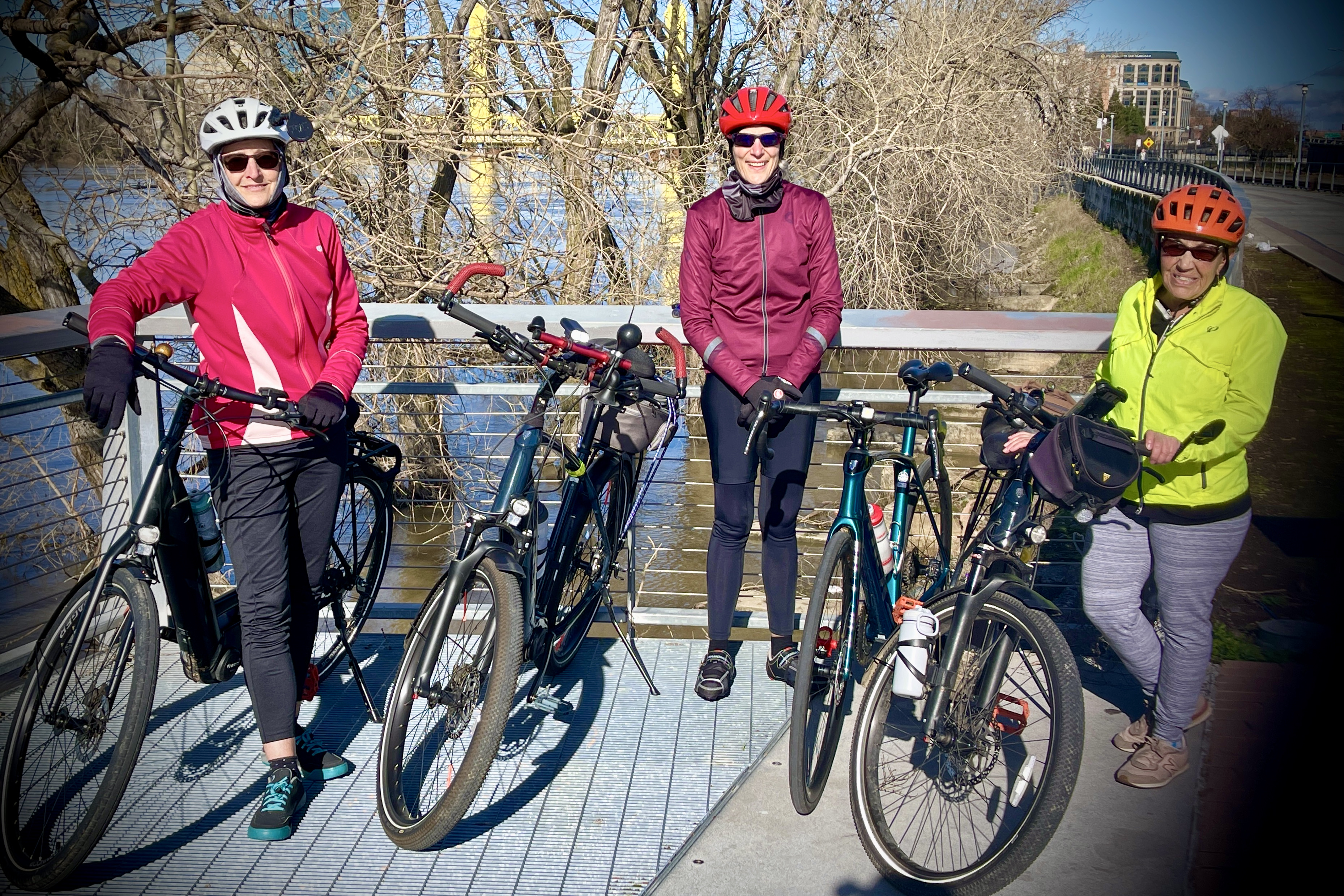 Thanks for riding today: Brenda, Minerva, Yingce, Rachel, Jim, and Carol for riding today. After the main ride, a few of us rode over to the E Levee Rd to check out the flooding from Steelhead Creek and see the Hansen Ranch Park site. Picture taken by the shadow.