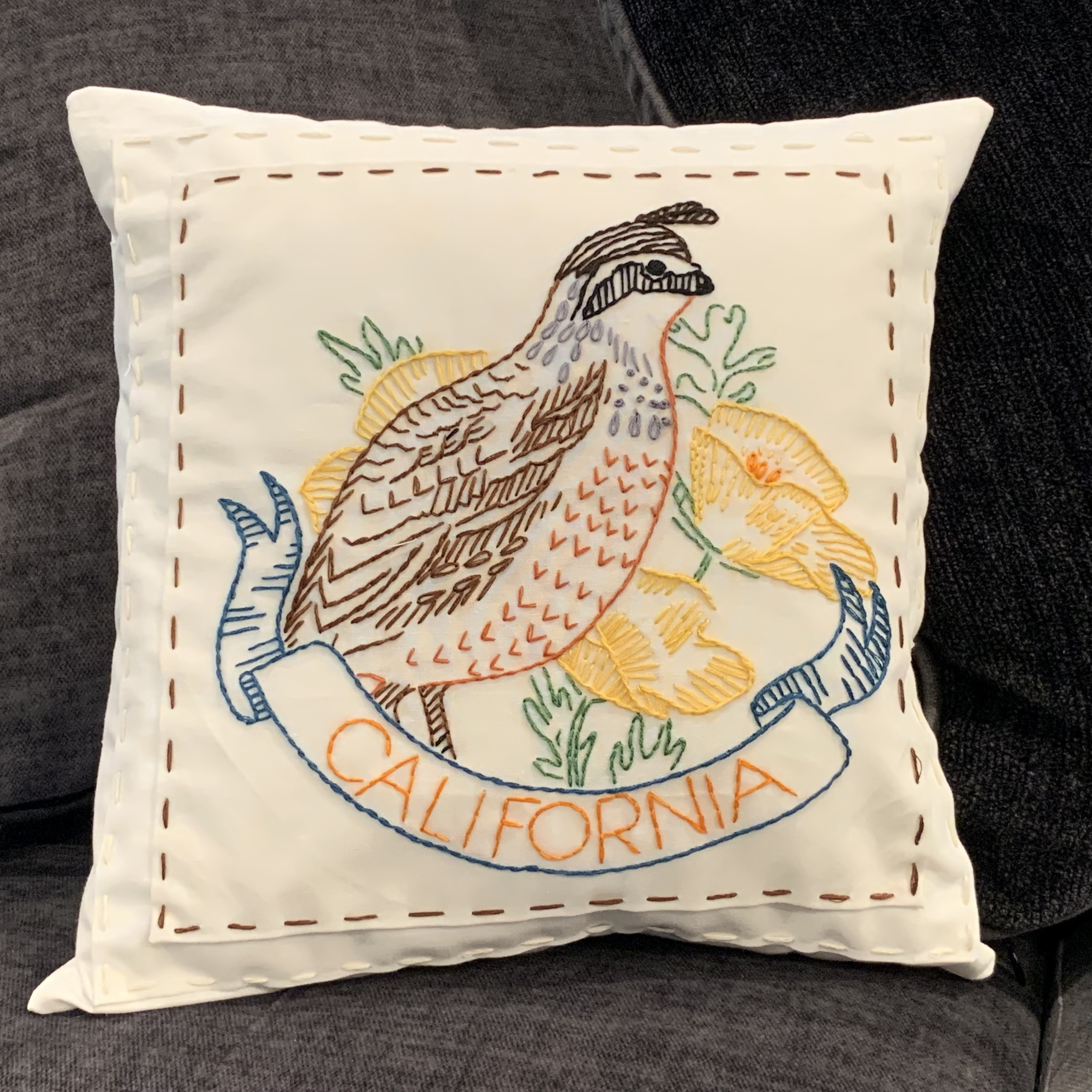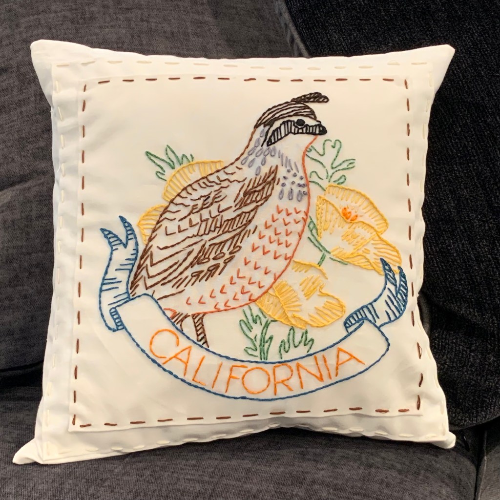 In between, I finished an embroidered pillow for Adrienne – a thank you gift for all the Joe Pickett books and inviting me to Hawaii last fall –