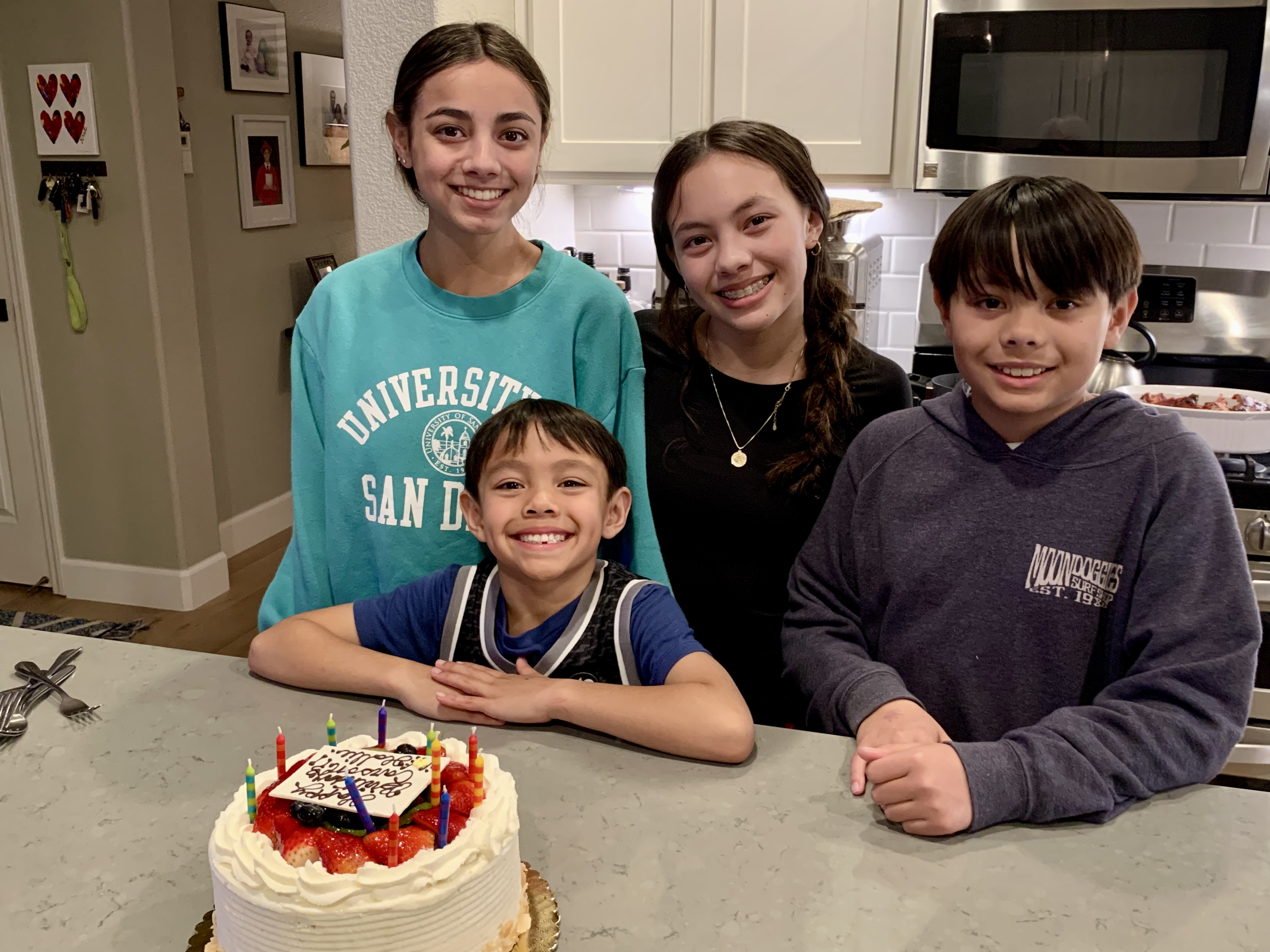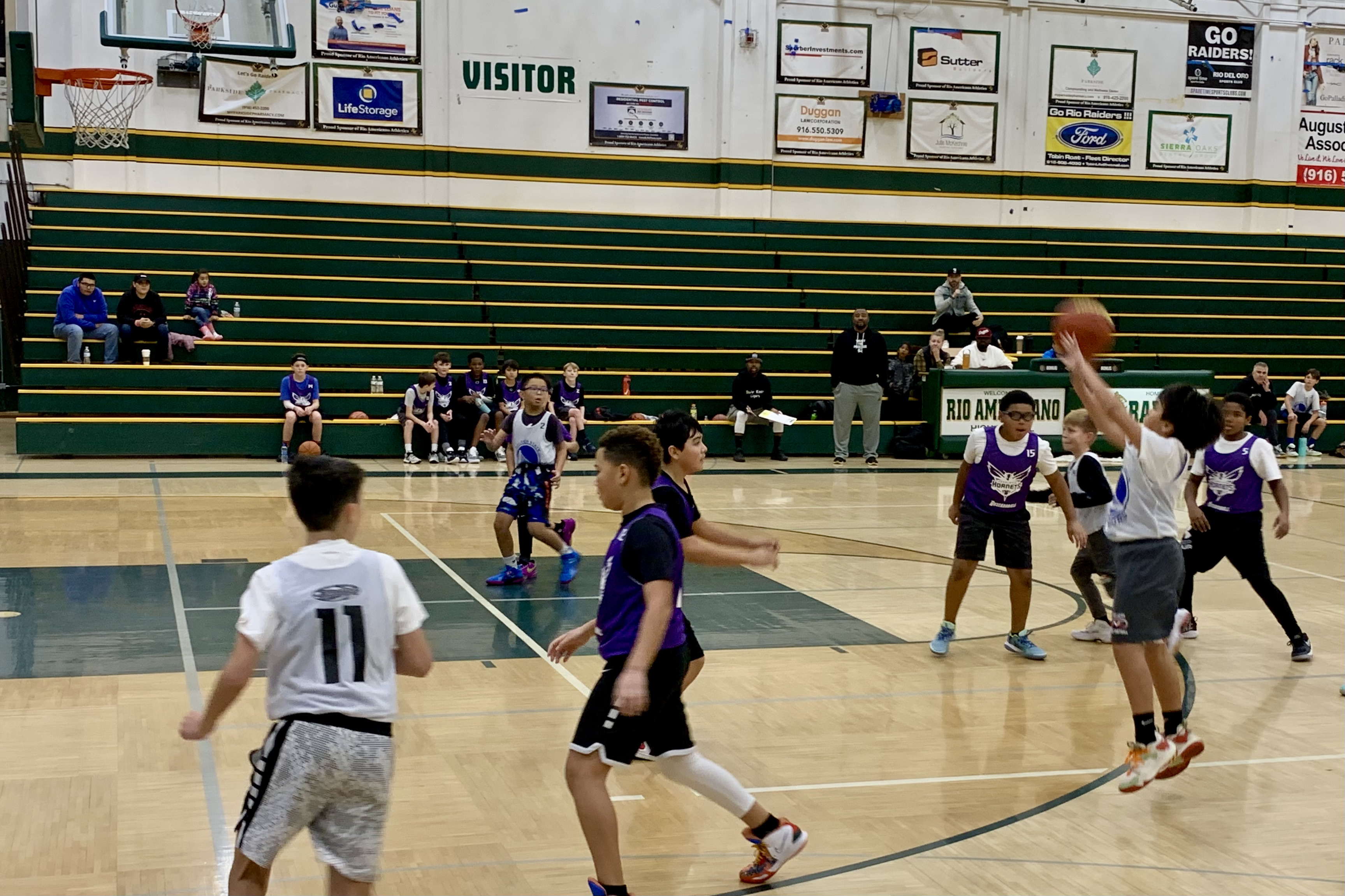 Today started by not going to Carson’s flag football game which happened “rain or shine.” Rain as it turned out. Next Avery’s basketball game. He scored: