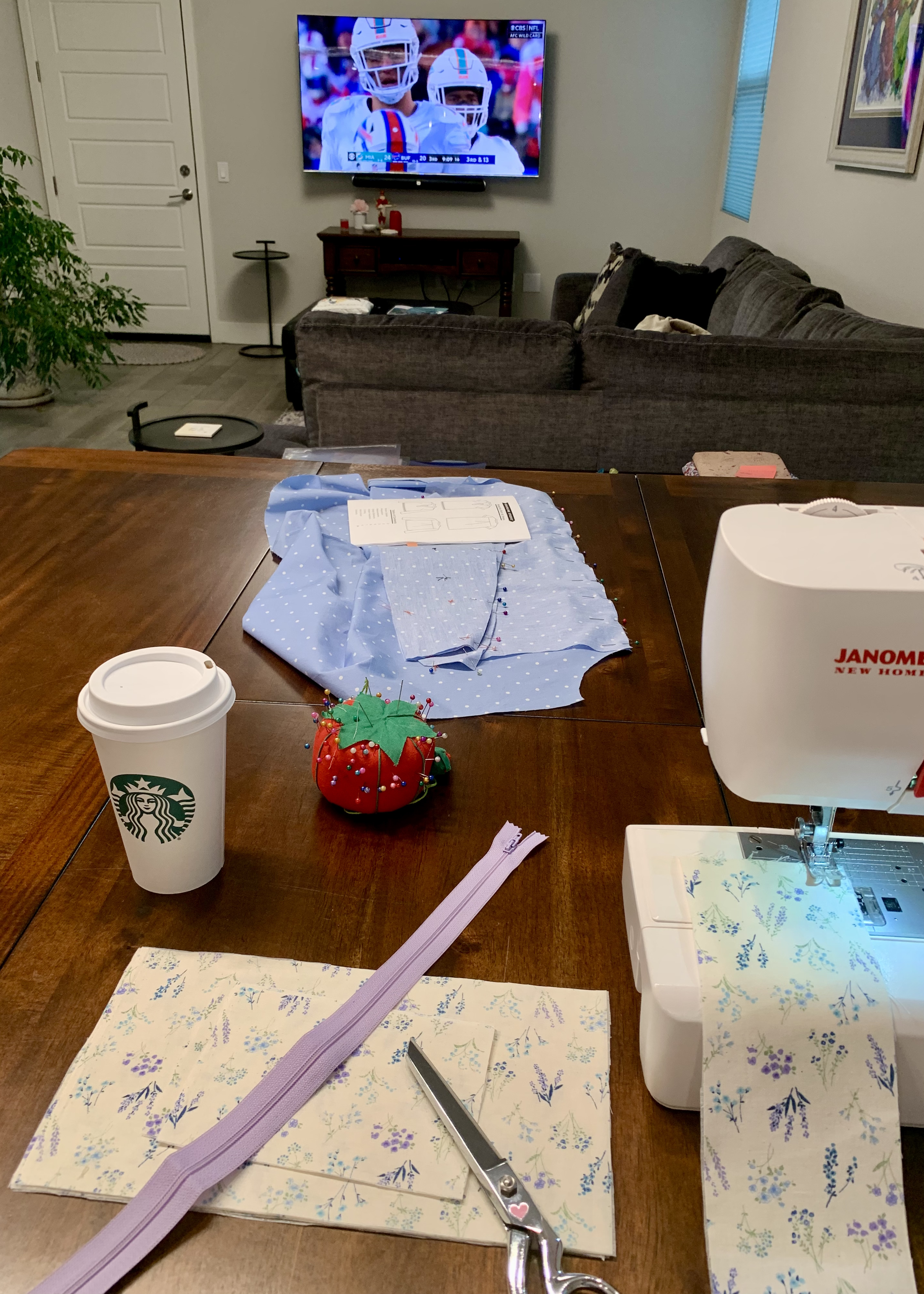 The rest of the day. Starbucks mocha, NFL playoffs, and two sewing projects ready to go.