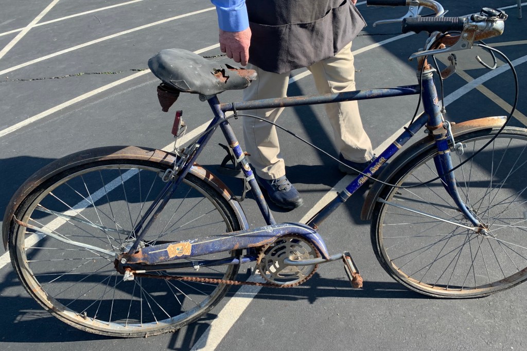 The team of mechanics began working on a set of bikes from the Bike Kitchen, three of which would be raffled off later in the afternoon. This bike never was chosen for repair. One of the mechanics said, “All it needs is .. everything.”