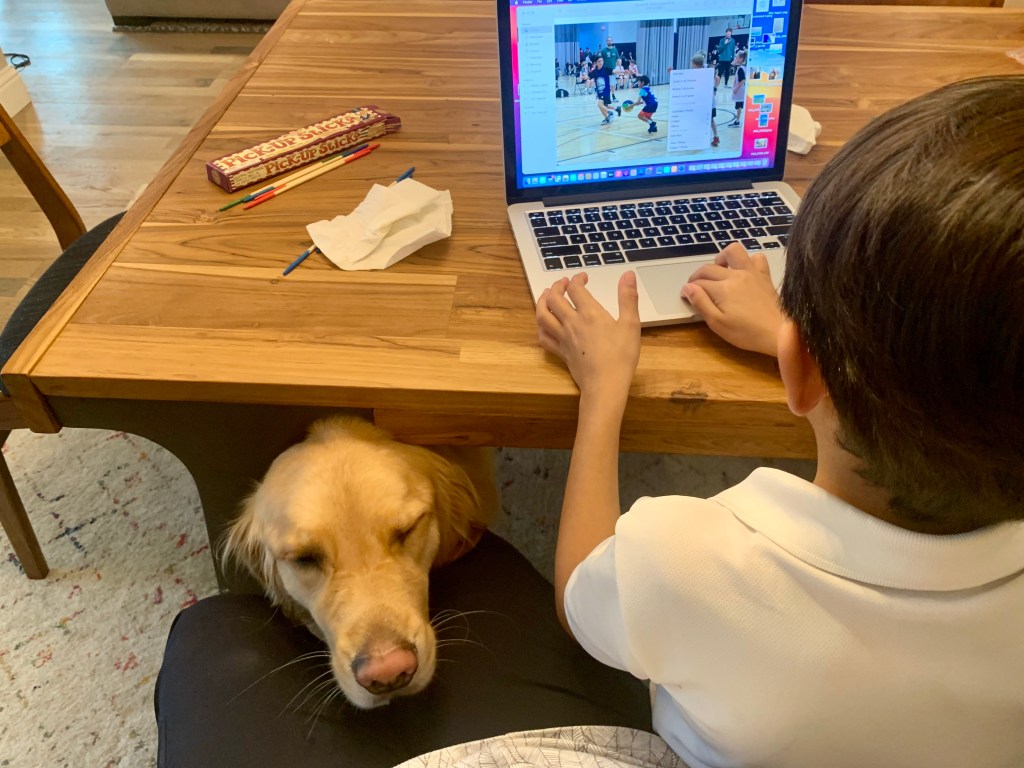 I picked up Carson and Avery after school. I was showing Carson some pictures I took of him at his basketball game. Charlie, under the table, laid his head on my lap – again, he won’t be left out.