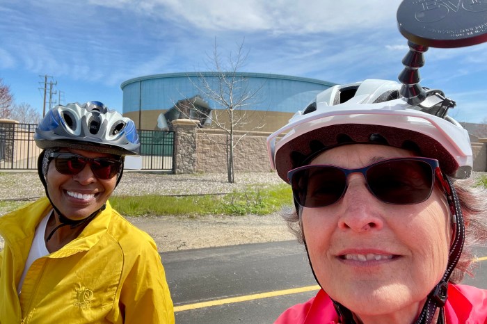 There were probably 15 kids each day. Some just needed riding time to refresh their skills. Others needed to learn from scratch. Our final success story on Friday: Vincent. We talked about a strong power pedal, eyes on the horizon. I ran alongside, barely holding him upright. After a few passes I told him, “I haven’t been holding you up. You’re actually riding on your own.” Vincent: “I am?” That was all he needed to know. Everyone who came to coaching is now riding a bike. LCIs Gina and Pierson were also there to coach and encourage.