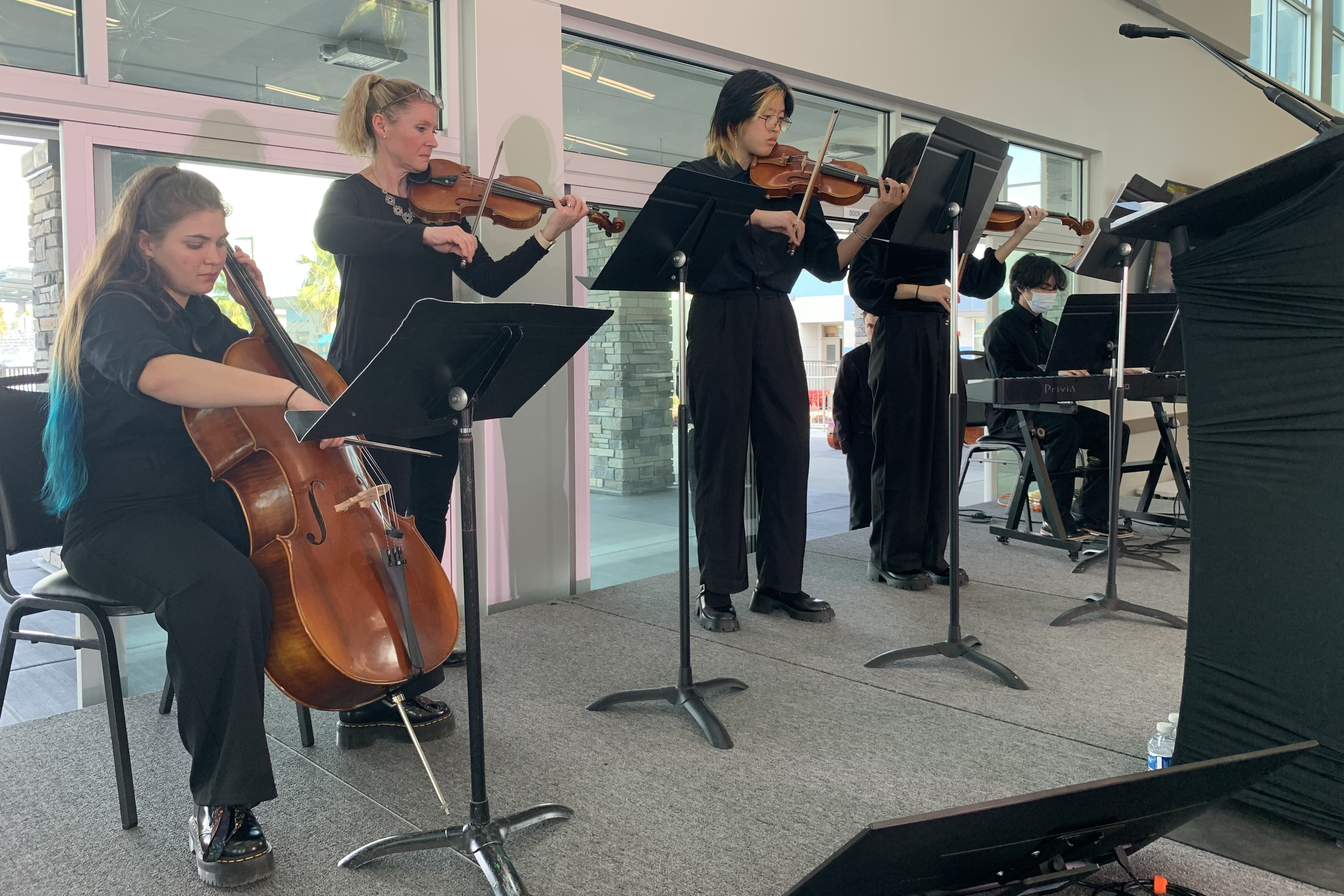 at H Allen Hight Elementary School. Five 5th grade classes with just 5 minutes between classes. Wednesday a day of indoor teaching because of rainstorms. I worked with Deanna: