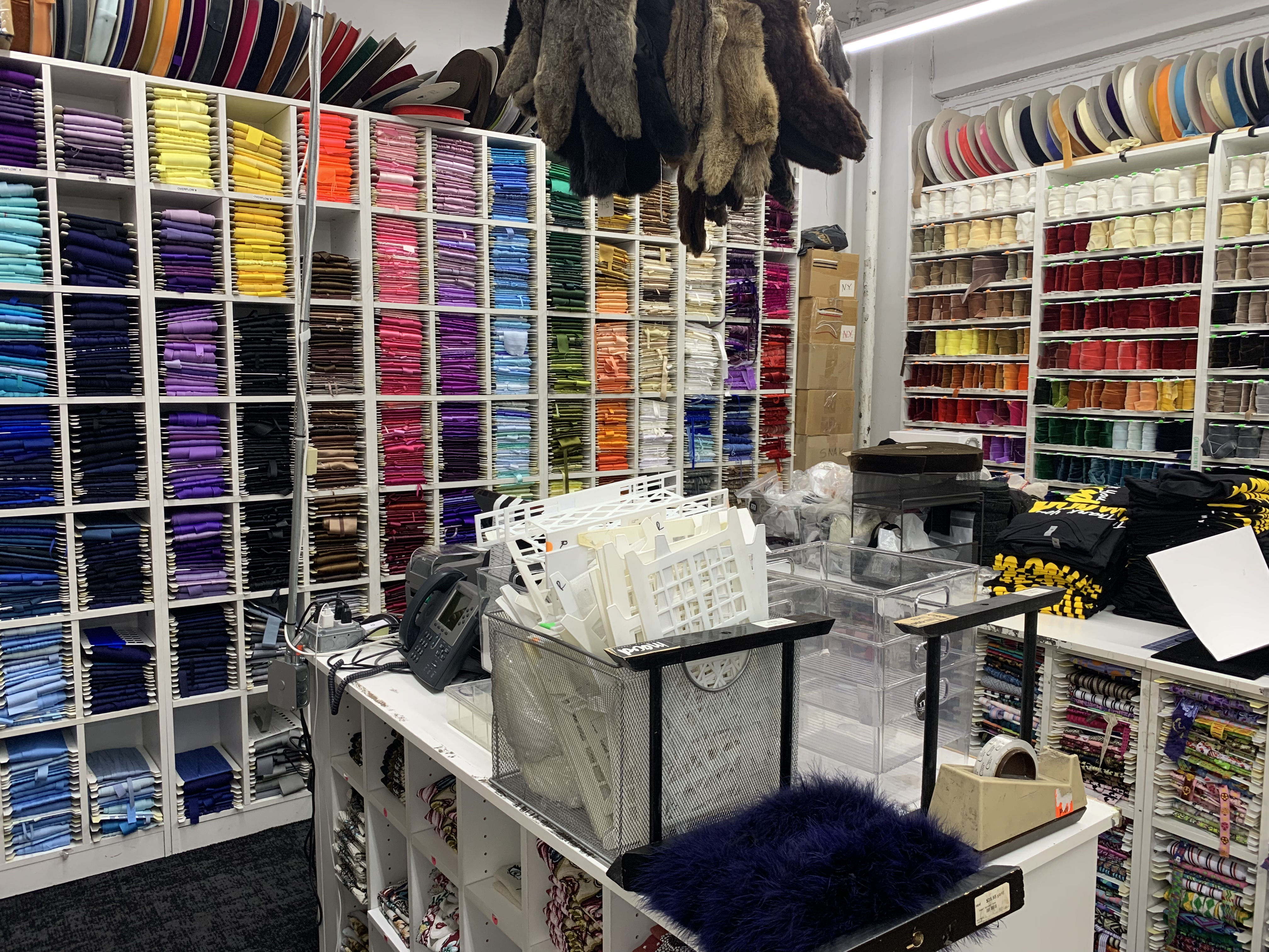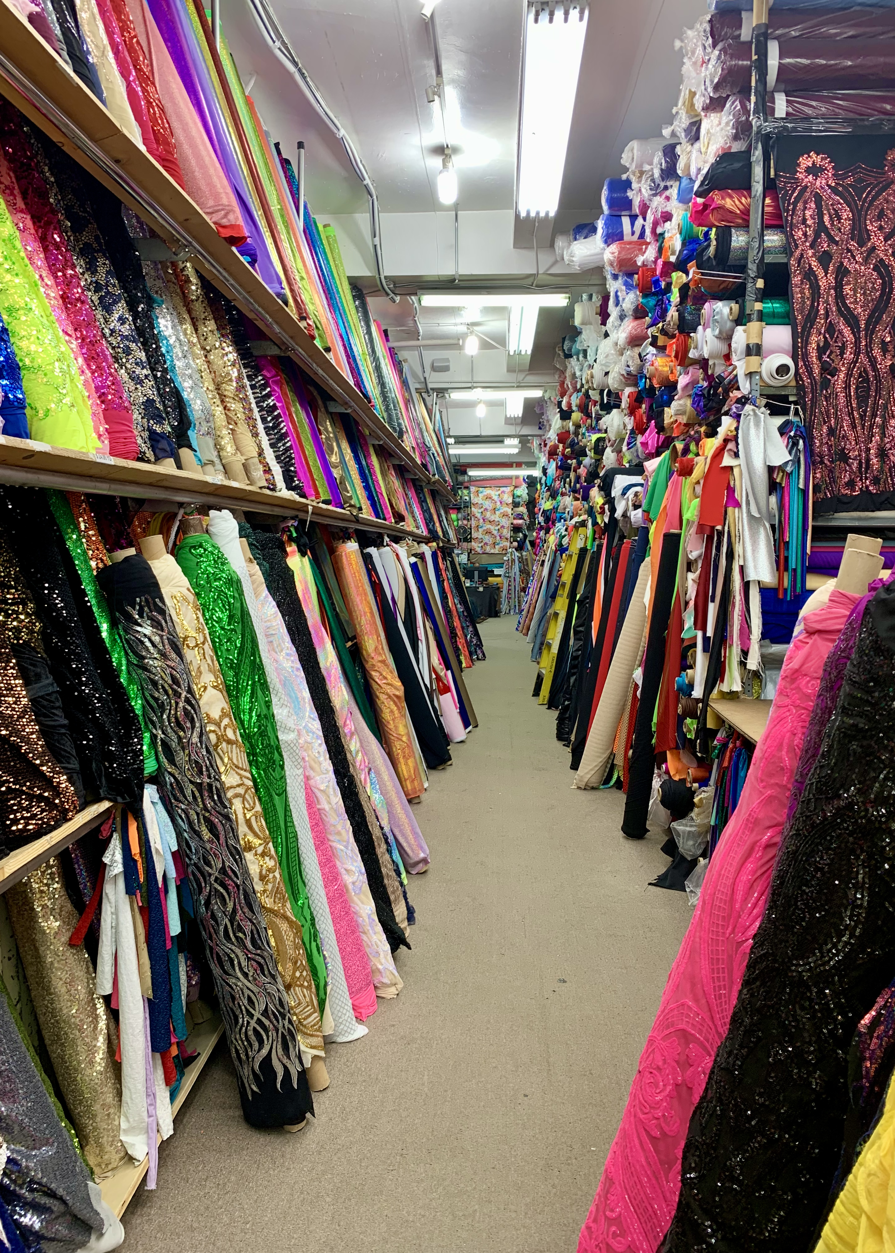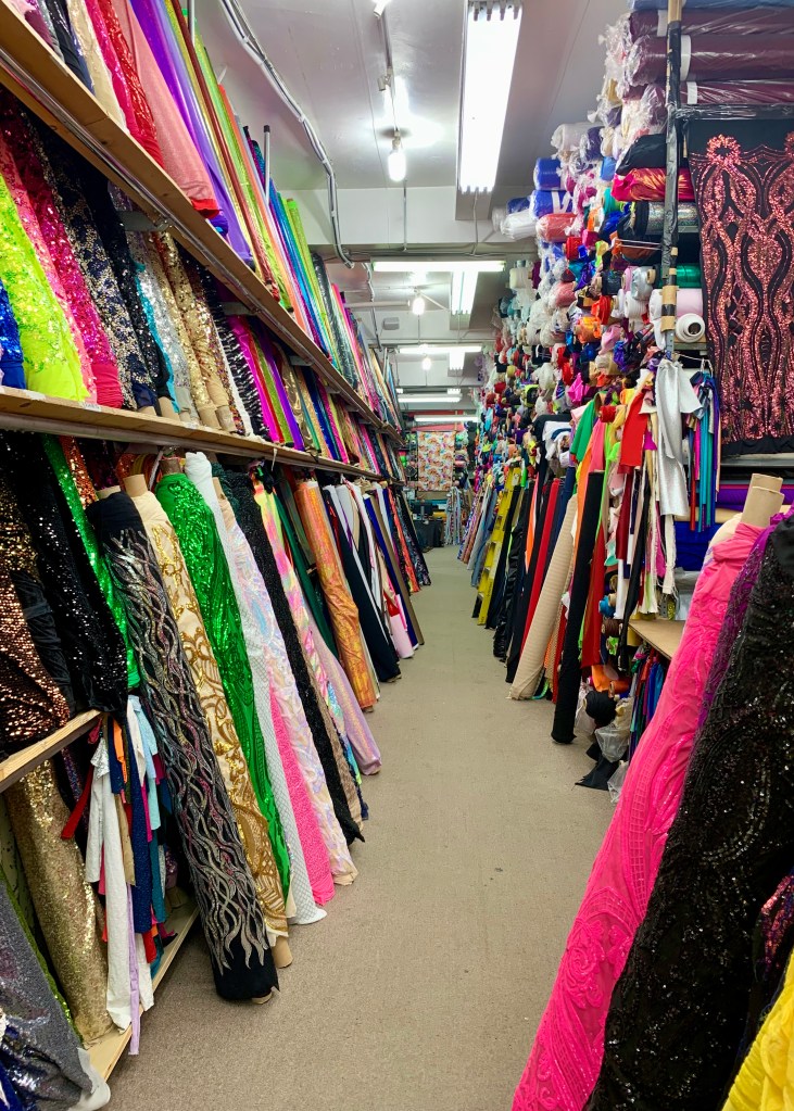 We decided to check off my #1 wish – a trip to Mood Fabrics – just a 20 minute walk from our hotel. 3 floors of fabric – an overwhelming choice of fabrics – most of the bolts lay horizontal on deep shelves (like the upper right part of the picture) which makes searching for something special a bit challenging.