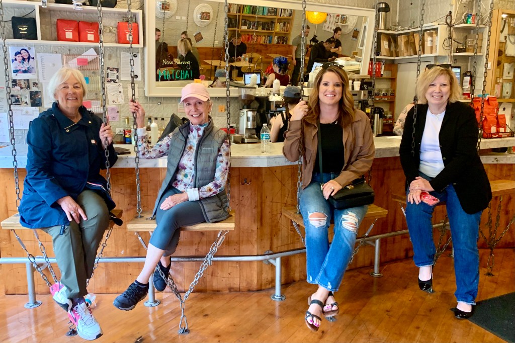 Molly was a 3rd grade teacher before opening her shop which is decorated like a classroom including (well-anchored) swings at the counter. Also on the tour were friends of Maria’s from Lake Wildwood, Heidi and her mother-in-law Sheree. While all 3 of their husbands are golfing in Arizona, we are having fun in NYC!