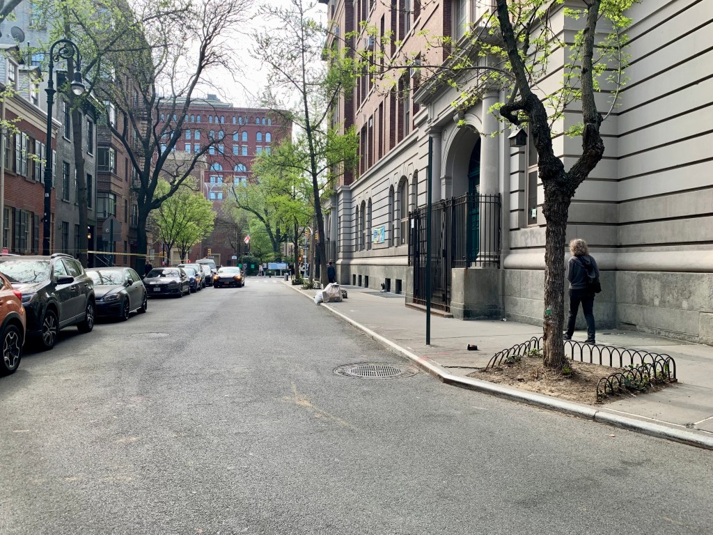 On the right, a public school. During the week, this street is blocked off so the kids have a place to enjoy recess.