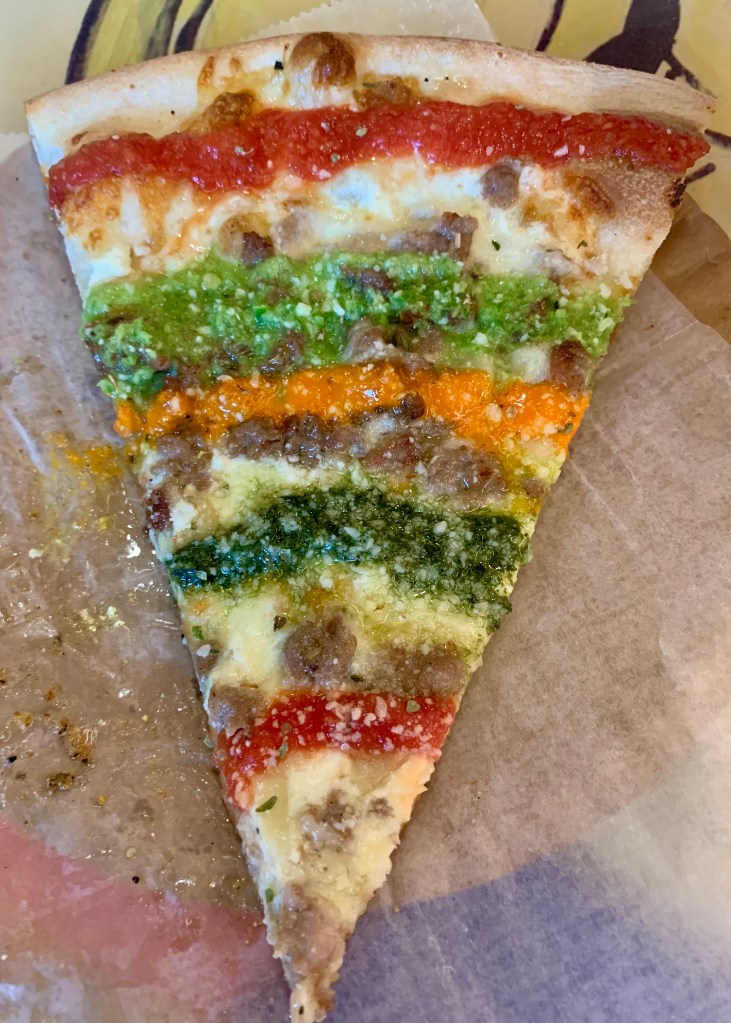 A “slice of pie” from Two Boots Pizza. “The Duchess”: