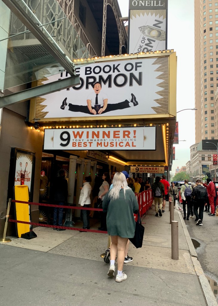 We were able to get some great seats (Orchestra center, Row 9) for today’s matinee performance of The Book of Mormon. We had just enough time for lunch at a Celtic pub before heading to the theater.