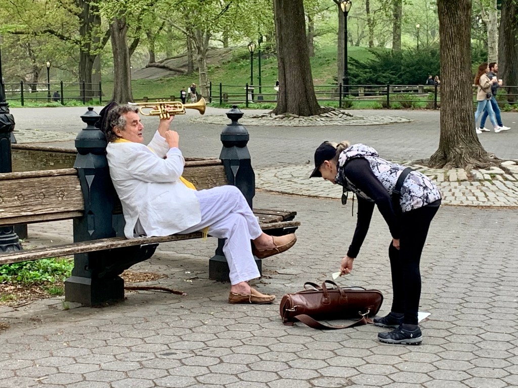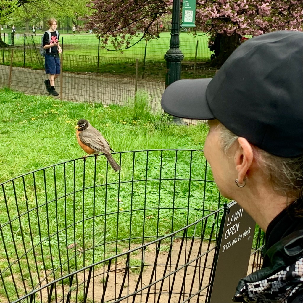 So .. Maria tends to start conversations and make friends with people wherever we are. Doormen, waiters, trumpet players, and birds who seem to be following her as we stroll through the park.