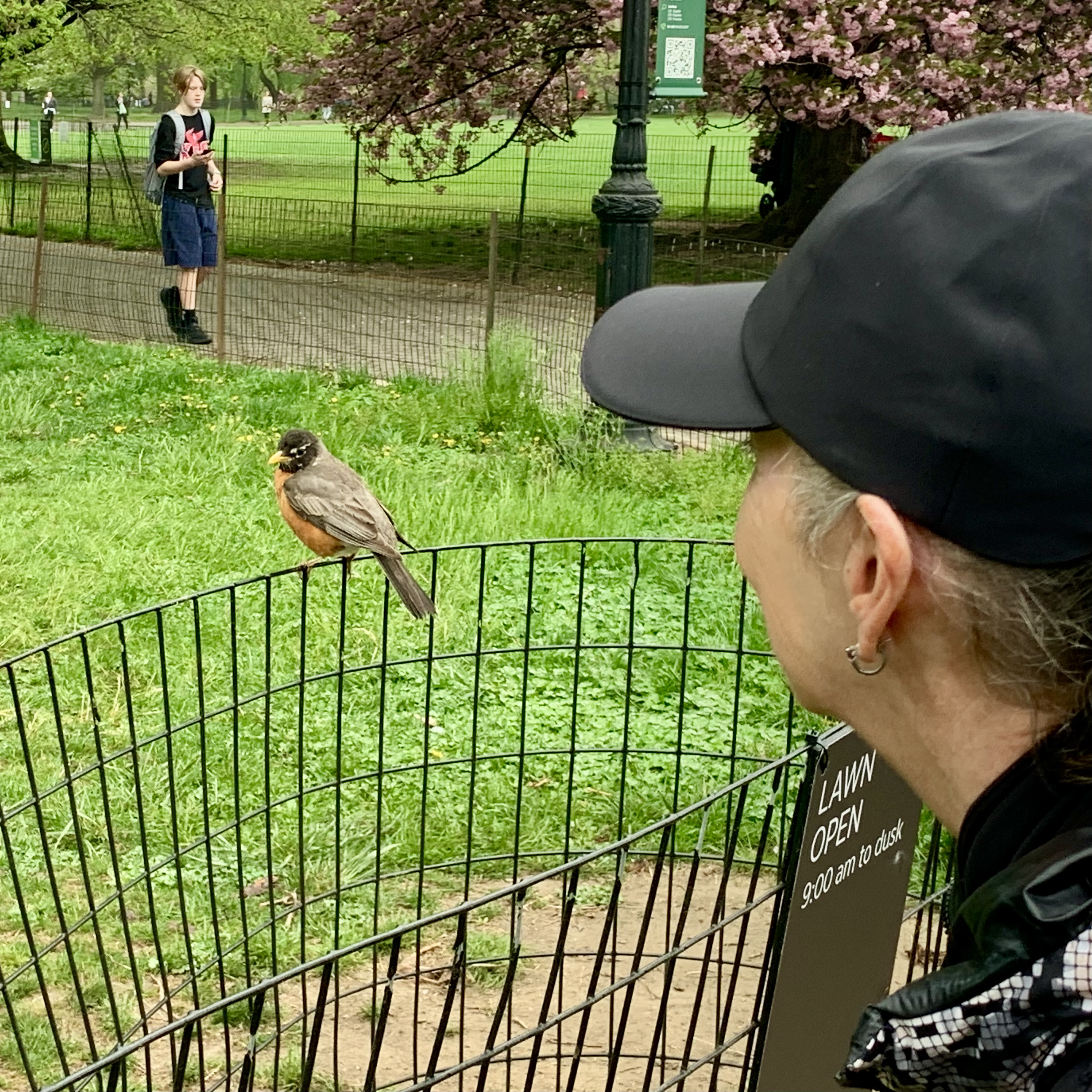 So .. Maria tends to start conversations and make friends with people wherever we are. Doormen, waiters, trumpet players, and birds who seem to be following her as we stroll through the park.