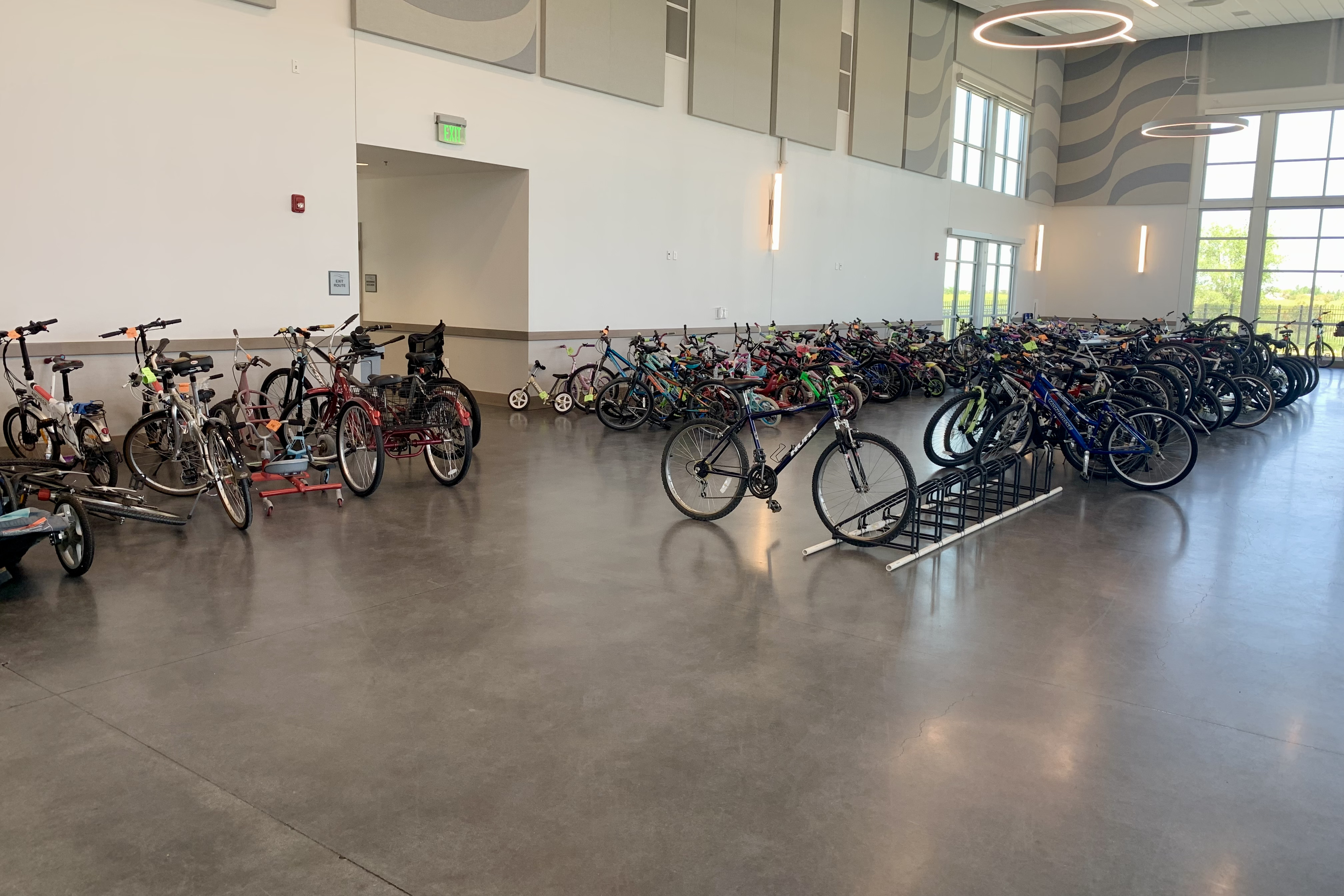 By noon, there were over 200 bikes inside the ballroom at the Aquatic Center ready for tomorrow’s sale.