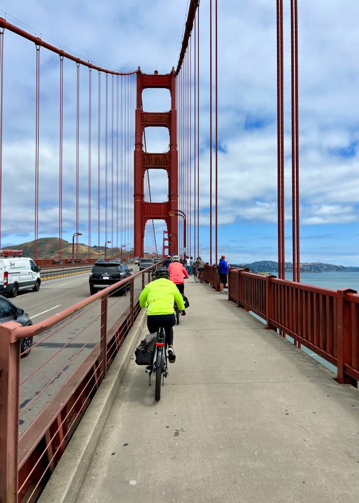 The last time I did this ride was Memorial Day weekend 2022 with the Heritage Park bike group and Becky (now retired from Jibe) and Charlie (Becky’s husband and fellow LCI). The crowds of people along the waterfront, on the bridge, in the small cute towns made the ride challenging. This time, we tried doing the ride on a weekday. The trade-off was fewer people to dodge, but 5.5 hours of driving with commuters to and from the Larkspur Ferry Terminal. On a weekend, the roundtrip drive can be half that.
