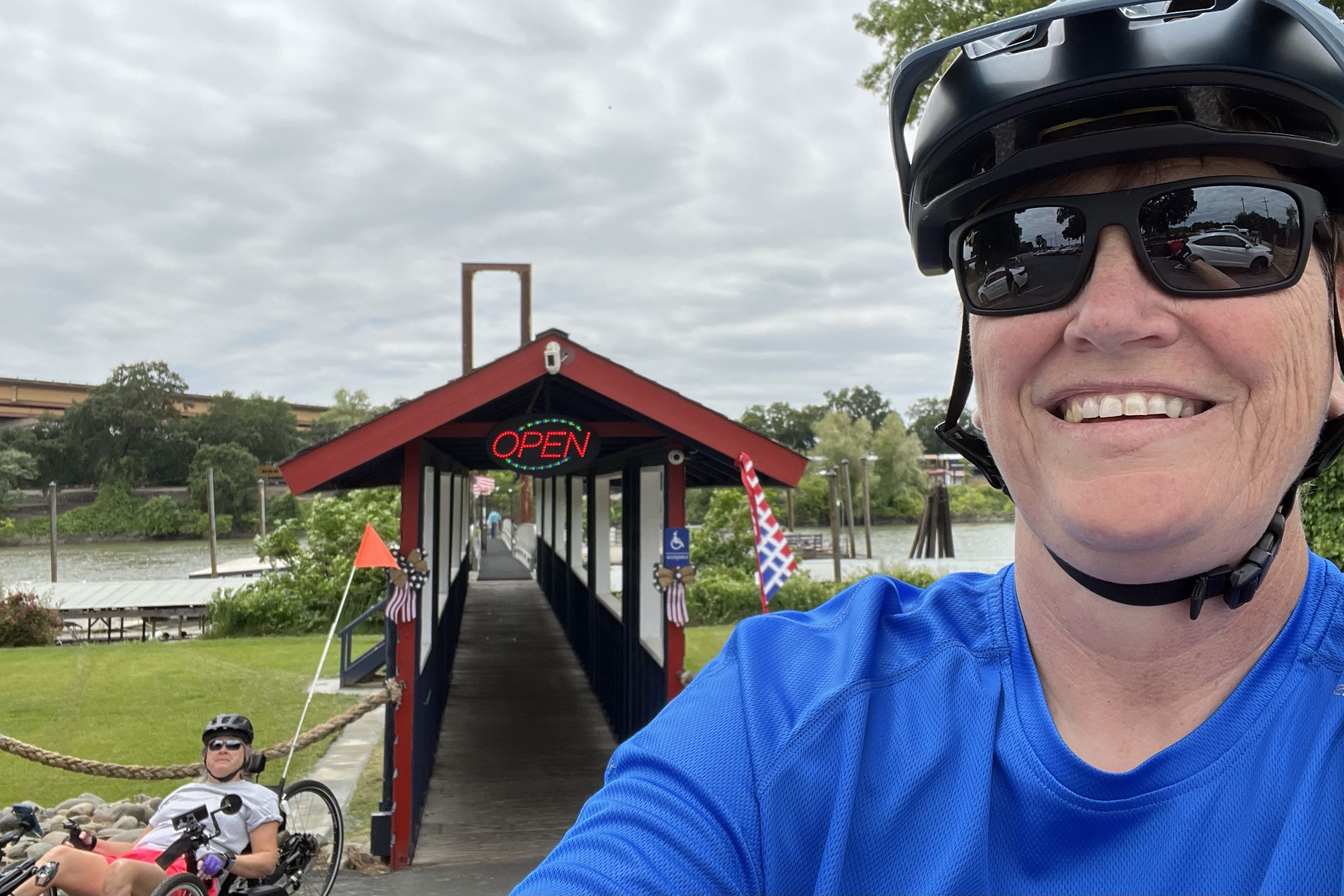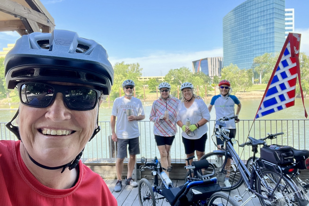 Sunday June 4. I took this picture of Dani, Kathy, Earldine, Cindy, and Brenda before we all headed toward Teal Bend Golf Course. The trikes went clockwise,