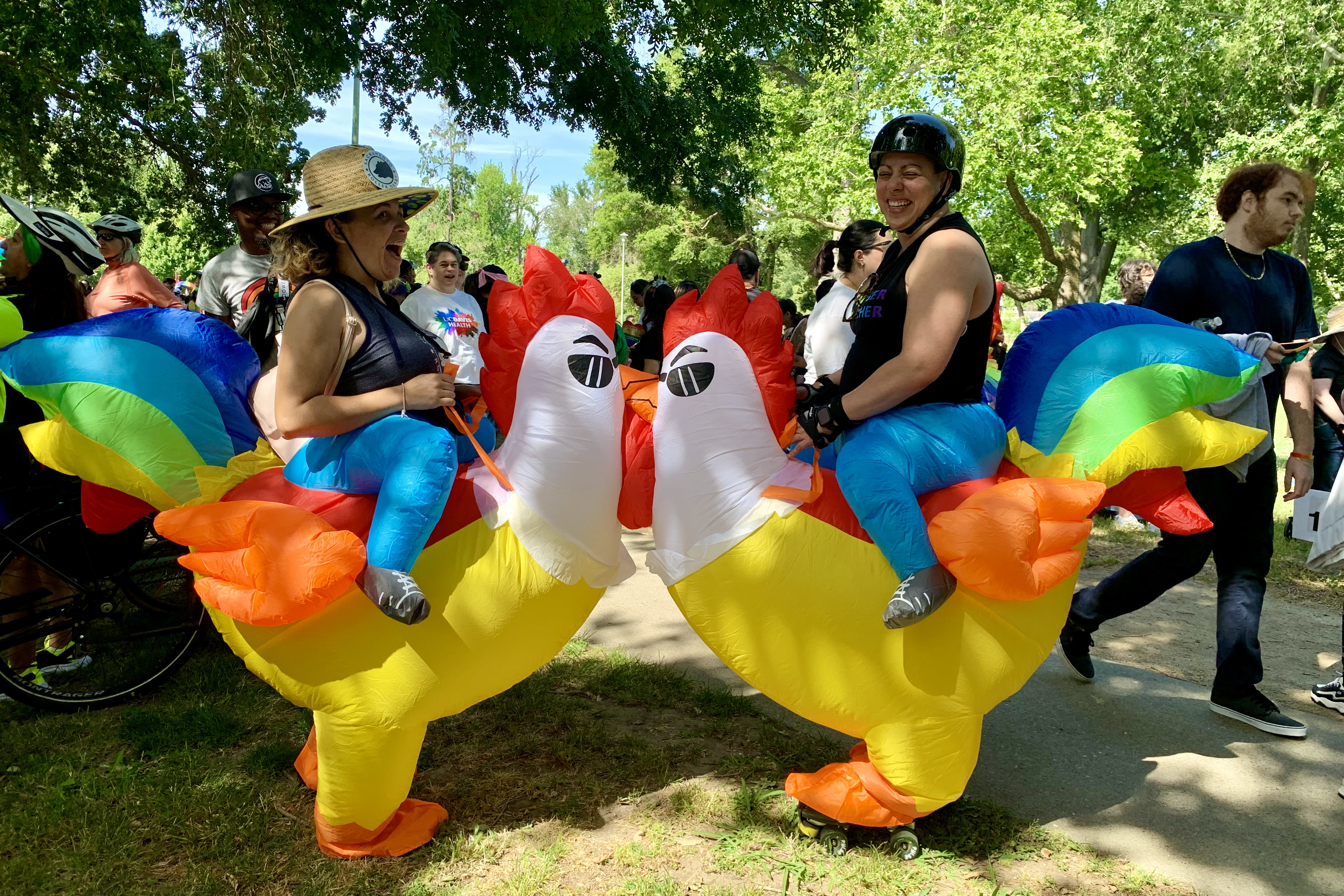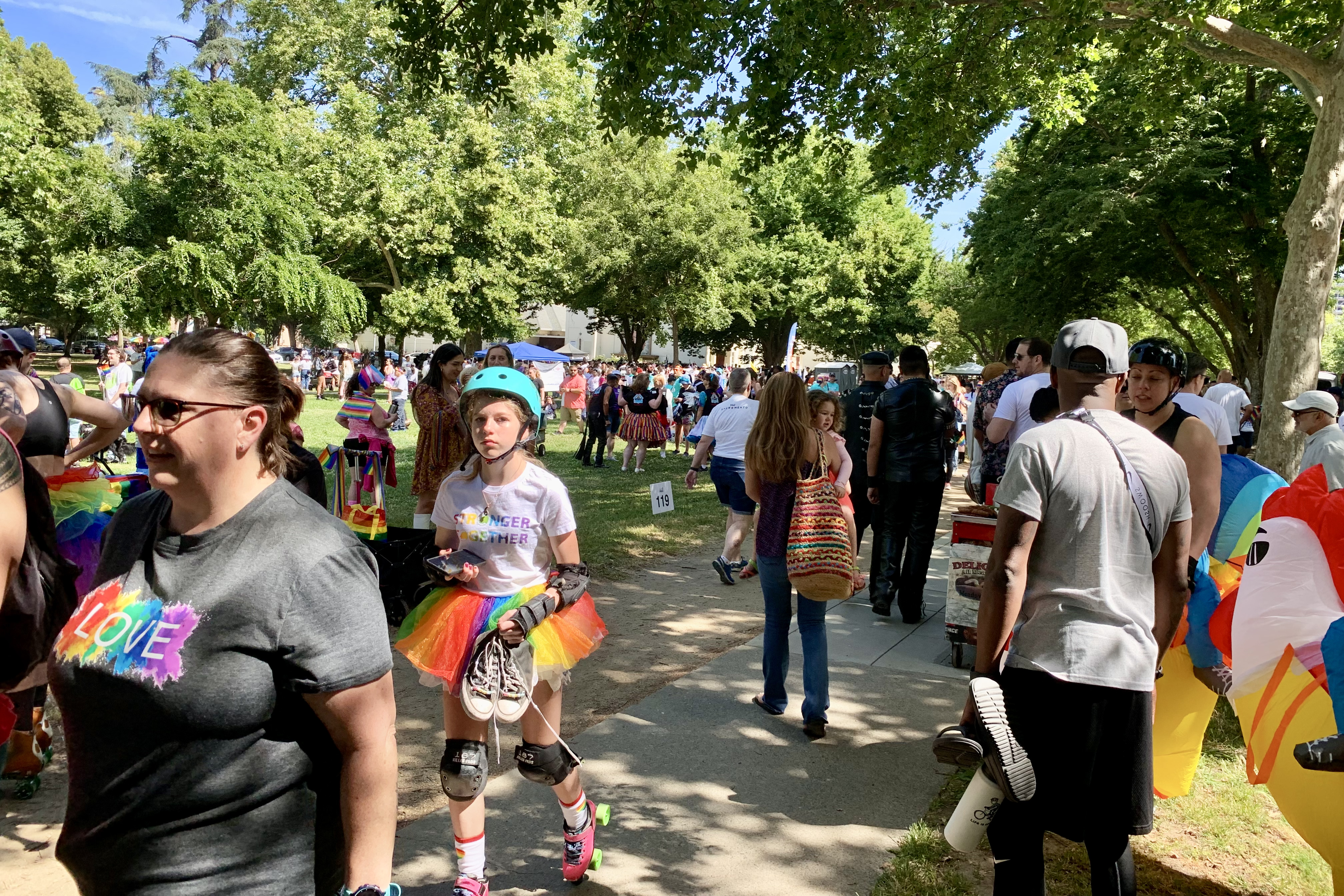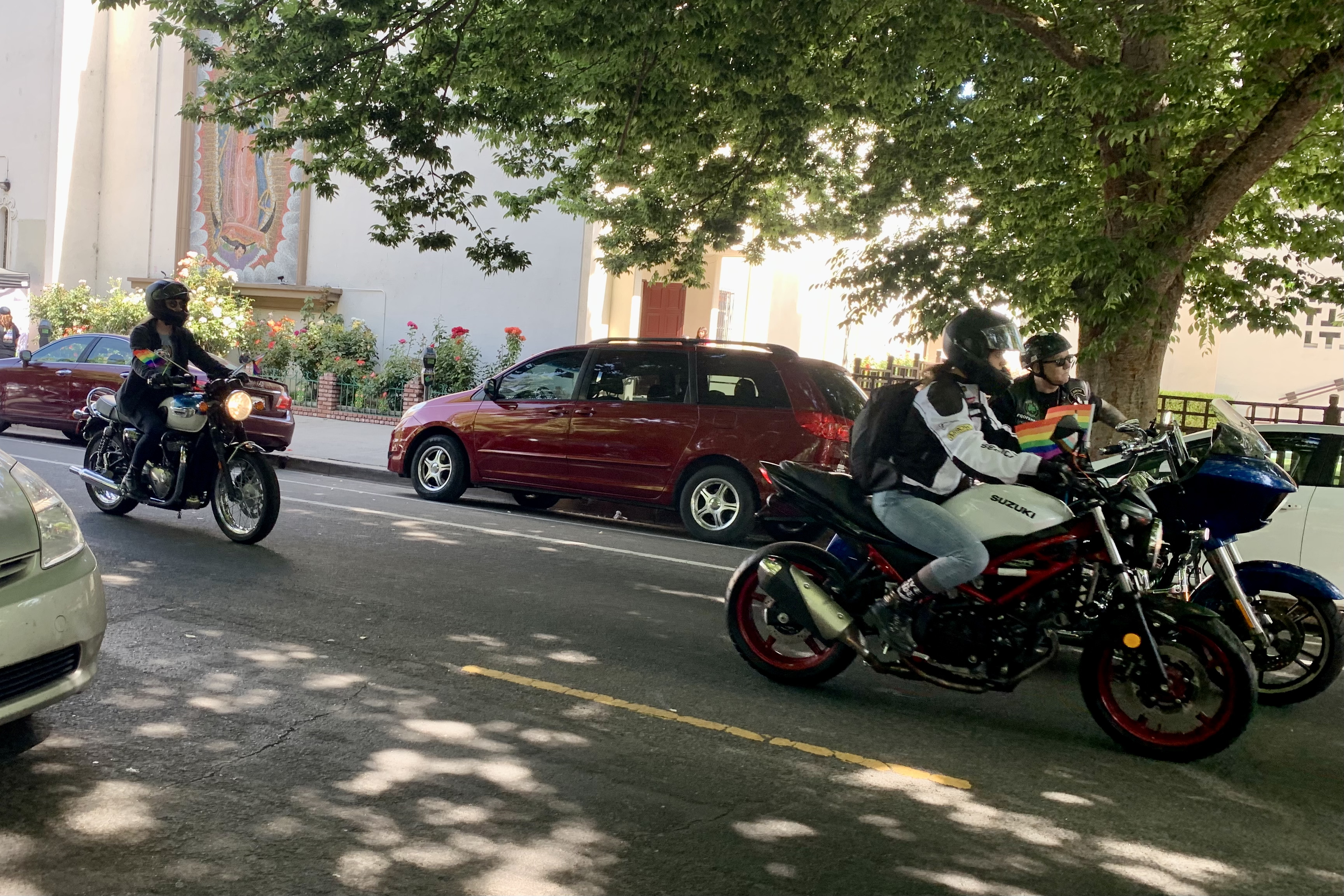 Dykes on Bikes (that’s the real name of their group) arriving. There would be hundreds in the parade.