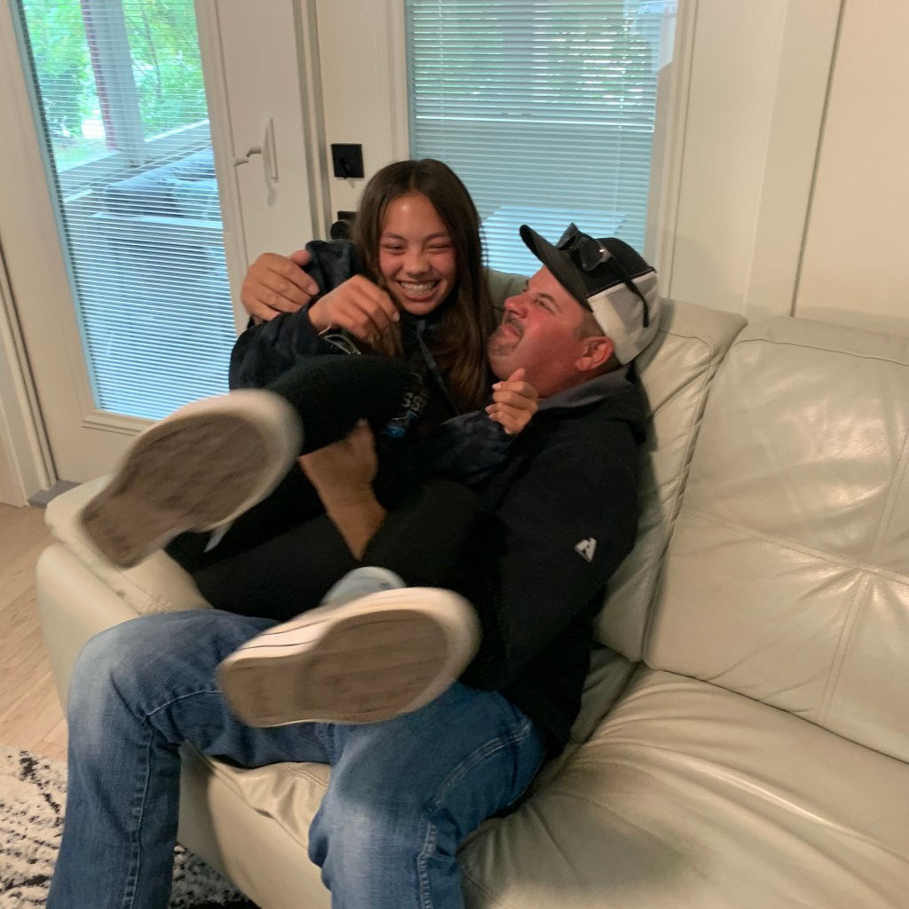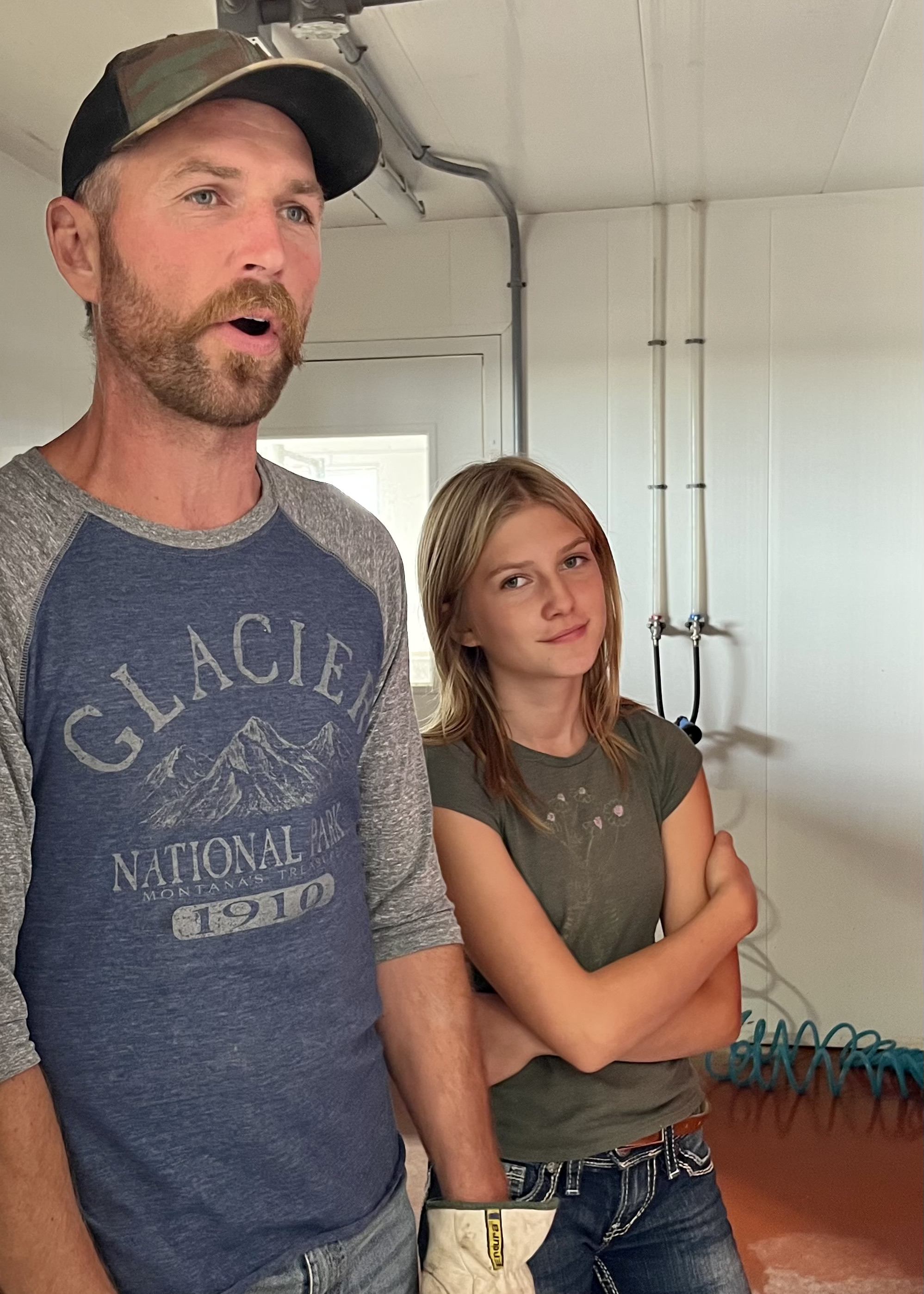Joy and Brian have three sons. The oldest, Josh, is a food-producing large animal veterinarian. Lucas and Adam run the dairy. Lucas and daughter Mecaella: