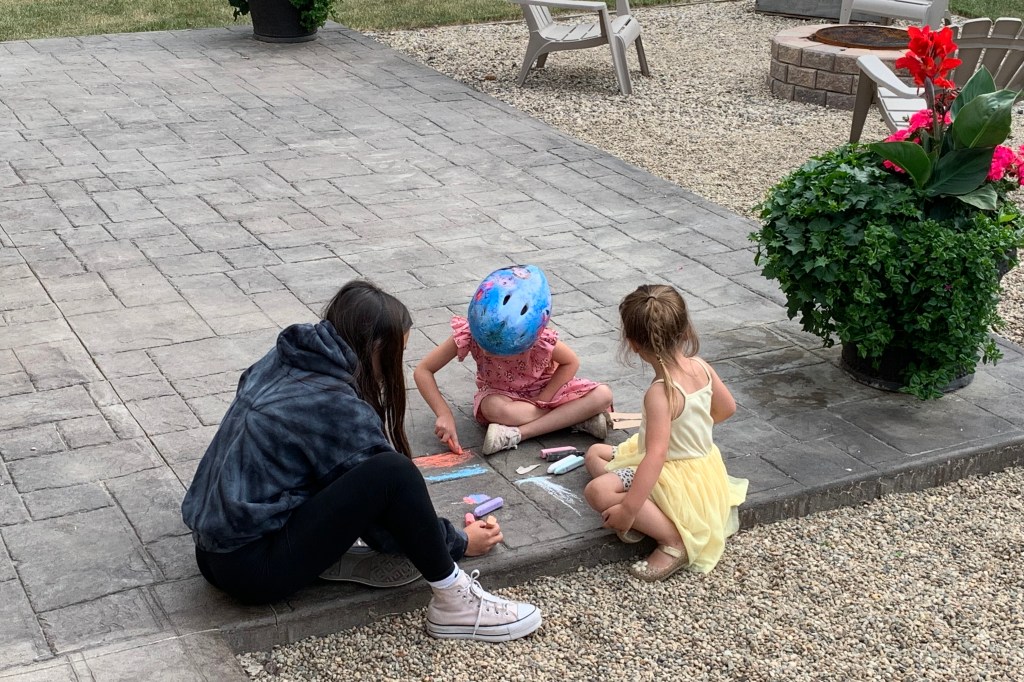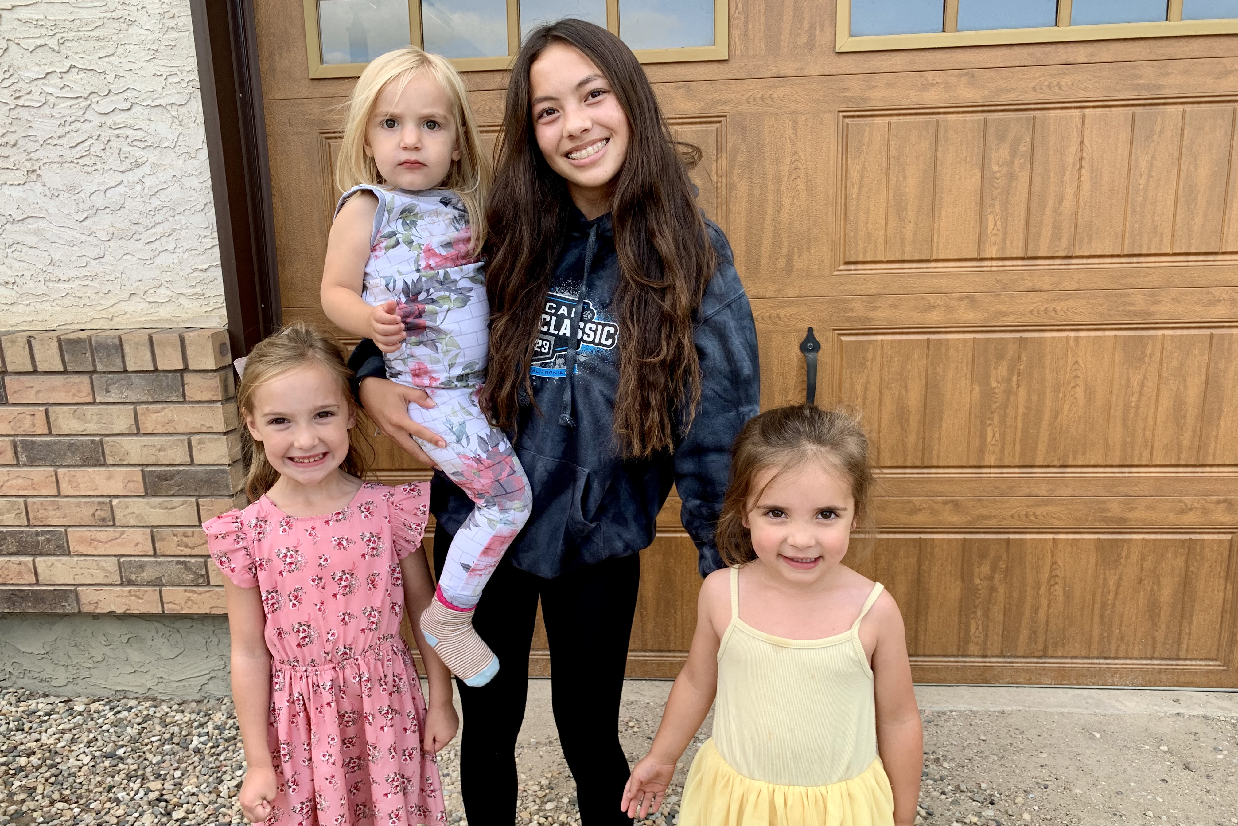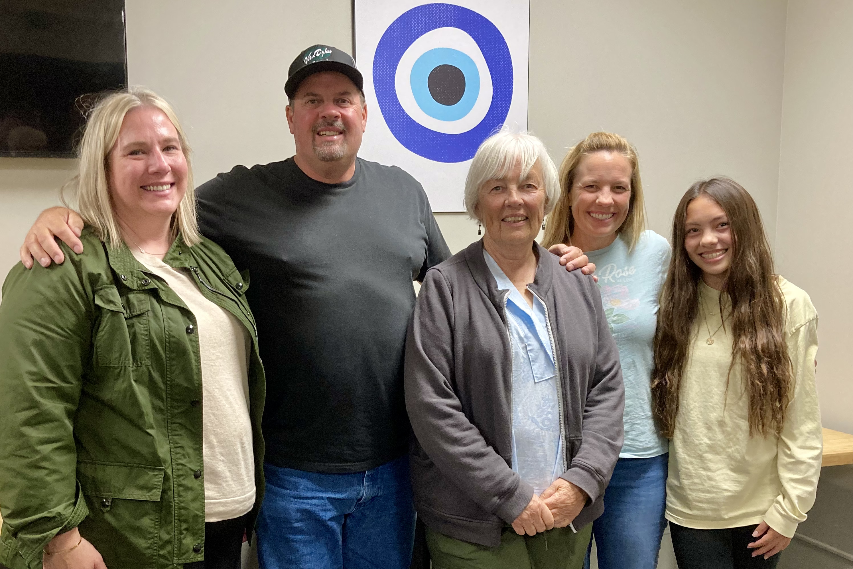 Julie came over with her granddaughters, Riley and Ella. Jeanette and Steve to the left, Joy to the right. Jeanette and Sandra are daughters of my mom’s older brother Fernie. Julie and Joy are daughters of my mom’s younger sister Eleanor.
