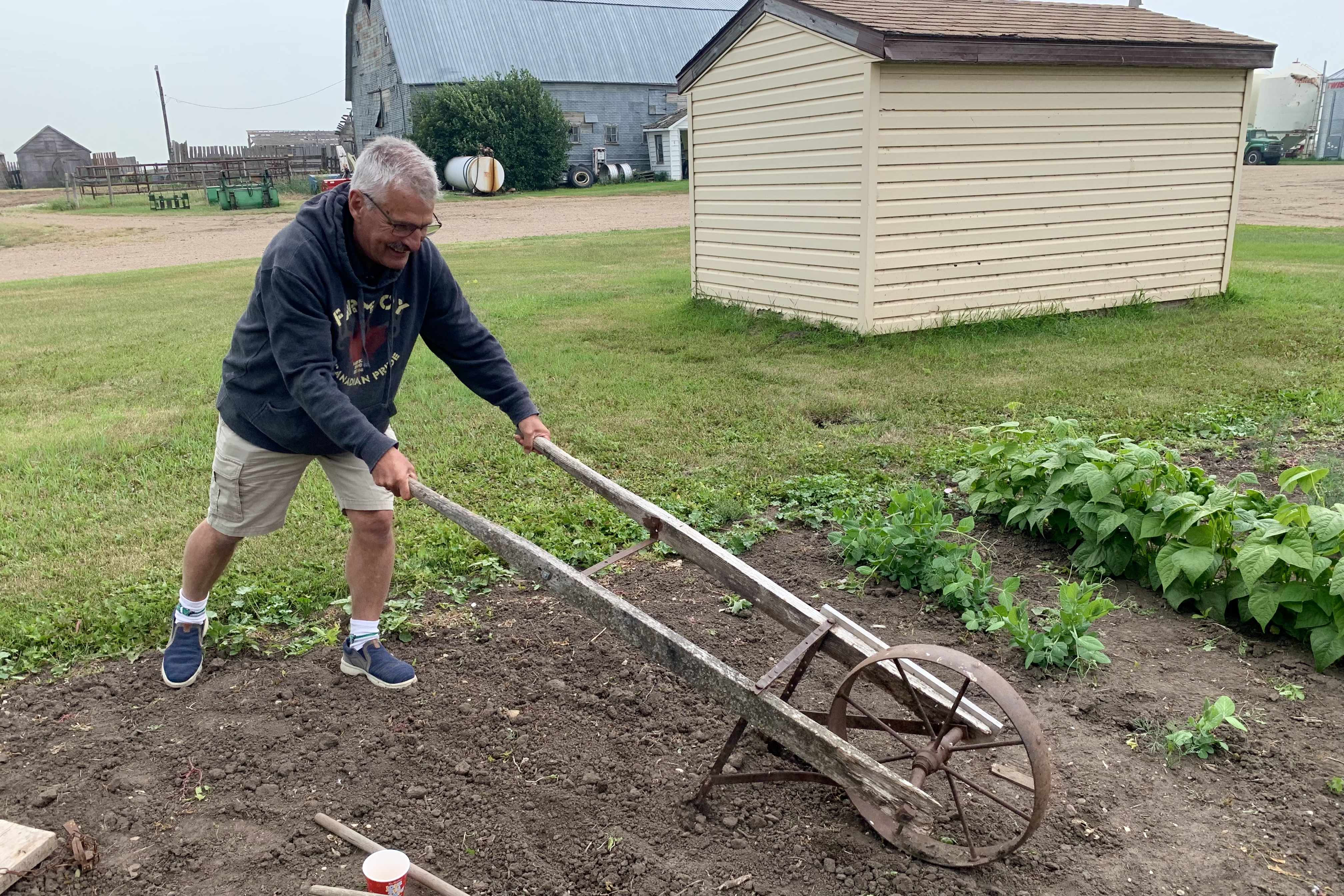 Cousin Gordon drove down from Melfort. Our next stop would be the gray barn in the background, the structure built before the house.