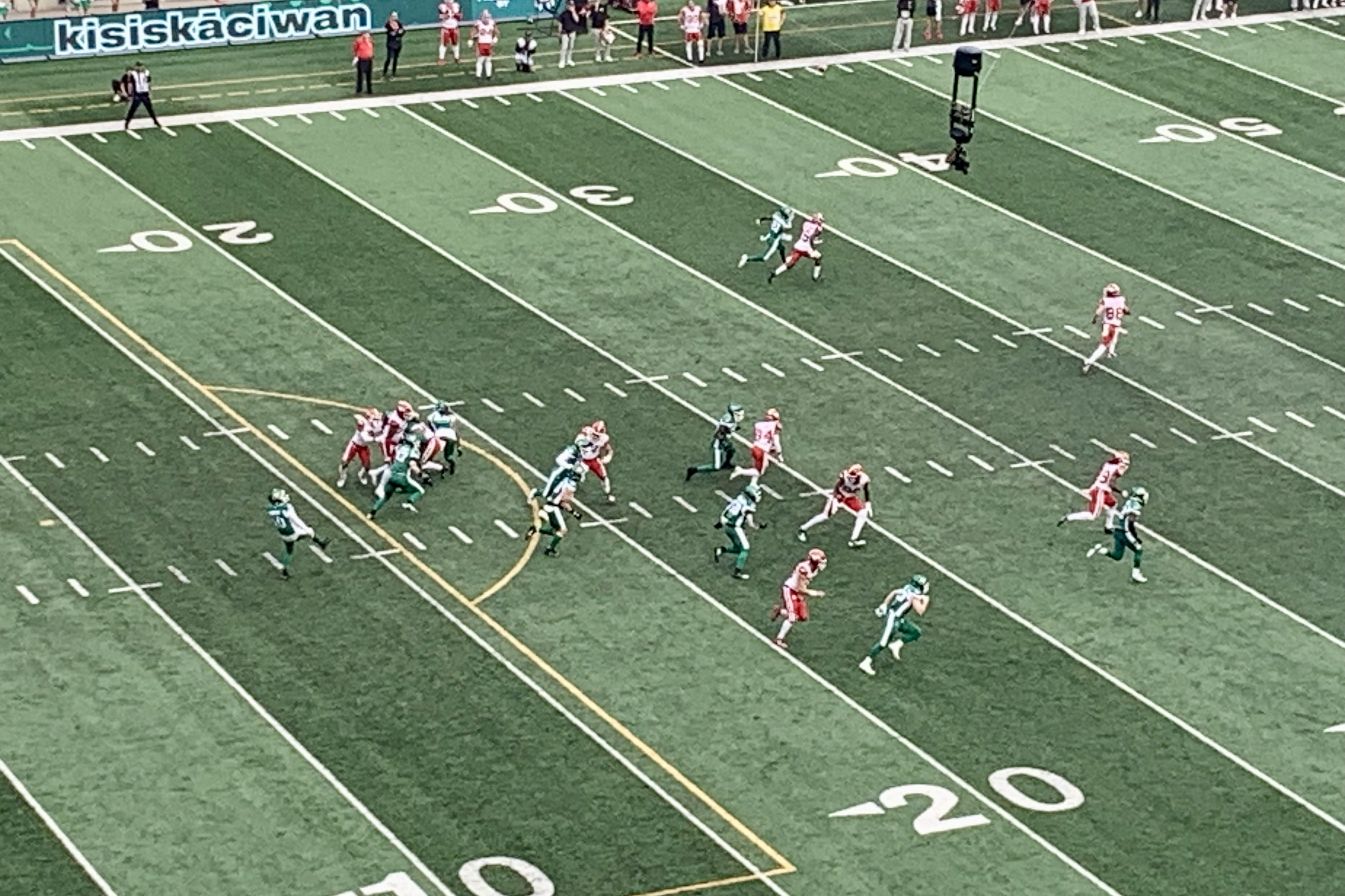 We went ahead in the score, sadly followed by a Calgary win in the last few seconds. There are only 3 downs to achieve 10 yards and the field is 110 yards. It really made the game entertaining. I am now a fan.