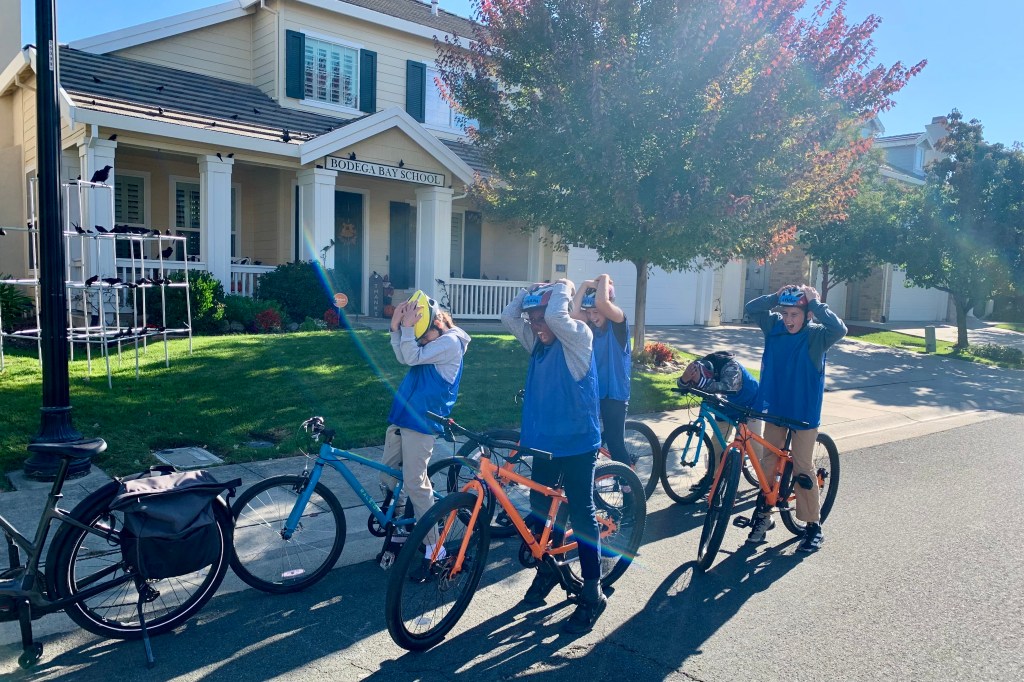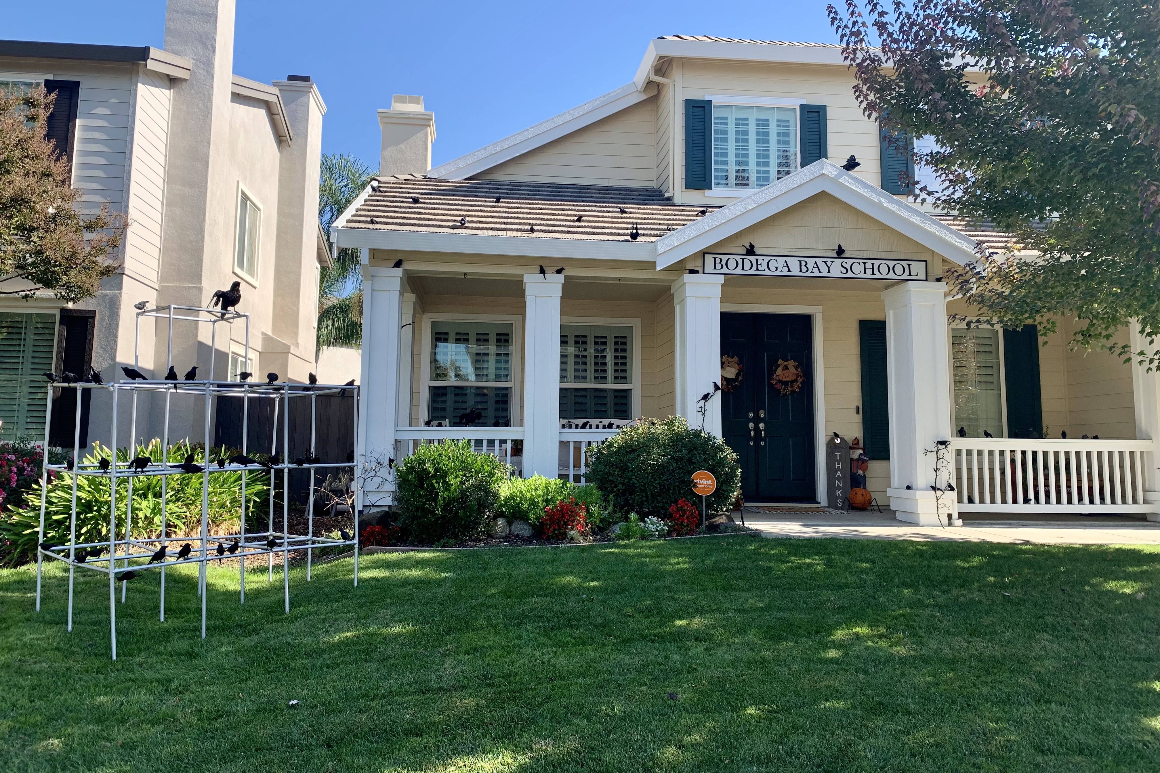 The last two street ride days were Monday and Tuesday. Rockmont Circle is one of the best streets to visit at Halloween (also Christmas and 4th of July). These cyclists learned about the 1963 Hitchcock film The Birds – they had never heard of it – how the students at Bodega Bay School were attacked. Eek!!